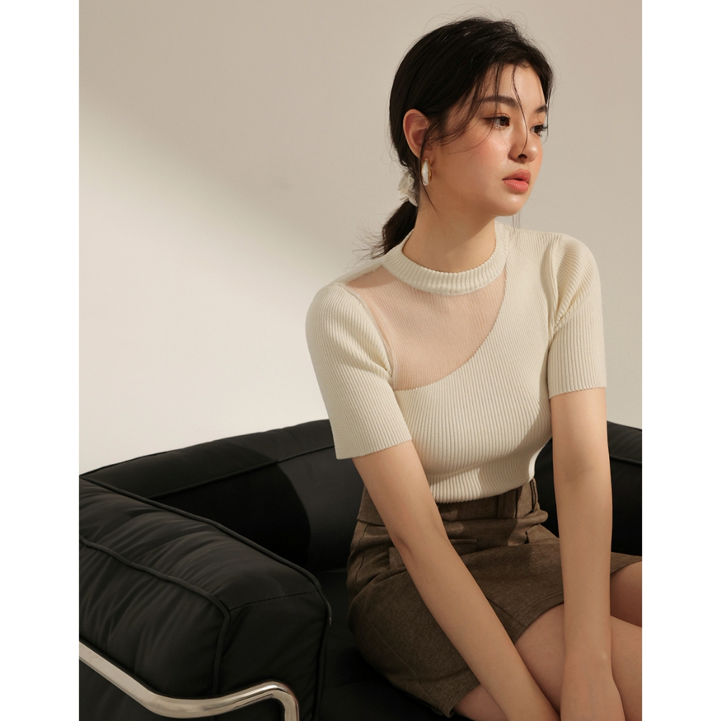 CHIC A SPACE 透膚拼接設計感針織上衣(藍/米白) 女裝 現貨藍,S|藍,M|米白,S|米白,MAIR SPACE