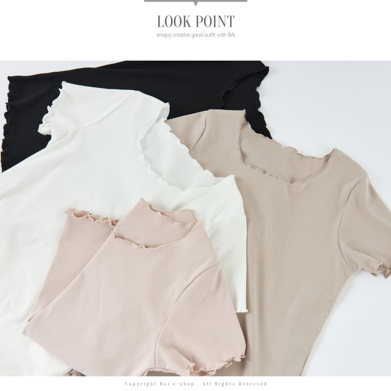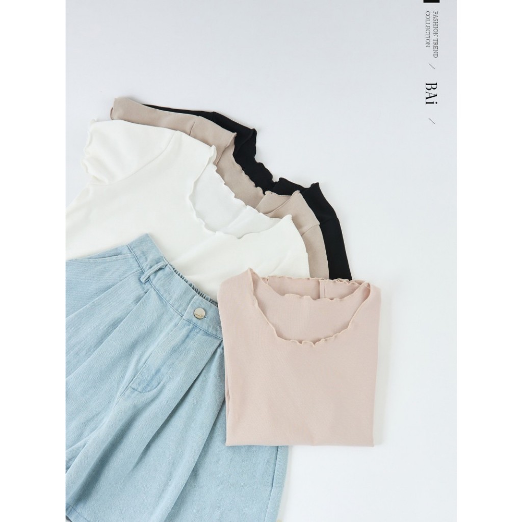 BAi白媽媽 木耳邊上衣/打底捲邊棉T-台灣現貨 隔日到貨【350216】白_透(01)|黑(02)|卡(11)|粉(13)T-shirtsBAi白媽媽 品牌旗艦店