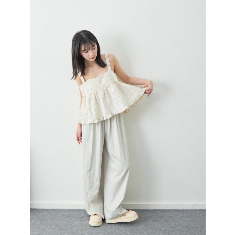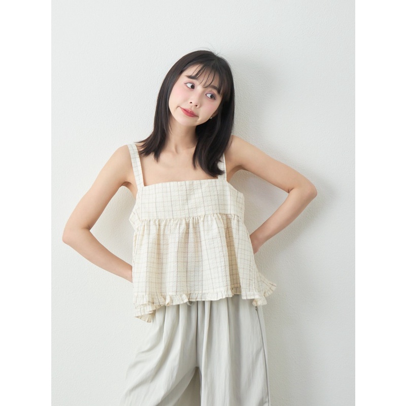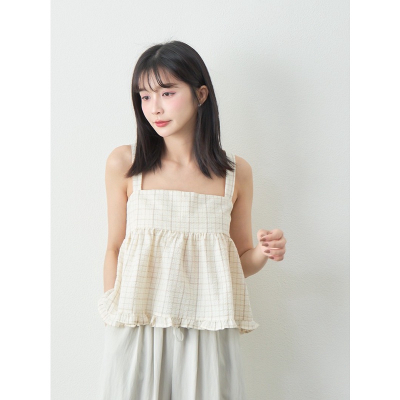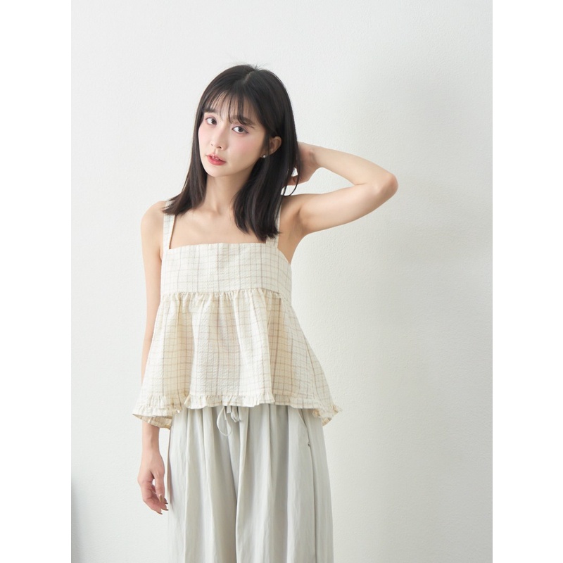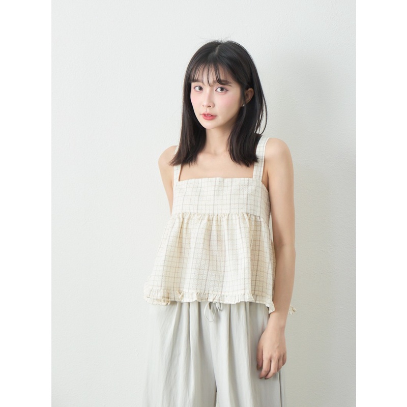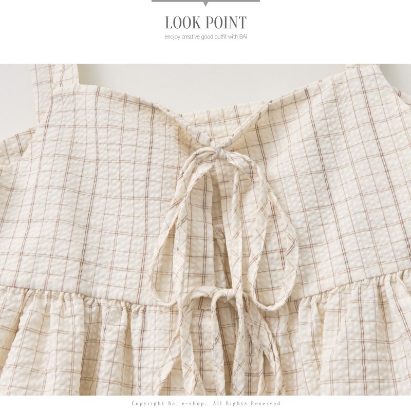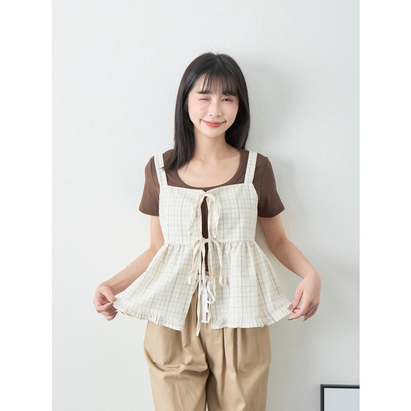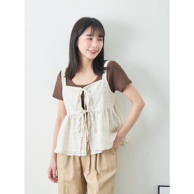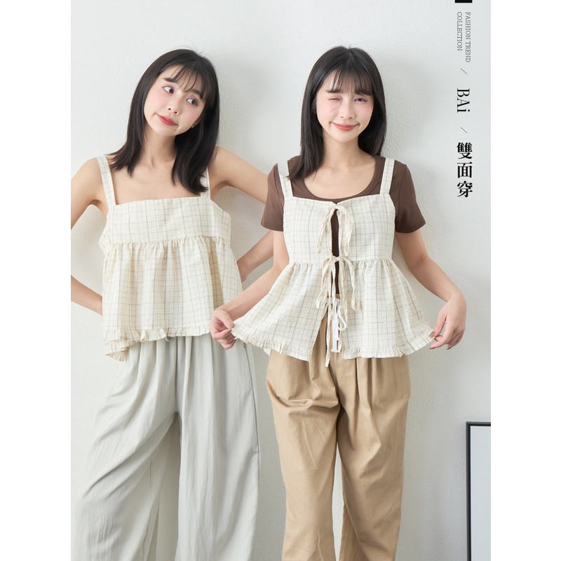 BAi白媽媽 格紋雙綁結疊穿背心/泡泡紗荷葉邊無袖上衣-台灣現貨 隔日到貨【350223】杏_透(11)Shirts & BlousesBAi白媽媽 品牌旗艦店