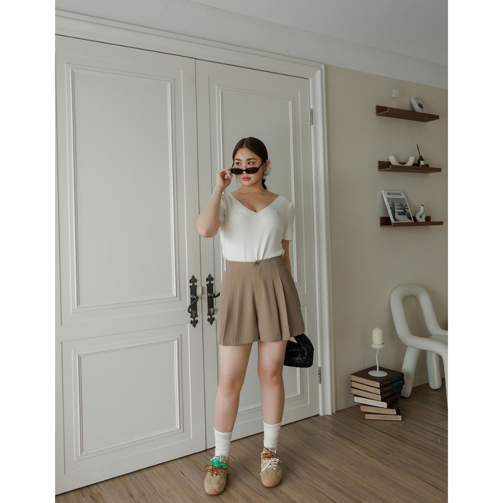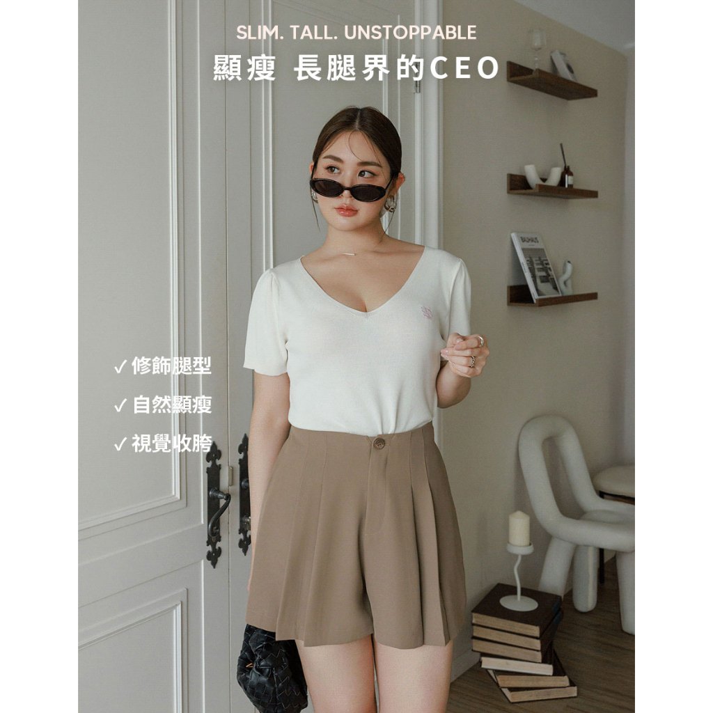 AIR SPACE PLUS 長腿CEO A字雙褶西裝短褲(黑/卡其) 女裝 現貨 大尺碼 中大尺碼黑,XL|黑,2XL|黑,3XL|卡其,XL|卡其,2XL|卡其,3XLShortsAIR SPACE