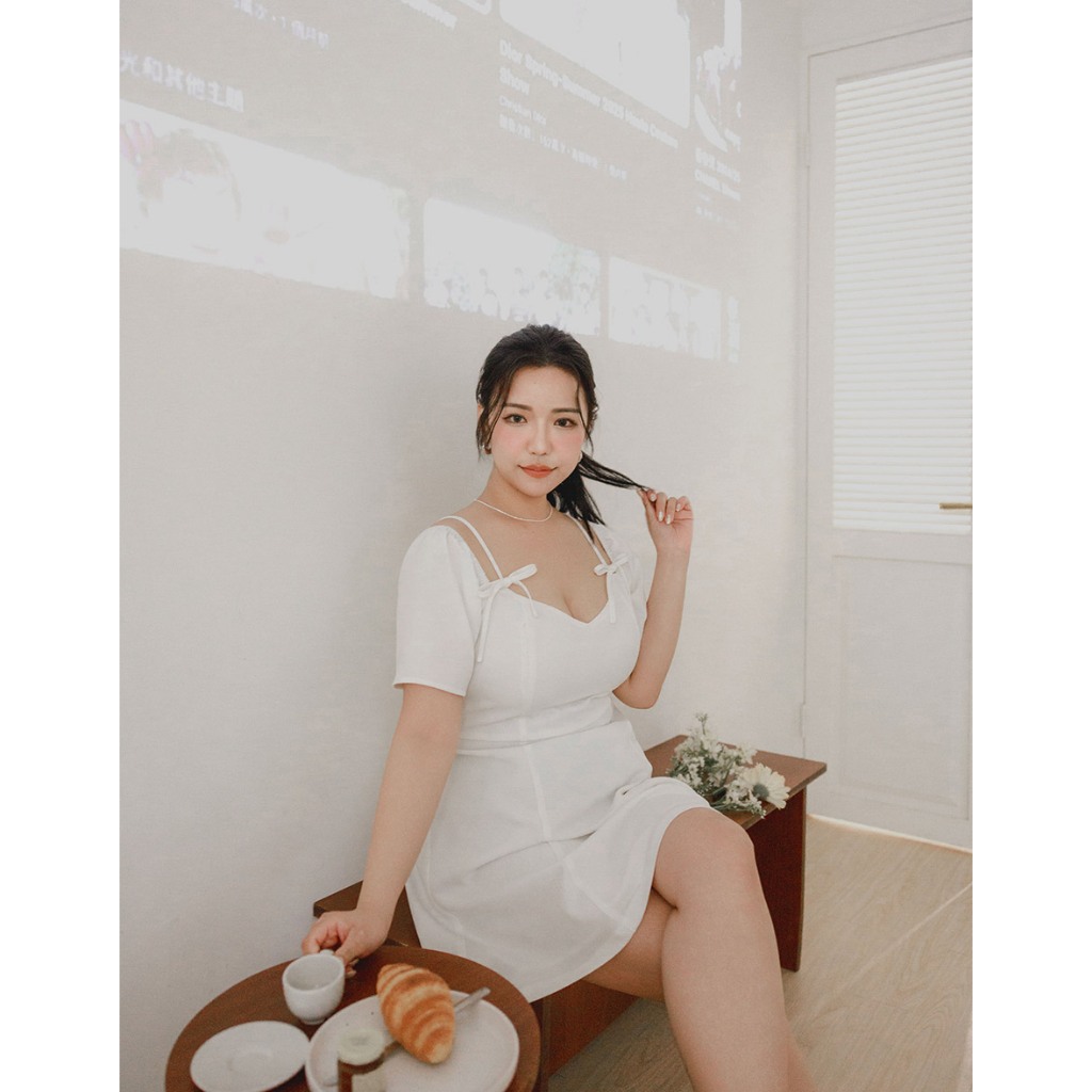 AIR SPACE PLUS 甜美鏤空綁帶短洋裝(黑/白) 女裝 現貨 大尺碼 中大尺碼黑,XL|黑,2XL|黑,3XL|白,XL|白,2XL|白,3XLAIR SPACE