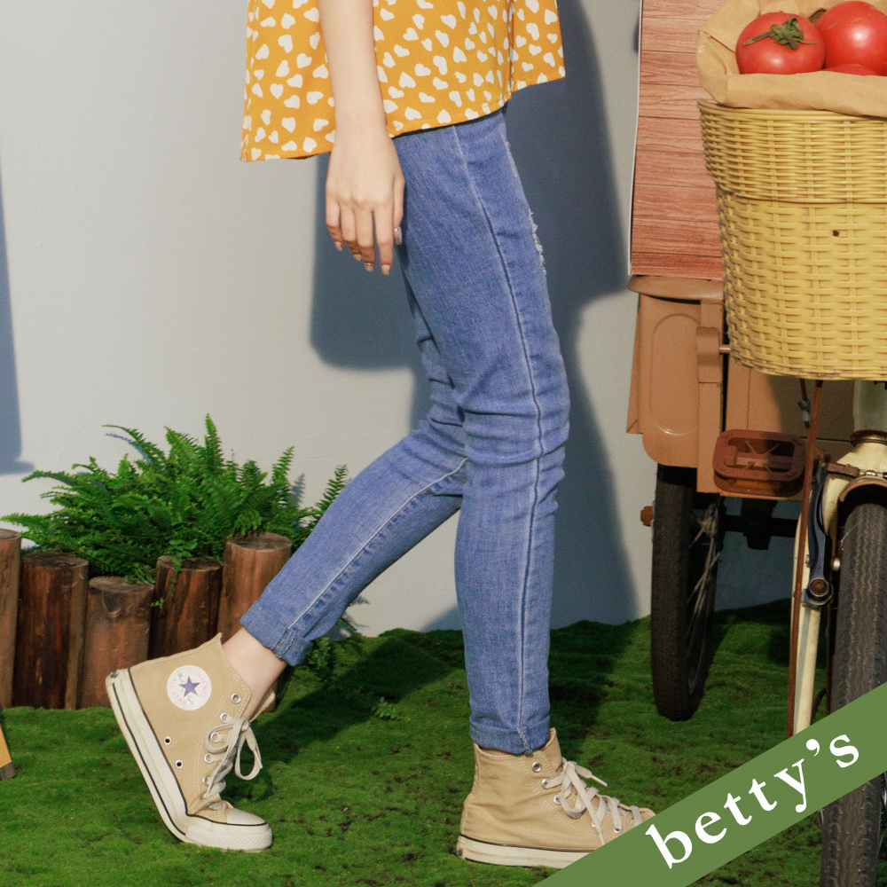betty’s貝蒂思(21)牛仔窄管刷破長褲(深藍色)深藍色,M|深藍色,L|深藍色,XL|深藍色,2XLbetty’s貝蒂思
