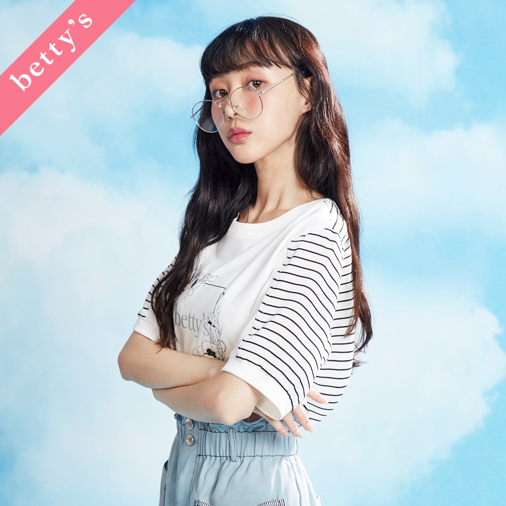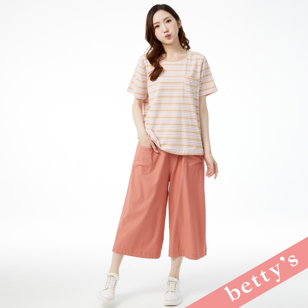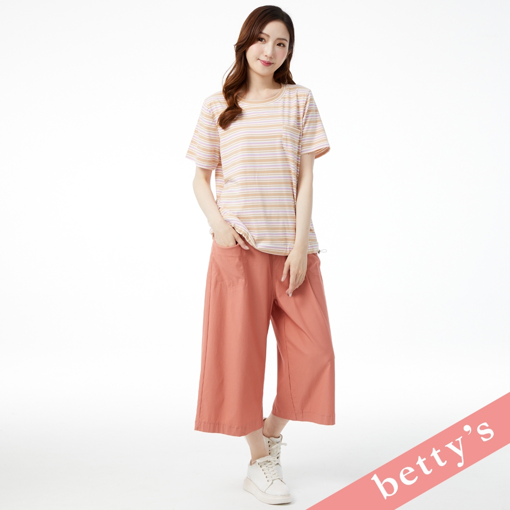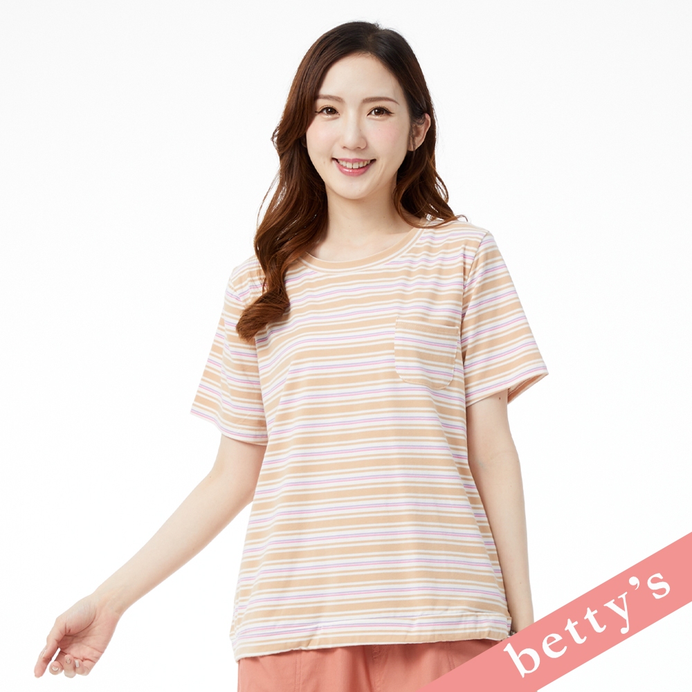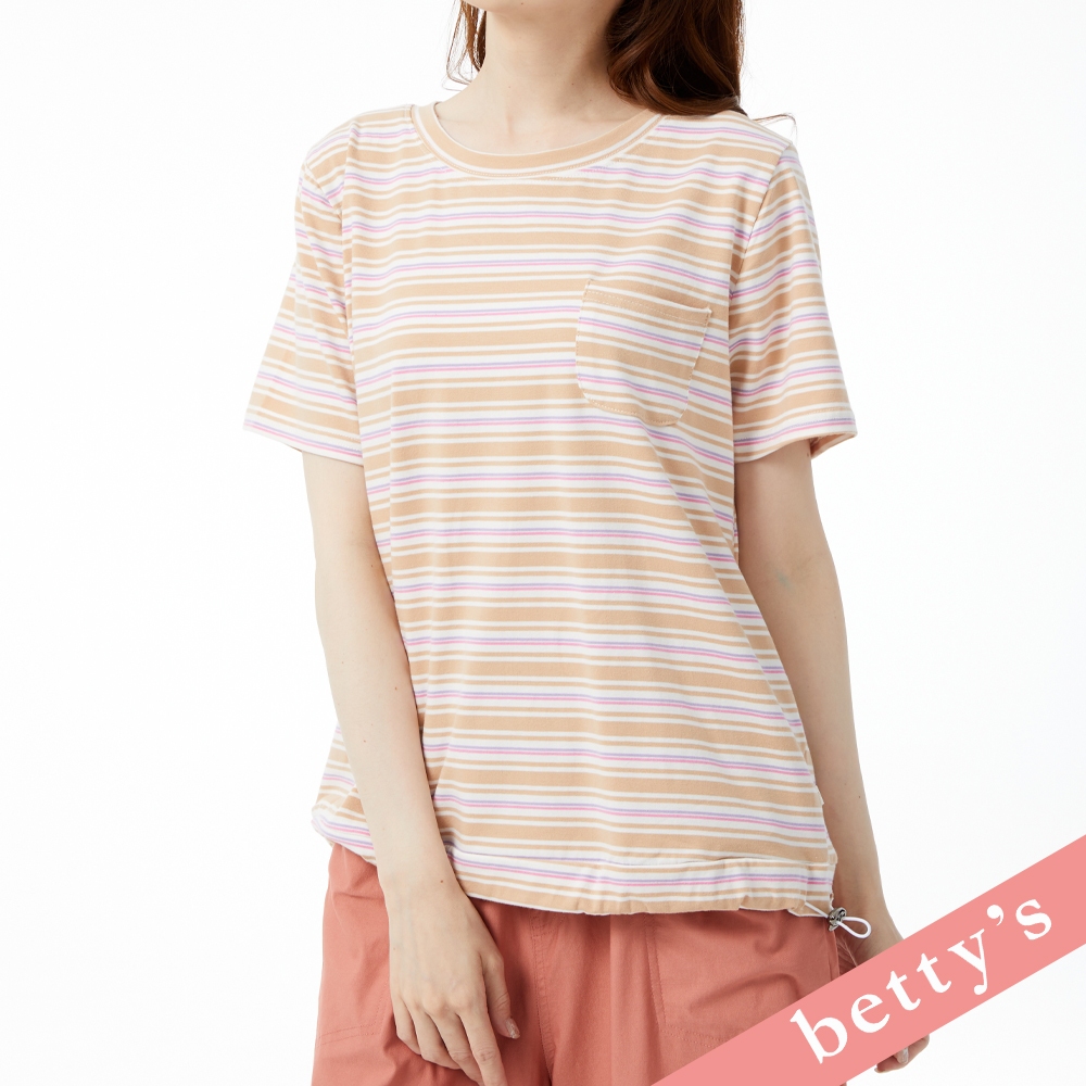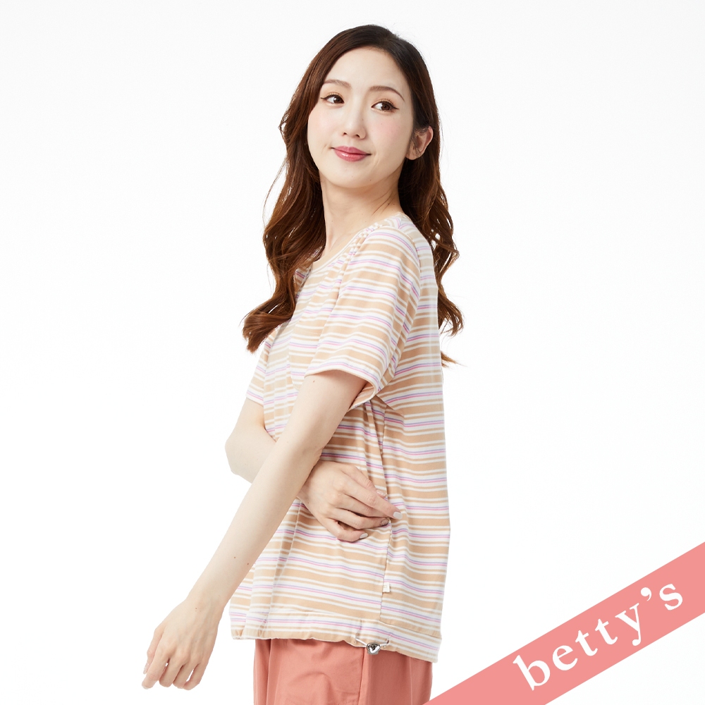 betty’s貝蒂思(31)繽紛橫條紋抽繩短袖T-shirt(卡其色)卡其色,M|卡其色,L|卡其色,XLT-shirtsbetty’s貝蒂思