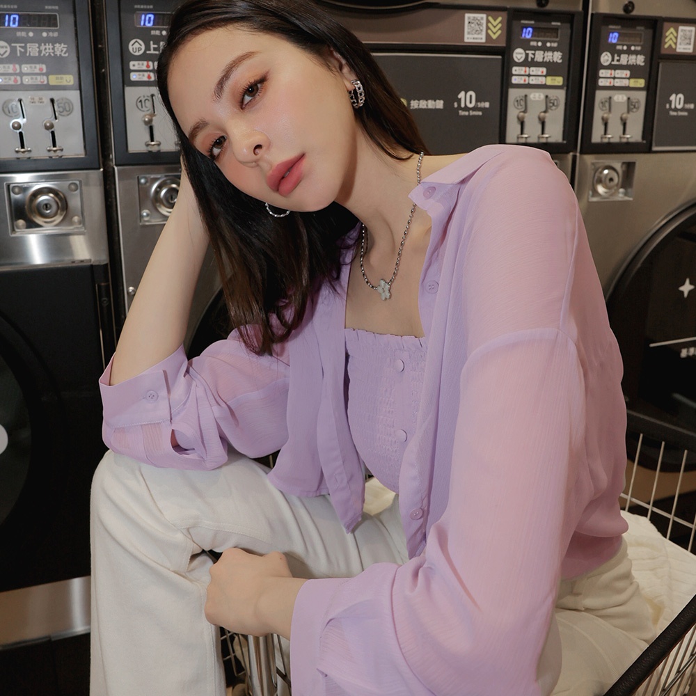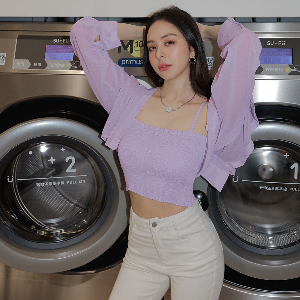 AIR SPACE PLUS 質感透膚皺皺背心套裝(白/紫) 女裝 現貨 大尺碼 中大尺碼白,XL|白,2XL|白,3XL|紫,XL|紫,2XL|紫,3XLIndividual SetsAIR SPACE