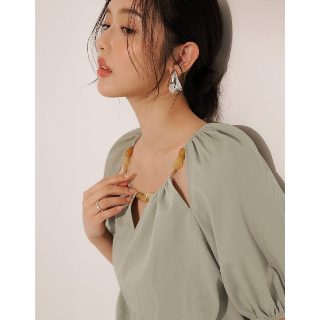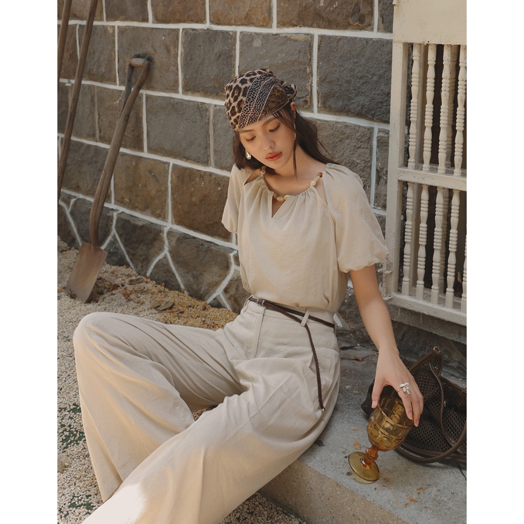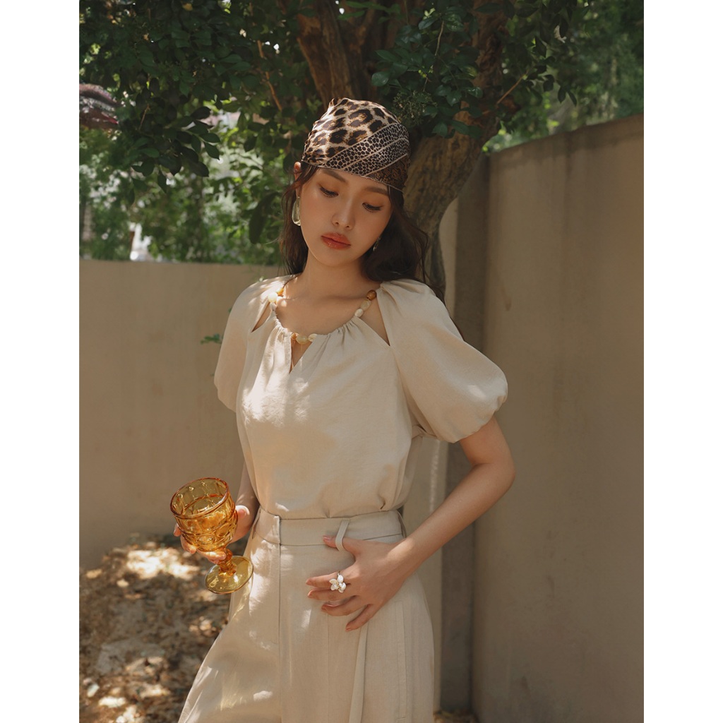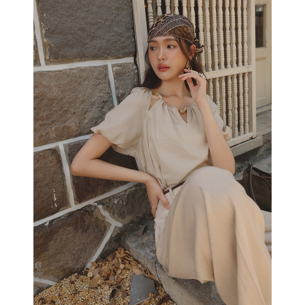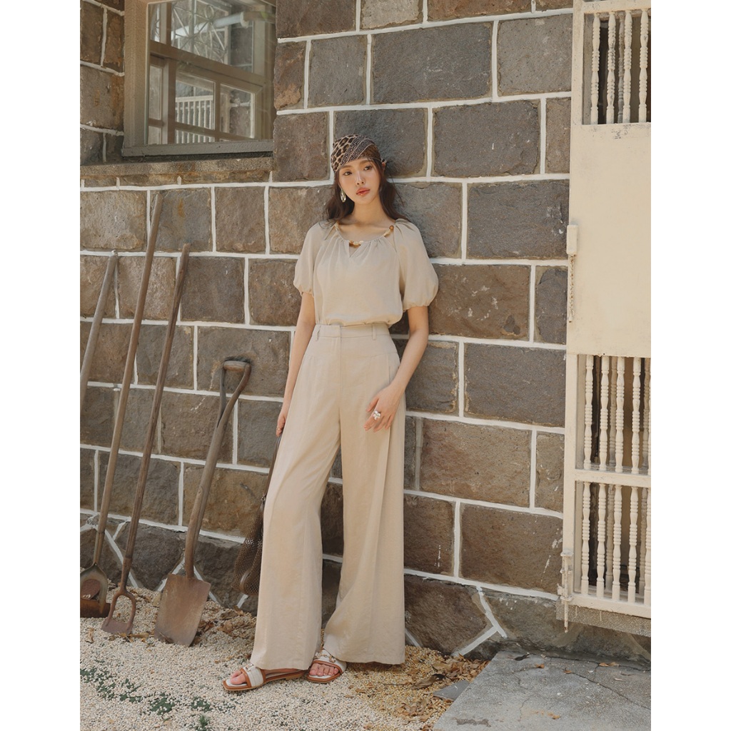 CHIC A SPACE 棉麻感珠飾抓皺鏤空上衣(杏/綠) 女裝 現貨杏,S|杏,M|杏,L|綠,S|綠,M|綠,LOthersAIR SPACE