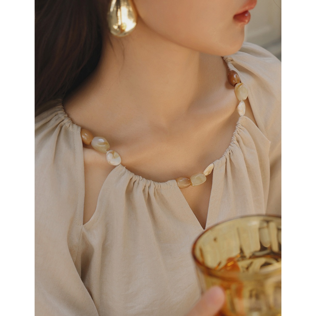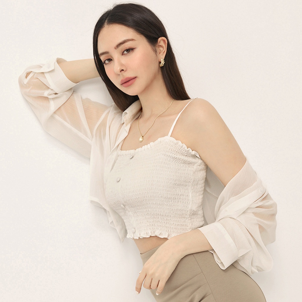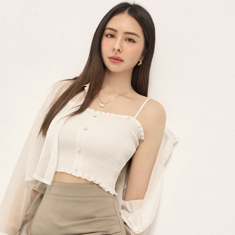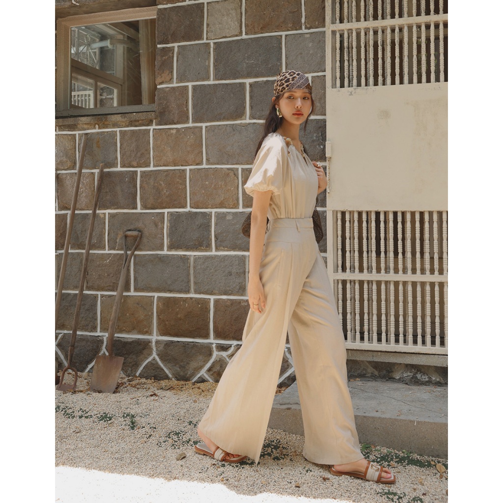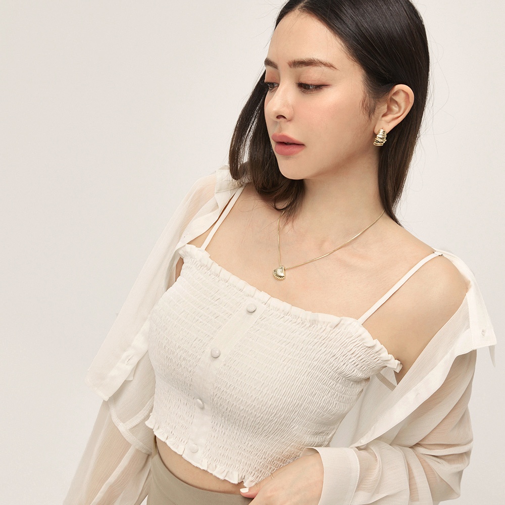 CHIC A SPACE 棉麻感珠飾抓皺鏤空上衣(杏/綠) 女裝 現貨杏,S|杏,M|杏,L|綠,S|綠,M|綠,LOthersAIR SPACE