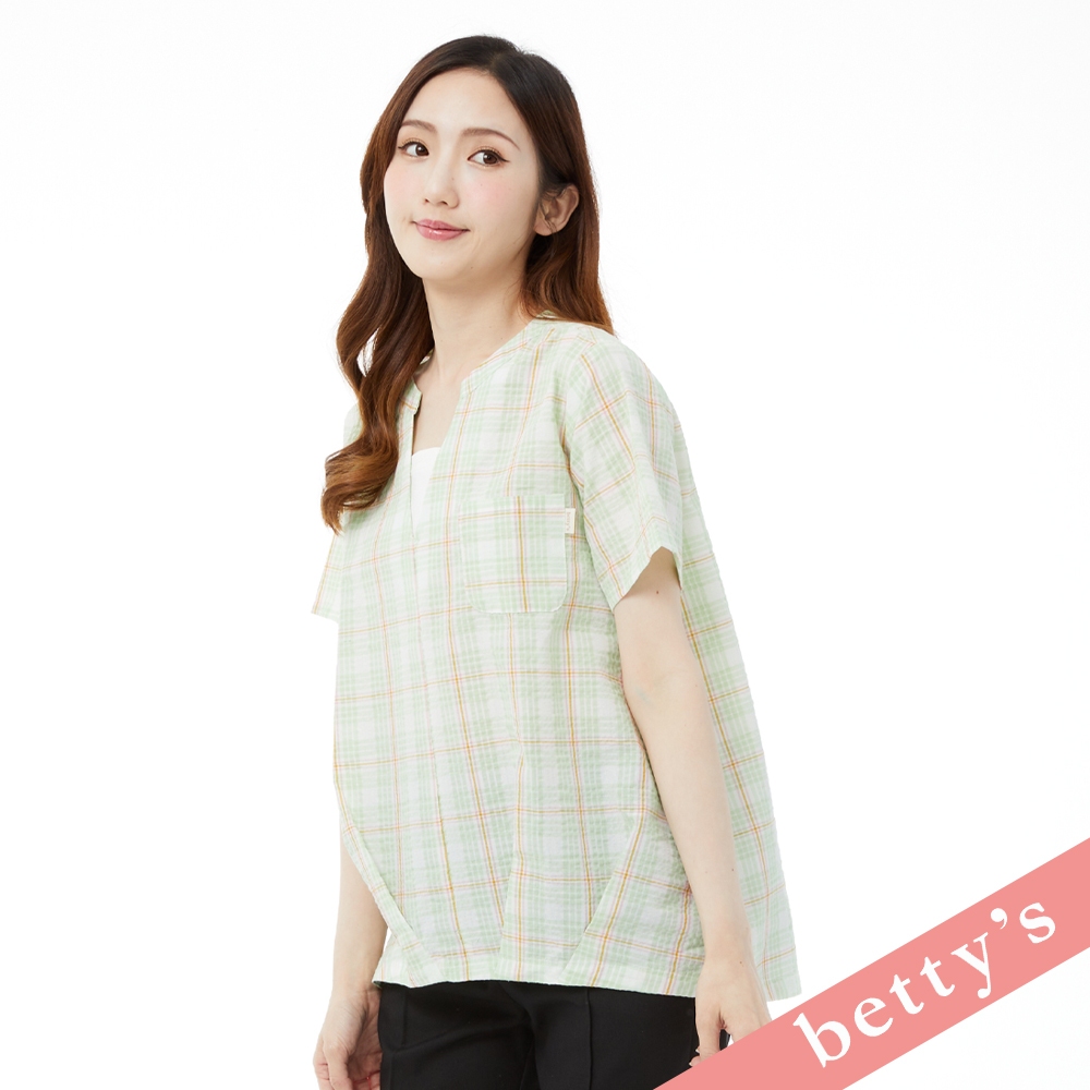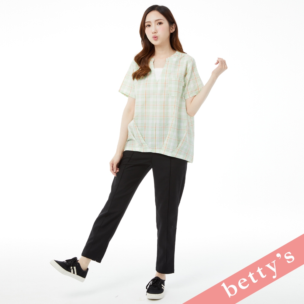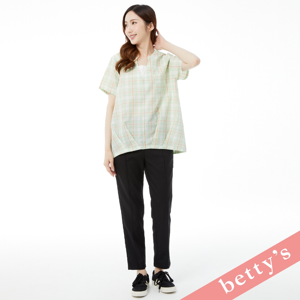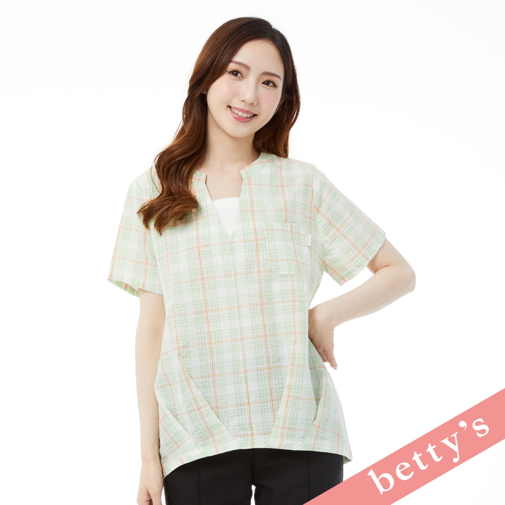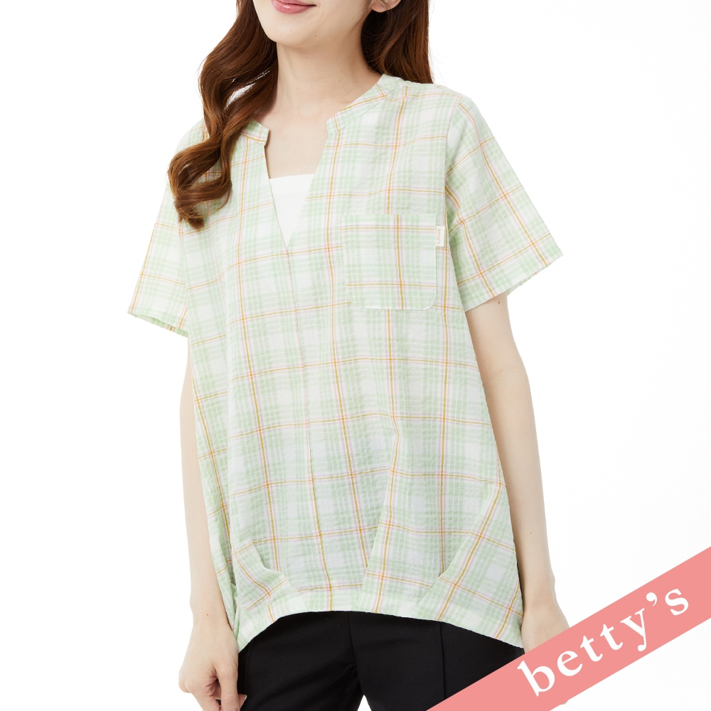 betty’s貝蒂思(31)假兩件格紋V領壓摺上衣(淺綠)淺綠,M|淺綠,L|淺綠,XLShirts & Blousesbetty’s貝蒂思