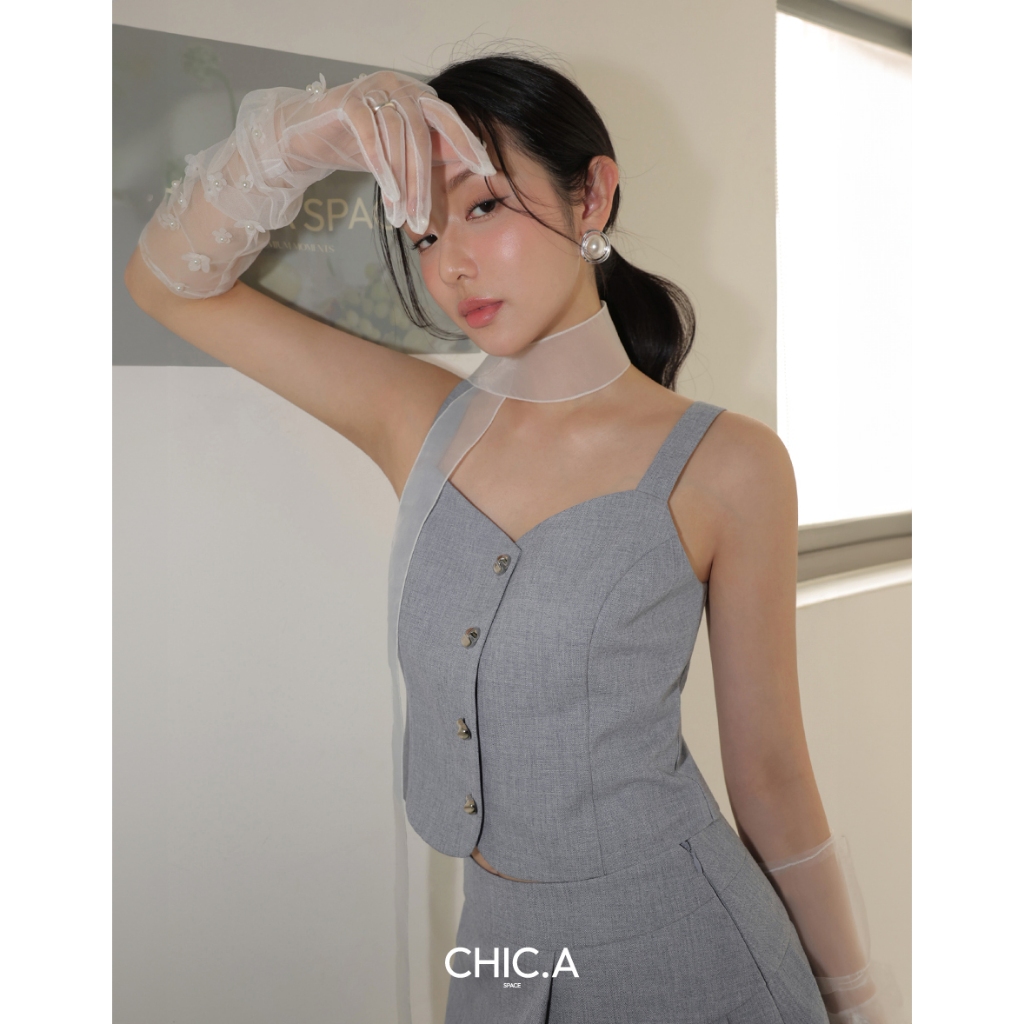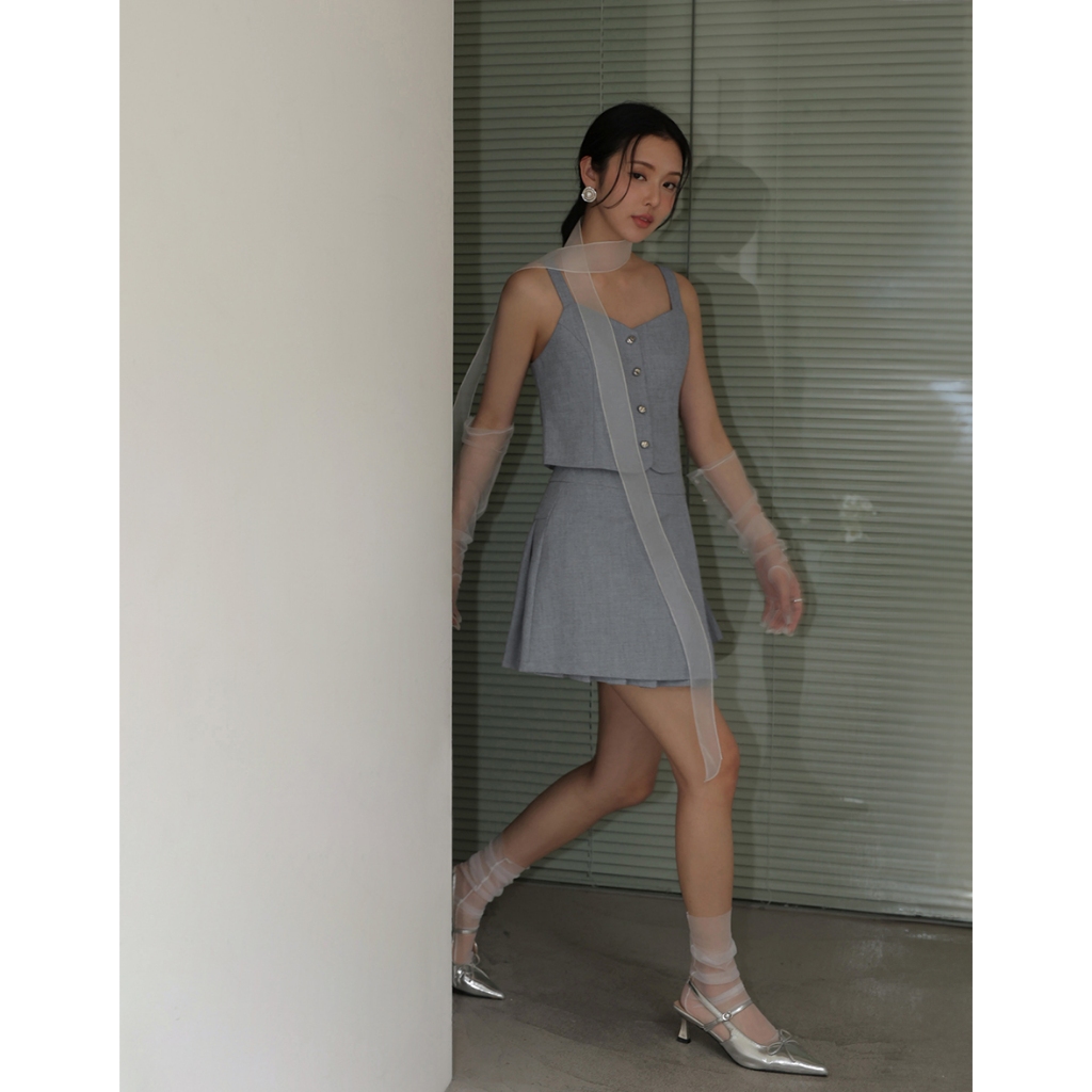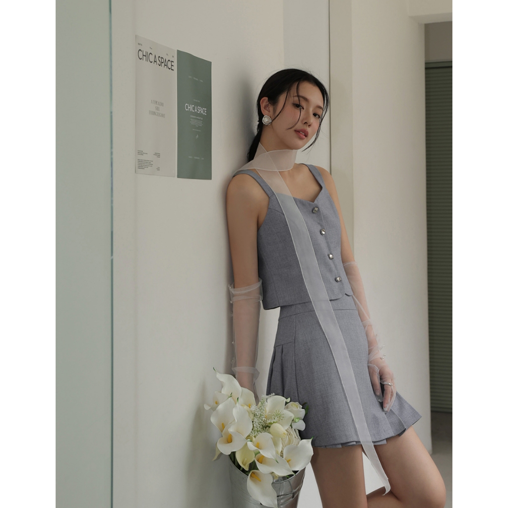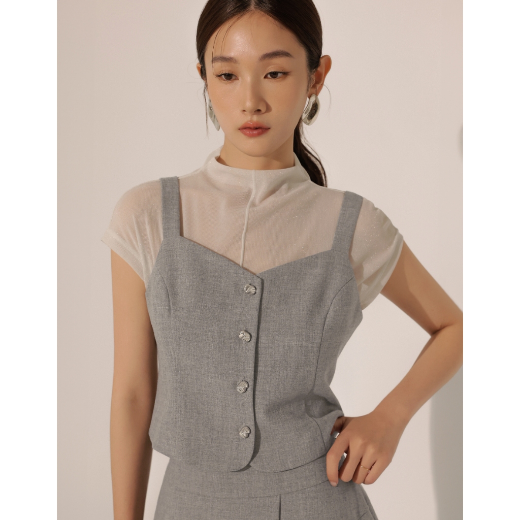CHIC A SPACE 小香風桃心領寬肩帶排釦背心(藍/深灰) 女裝 現貨