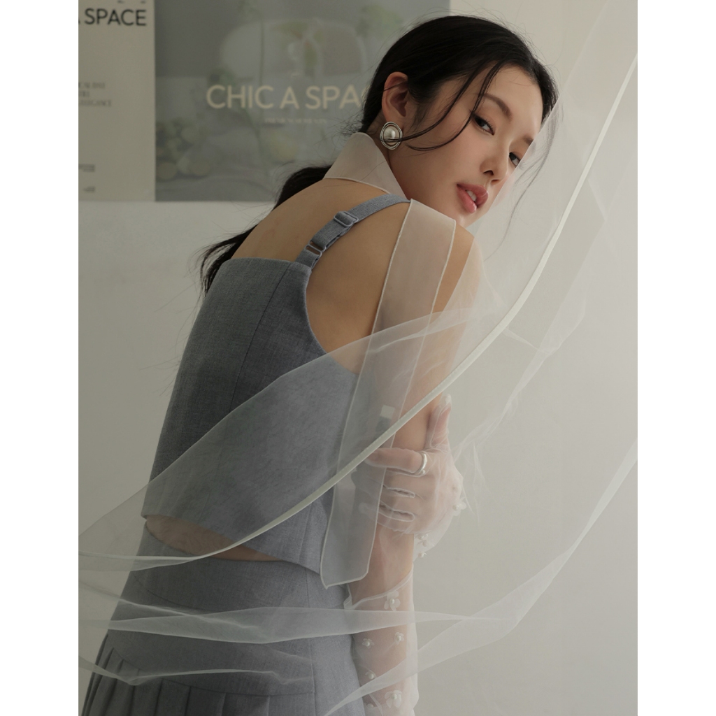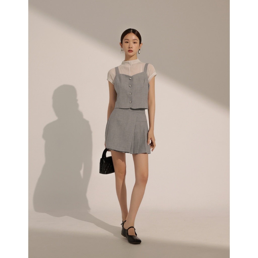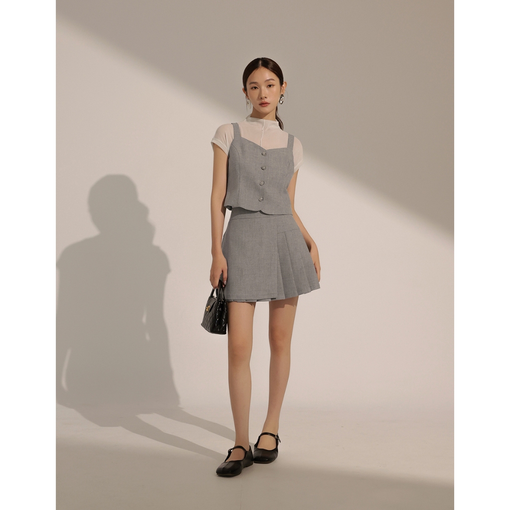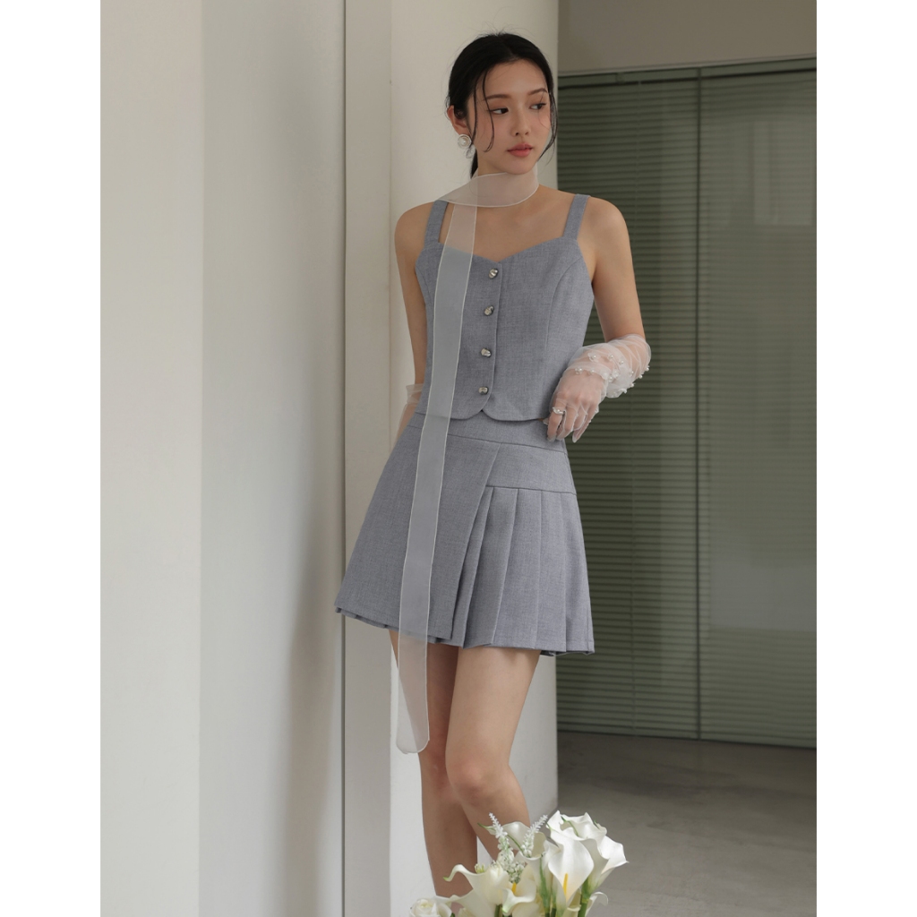 CHIC A SPACE 小香風桃心領寬肩帶排釦背心(藍/深灰) 女裝 現貨
