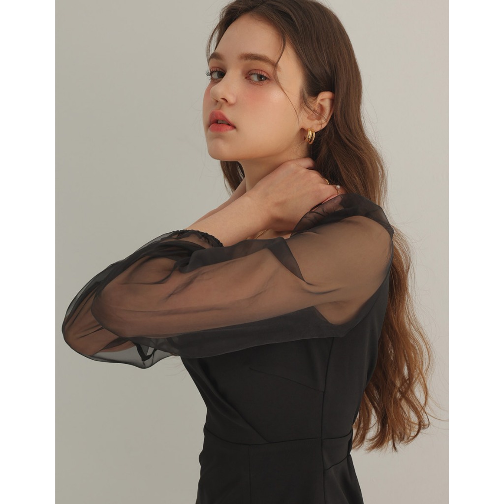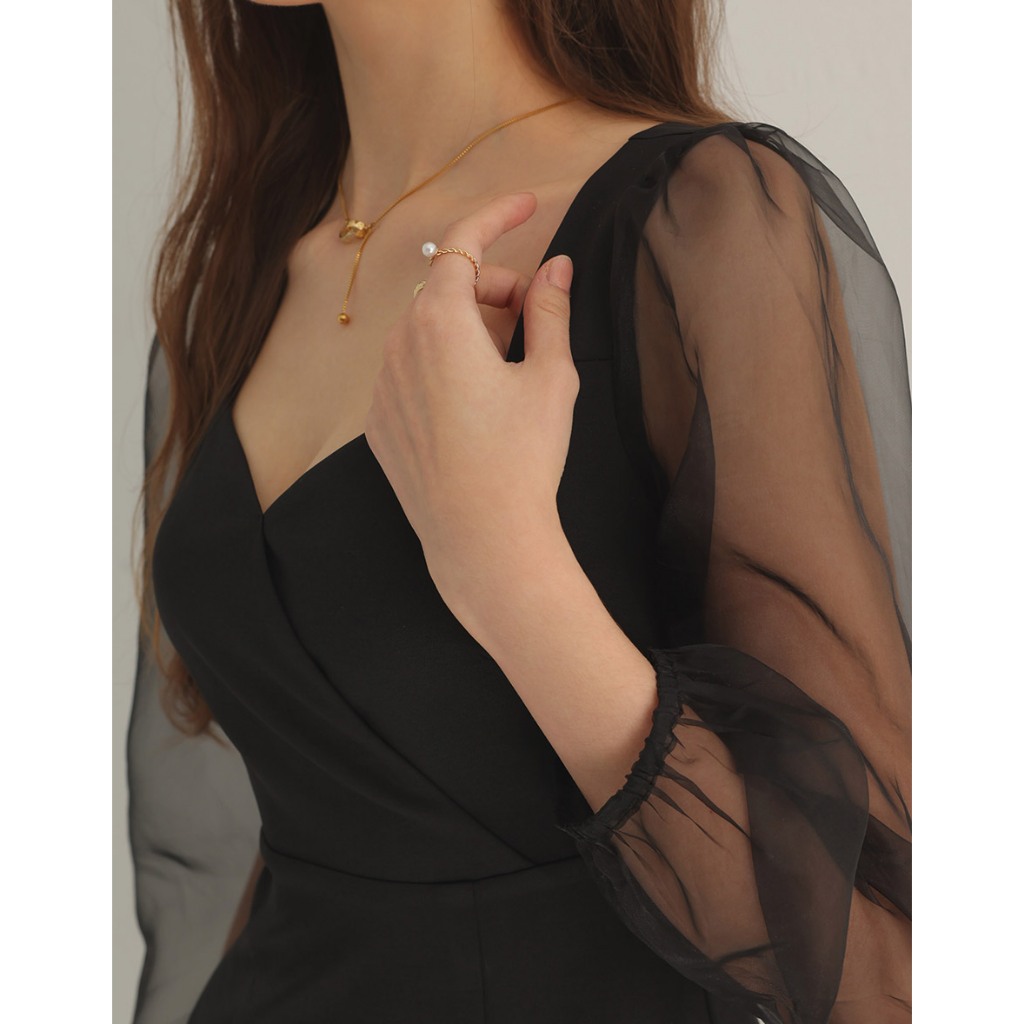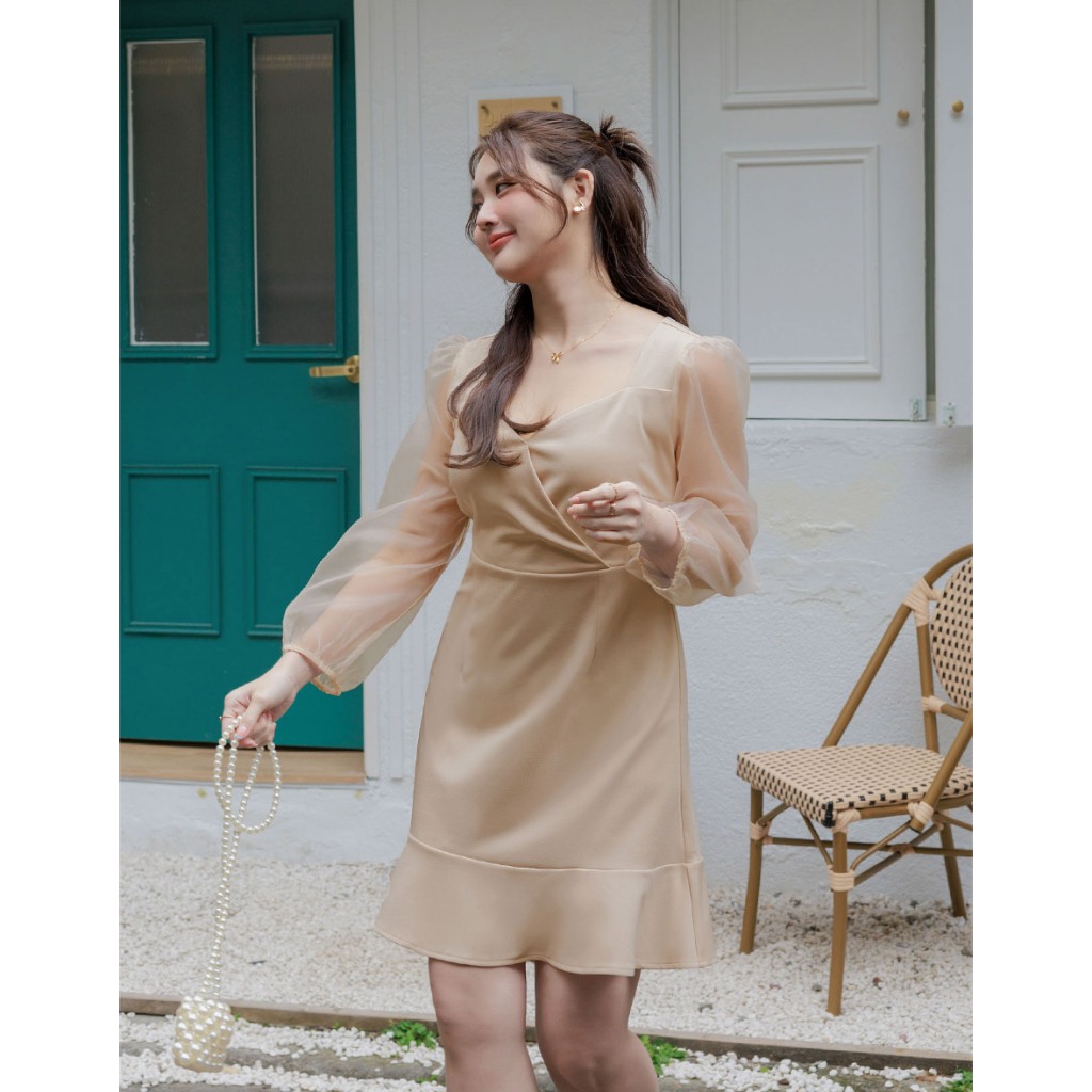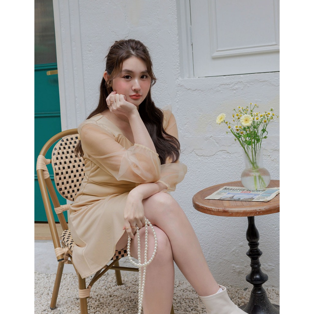 AIR SPACE PLUS 優雅透膚拼接魚尾短洋裝(黑/杏) 女裝 現貨 大尺碼 中大尺碼黑,XL|黑,2XL|黑,3XL|杏,XL|杏,2XL|杏,3XLAIR SPACE
