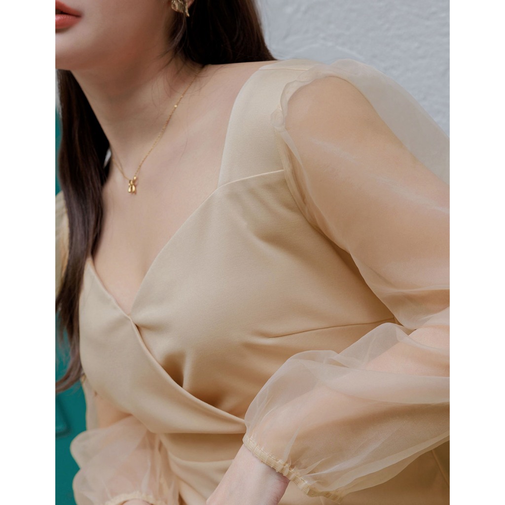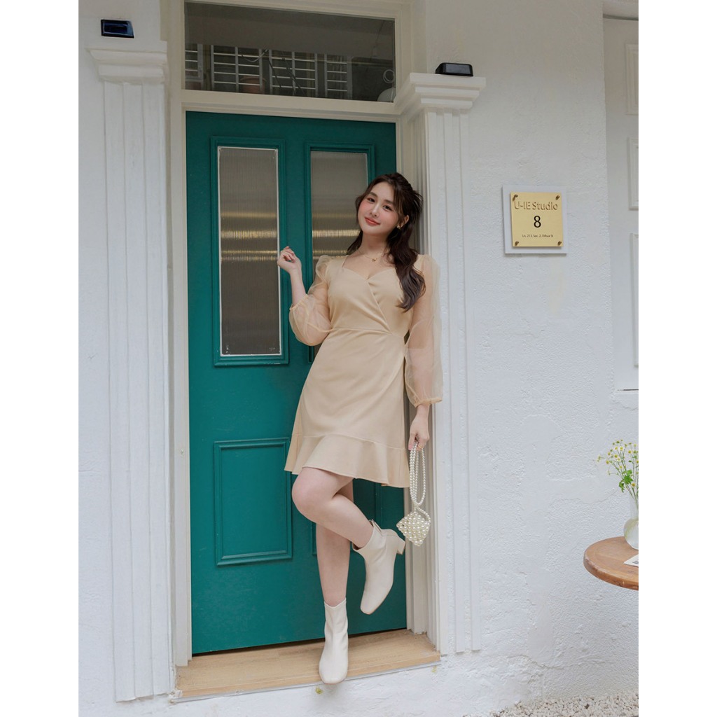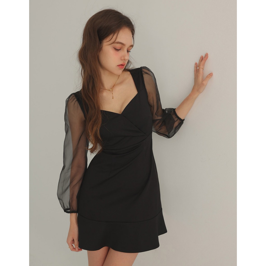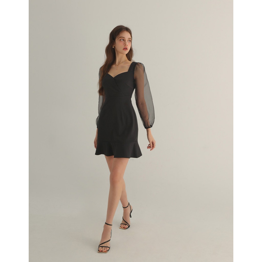 AIR SPACE PLUS 優雅透膚拼接魚尾短洋裝(黑/杏) 女裝 現貨 大尺碼 中大尺碼黑,XL|黑,2XL|黑,3XL|杏,XL|杏,2XL|杏,3XLAIR SPACE