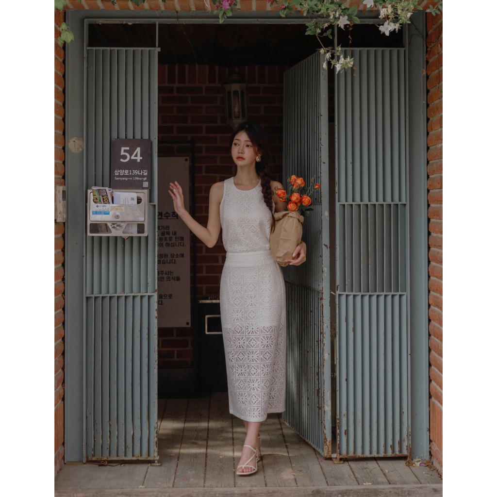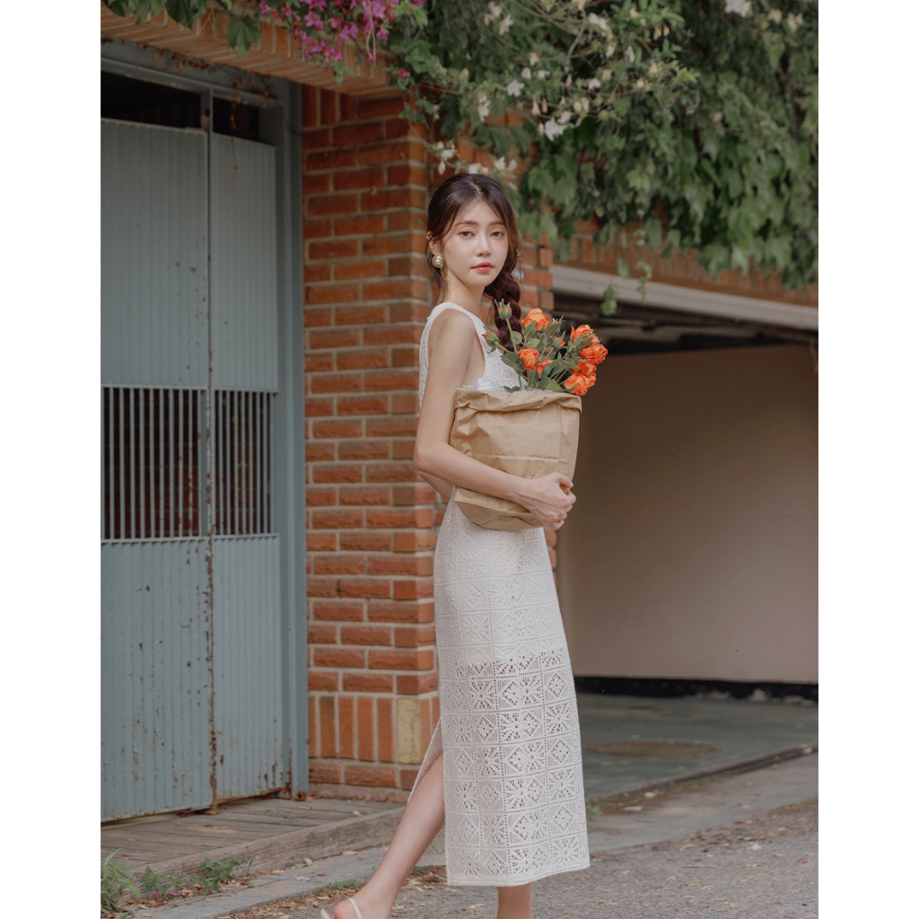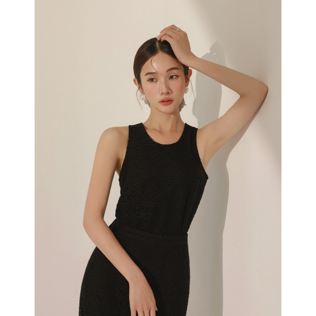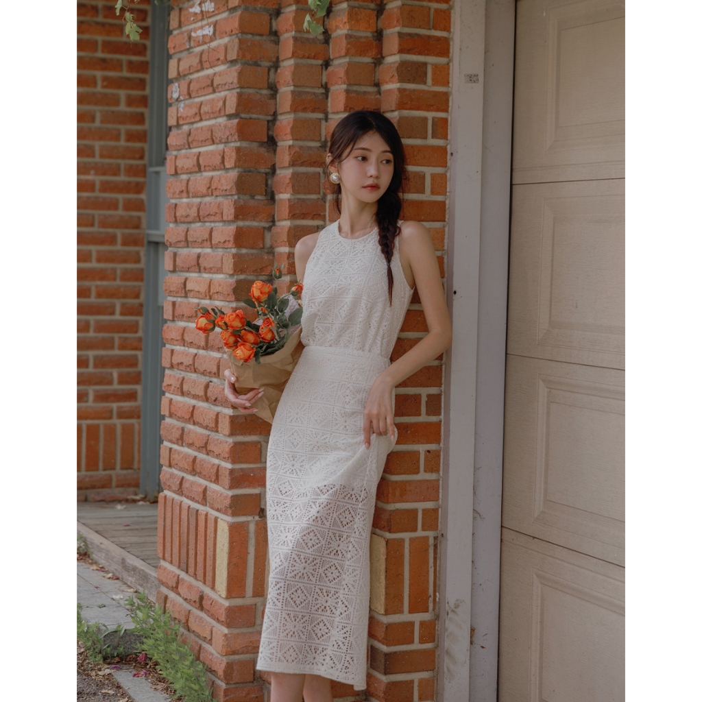 CHIC A SPACE 幾何鏤空蕾絲修身長裙(黑/杏) 女裝 現貨黑,S|黑,M|黑,L|杏,S|杏,M|杏,LAIR SPACE