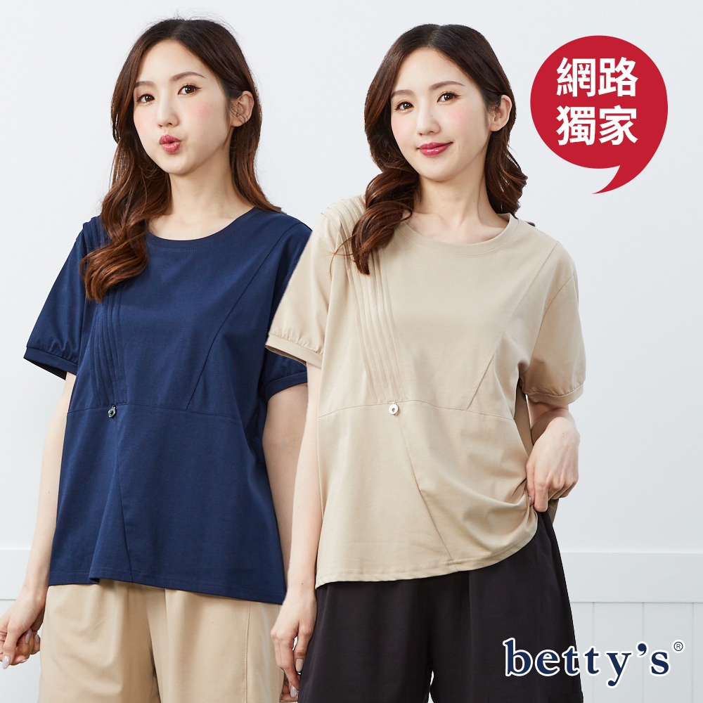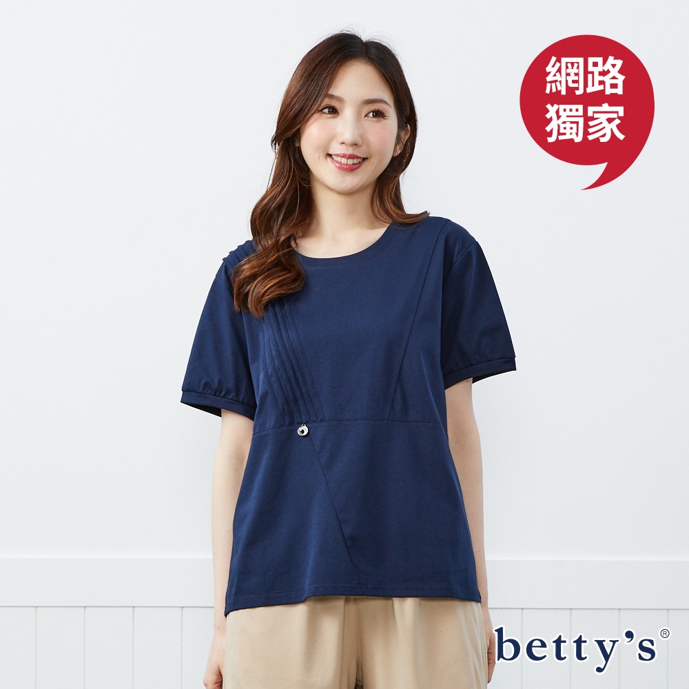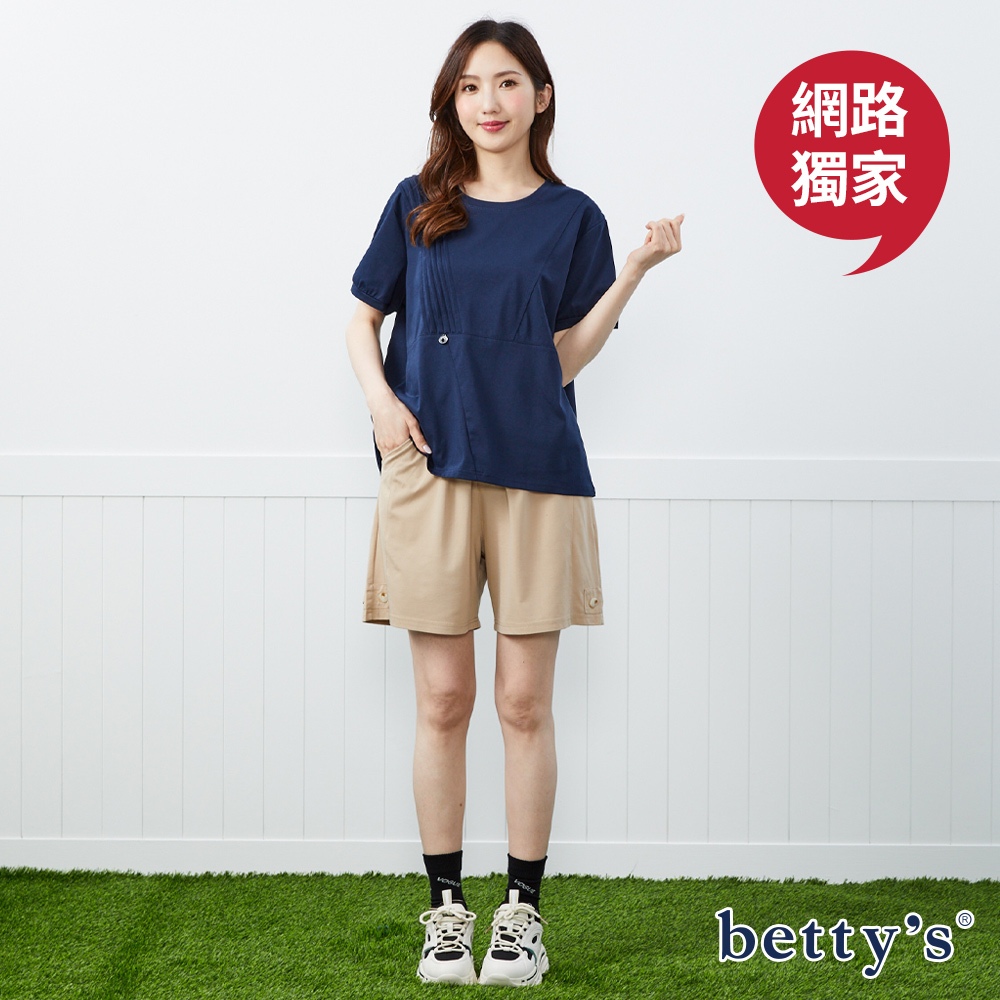 betty’s貝蒂思(50)壓摺修身短袖上衣(共二色)藍色|卡其T-shirtsbetty’s貝蒂思
