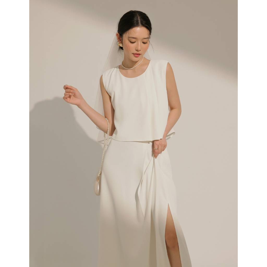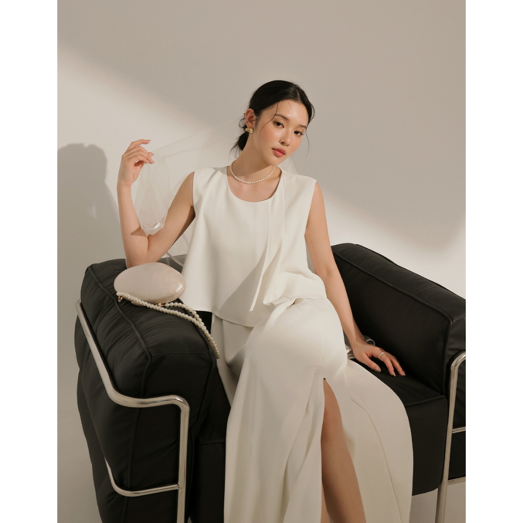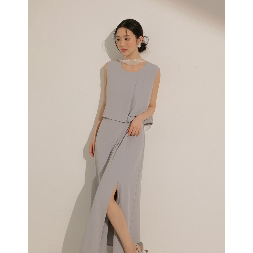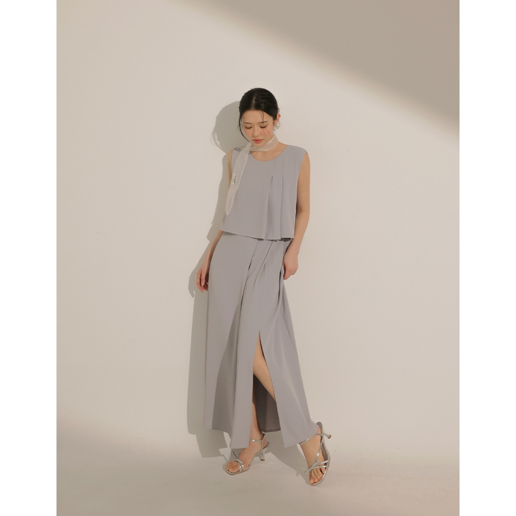 CHIC A SPACE 簡約雙褶層次感無袖長洋裝(白/淺灰) 女裝 現貨白,S|白,M|白,L|淺灰,S|淺灰,M|淺灰,LAIR SPACE
