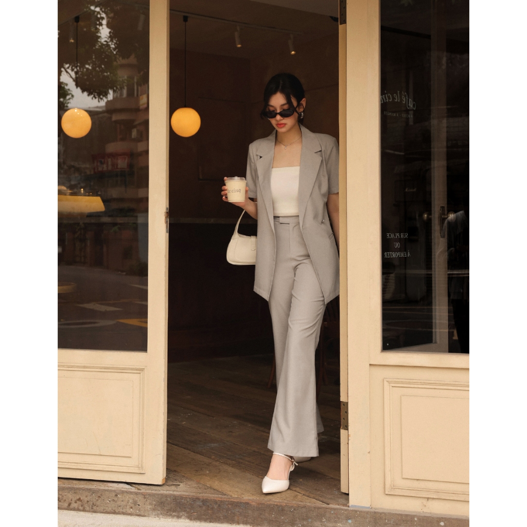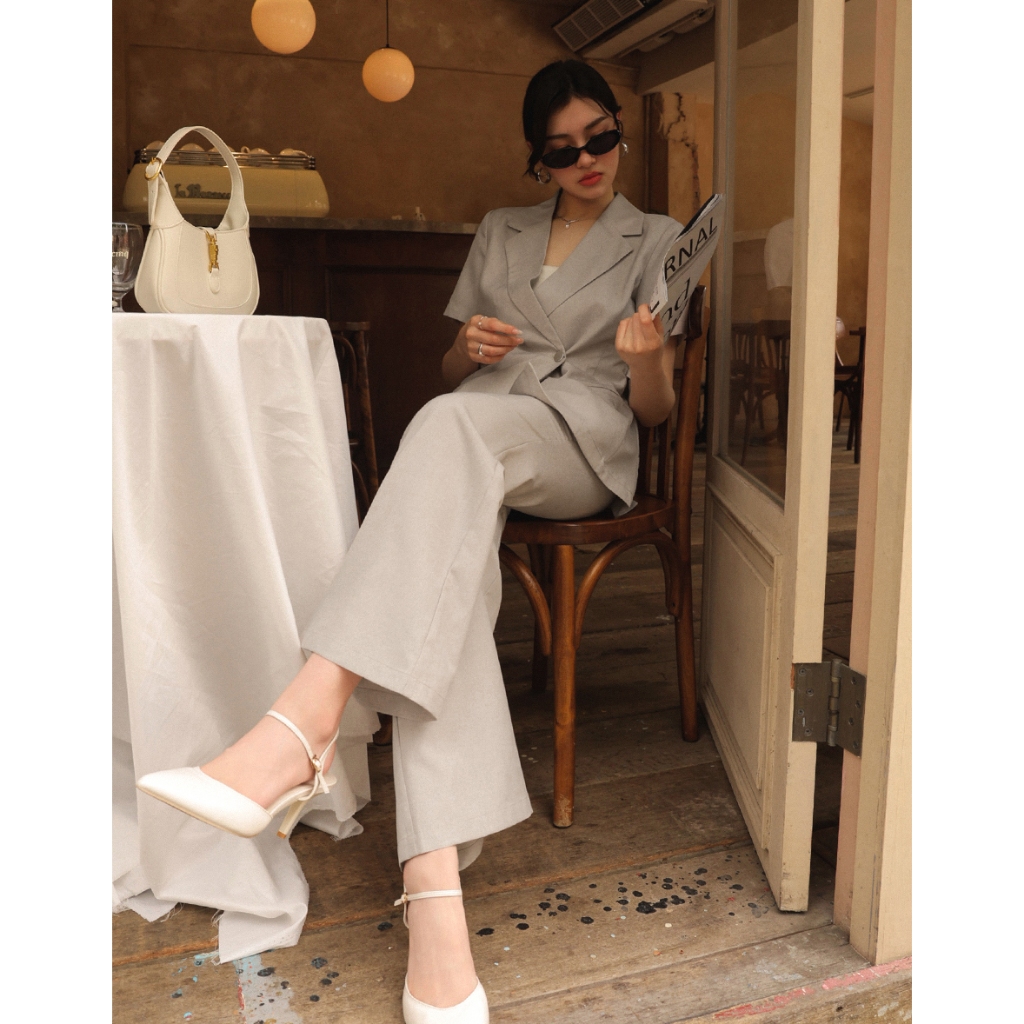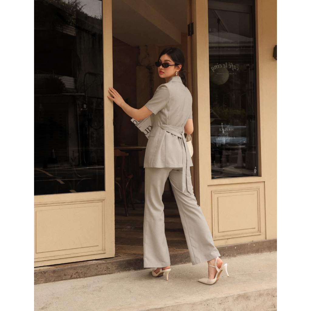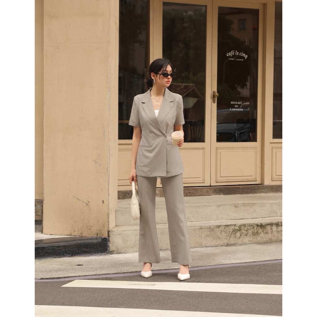 CHIC A SPACE 側釦綁帶短袖西裝外套(附墊肩)(黑/卡其) 女裝 現貨黑,S|黑,M|黑,L|卡其,S|卡其,M|卡其,LBlazersAIR SPACE