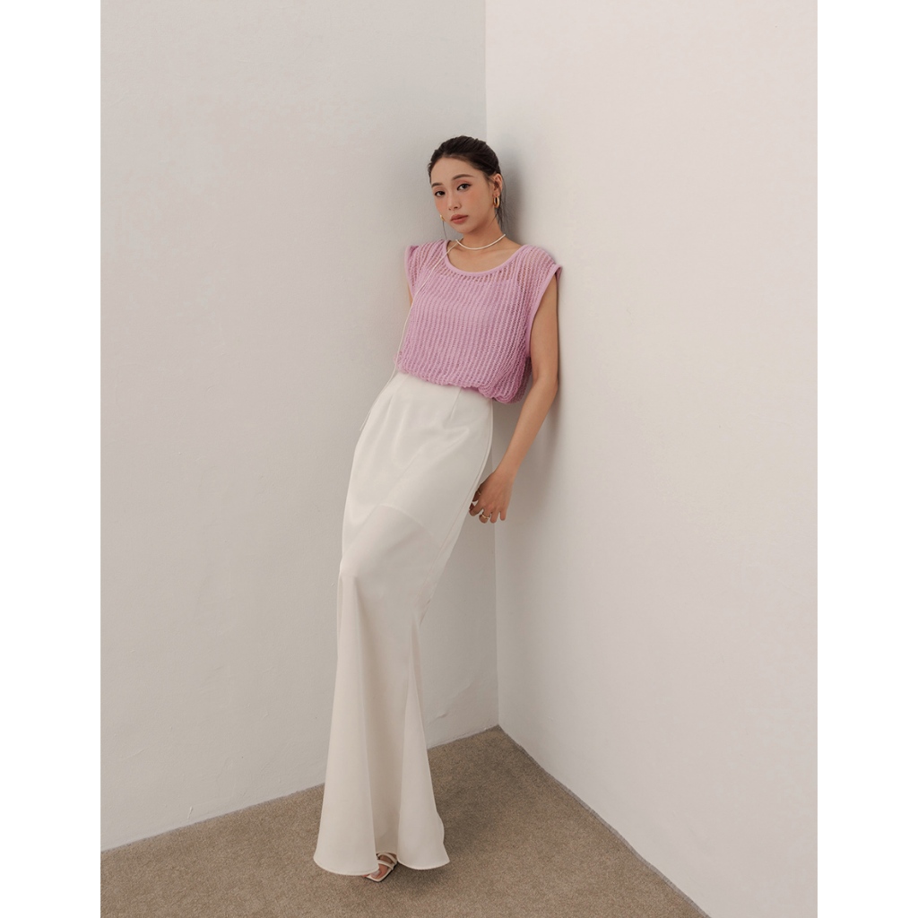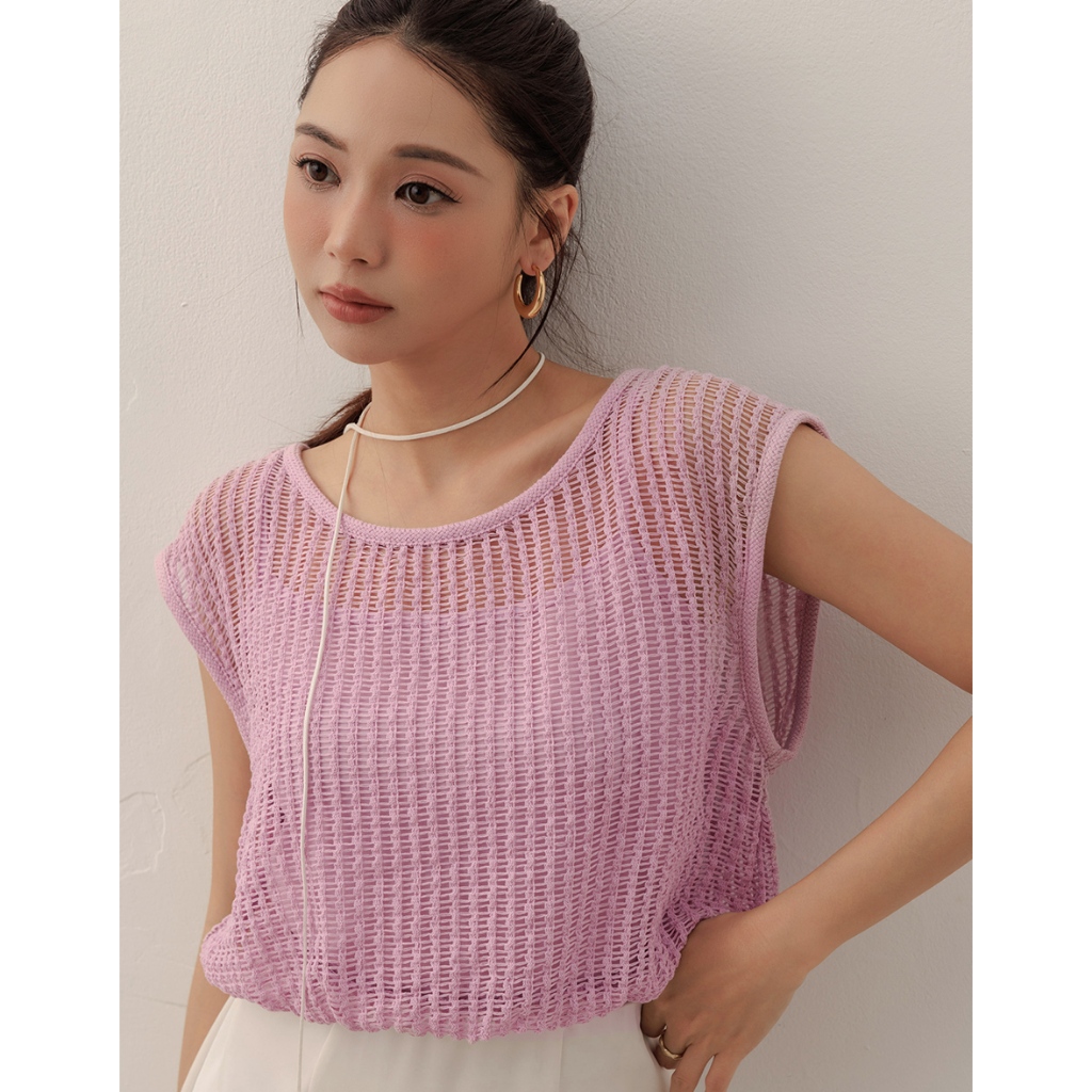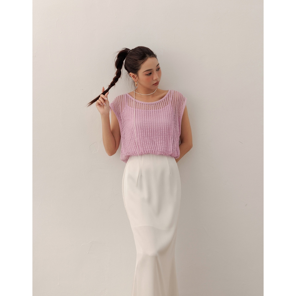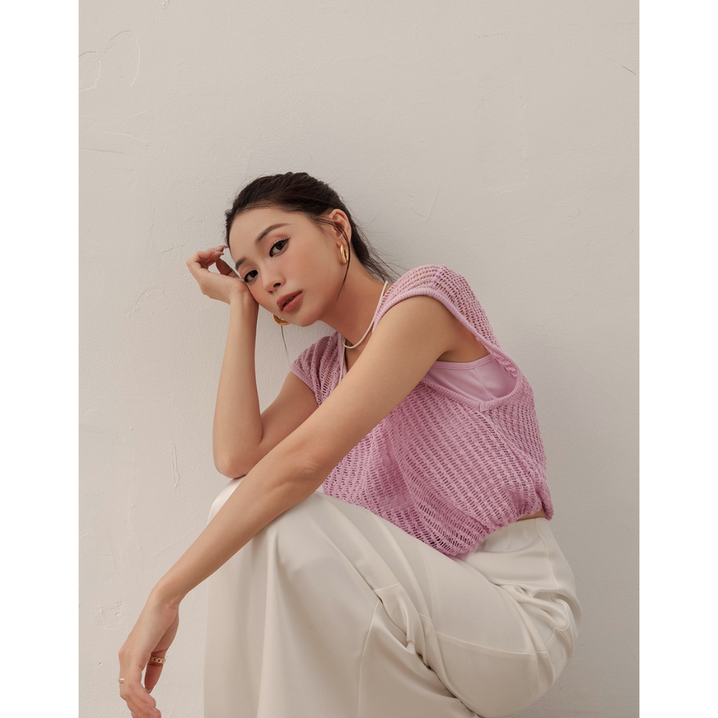 AIR SPACE LADY 假兩件透膚針織無袖上衣(白/粉紅) 女裝 現貨