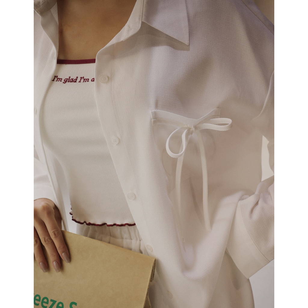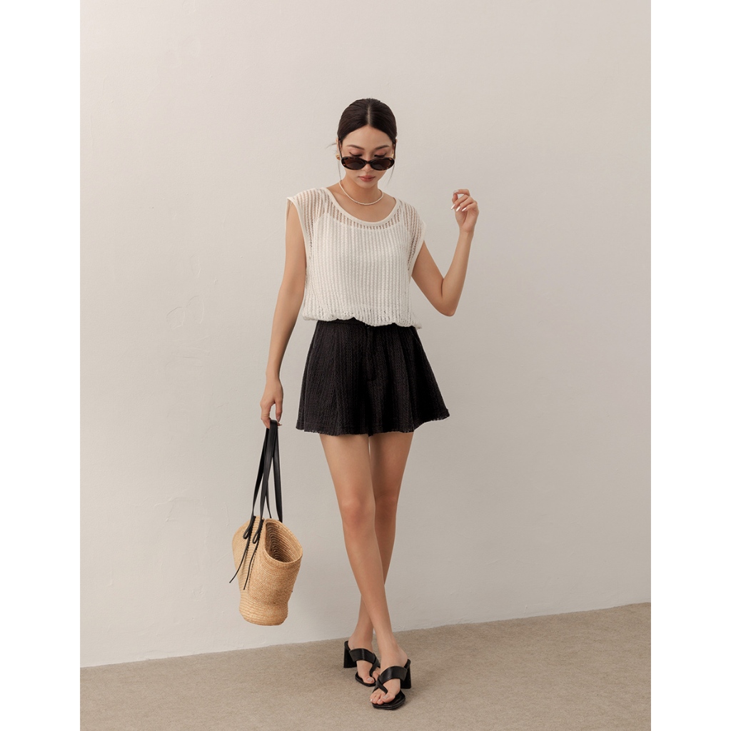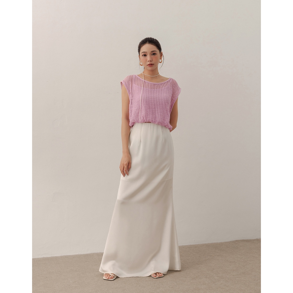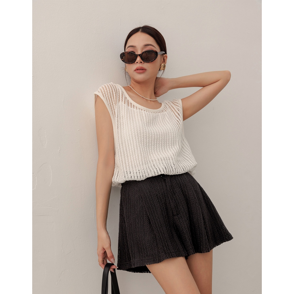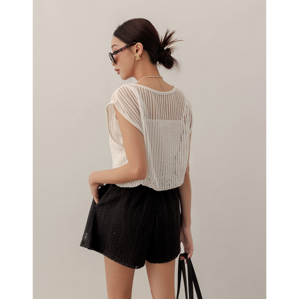 AIR SPACE LADY 假兩件透膚針織無袖上衣(白/粉紅) 女裝 現貨