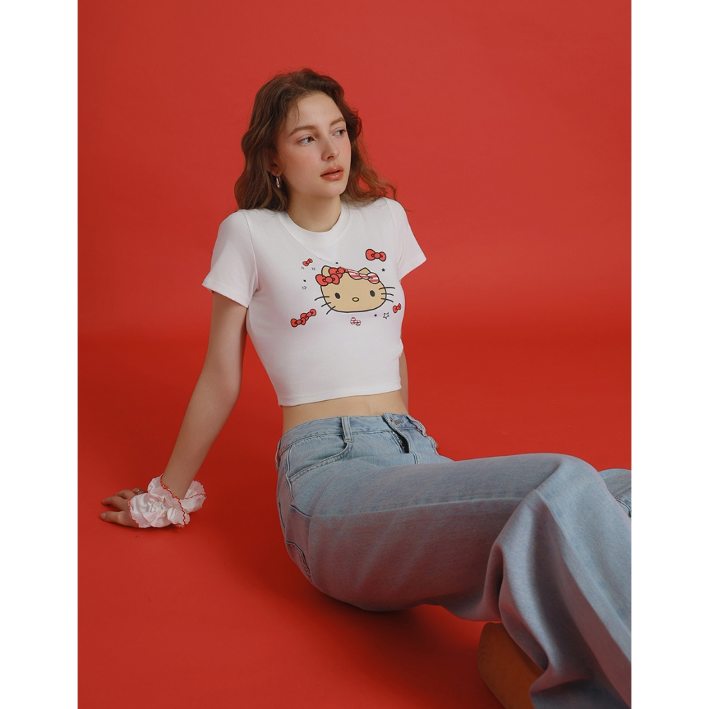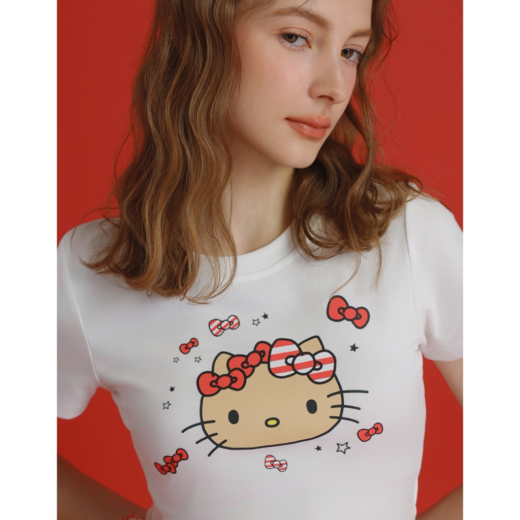 AIR SPACE PLUS 【Hello Kitty聯名】蝴蝶結星星短TEE(白) 女裝 現貨 大尺碼 中大尺碼白,XL|白,2XL|白,3XLT-shirtsAIR SPACE