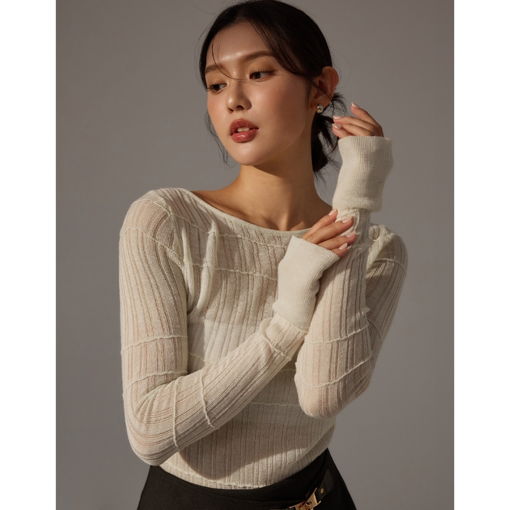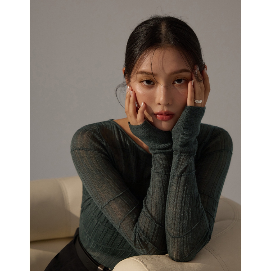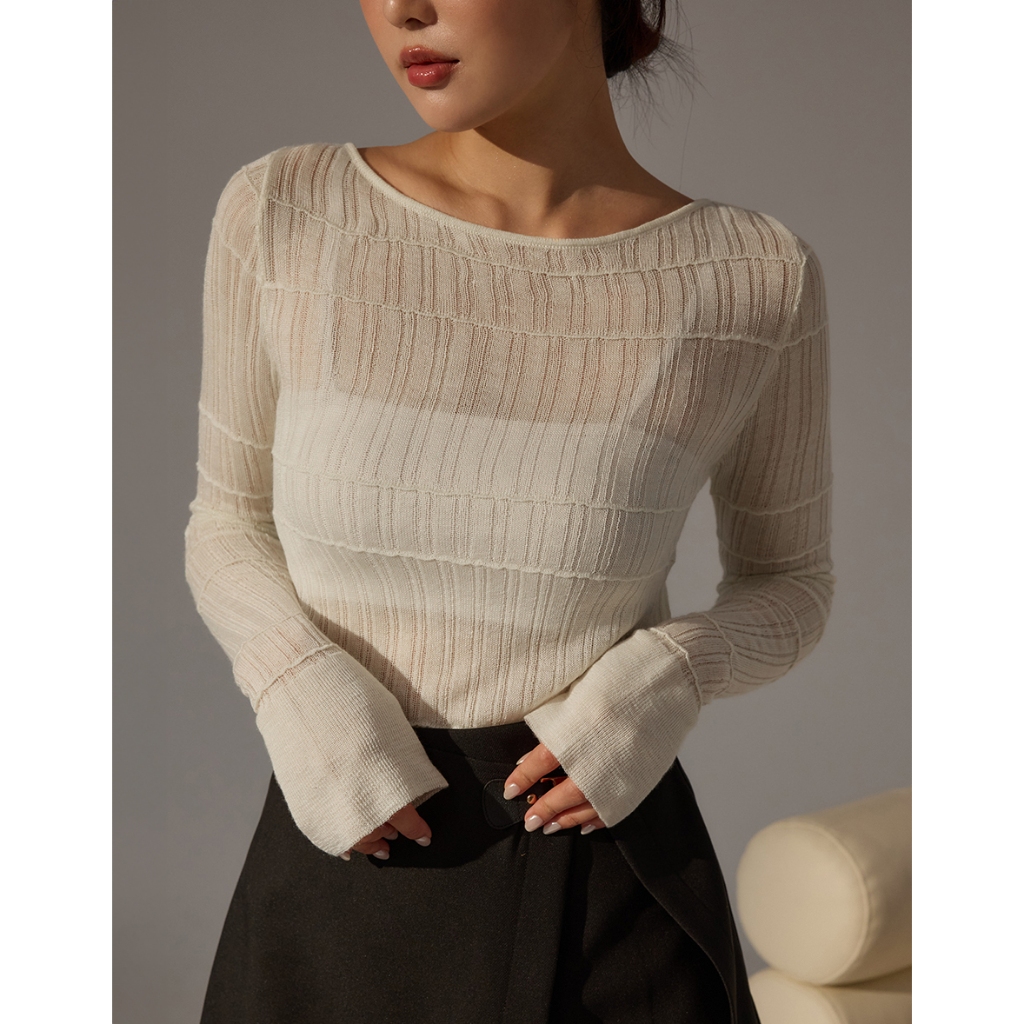 CHIC A SPACE 船領透肌織紋上衣(杏/綠) 女裝 現貨杏,M|綠,S|綠,M|杏,ST-shirtsAIR SPACE