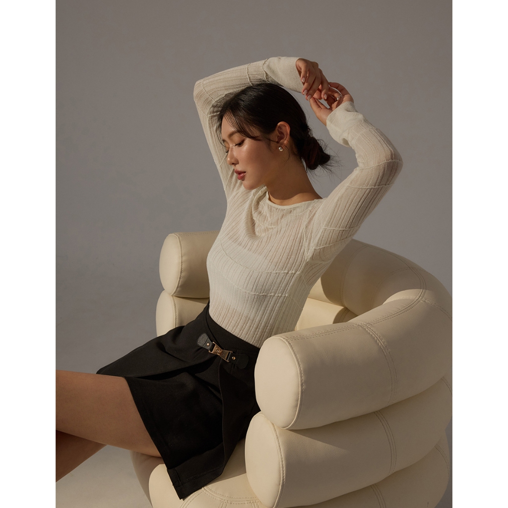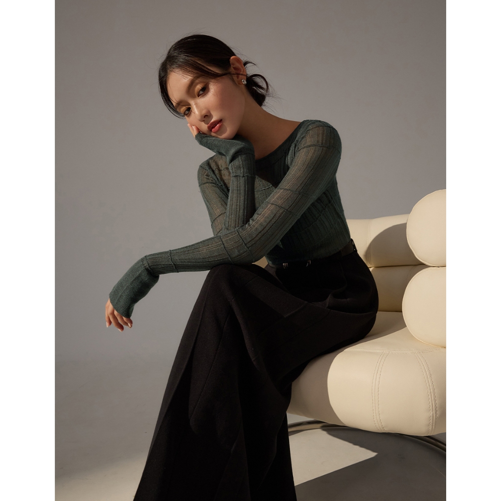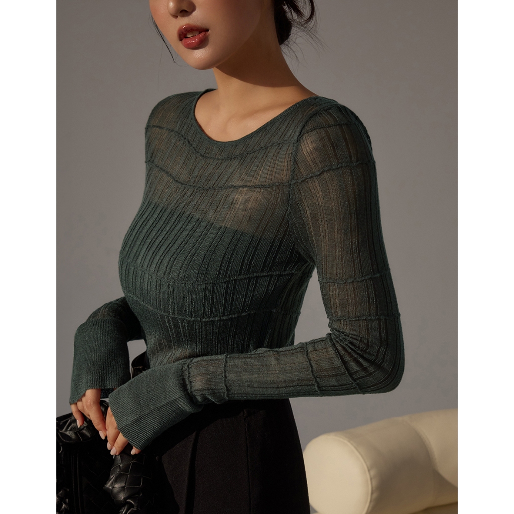 CHIC A SPACE 船領透肌織紋上衣(杏/綠) 女裝 現貨杏,M|綠,S|綠,M|杏,ST-shirtsAIR SPACE