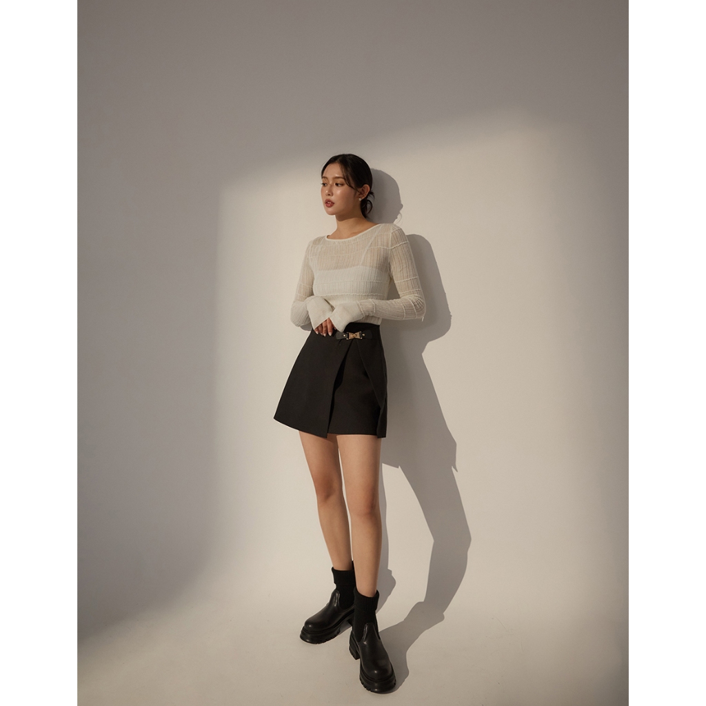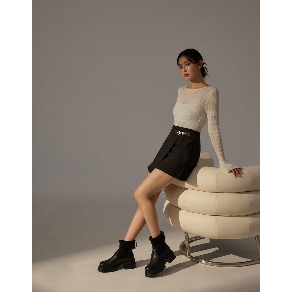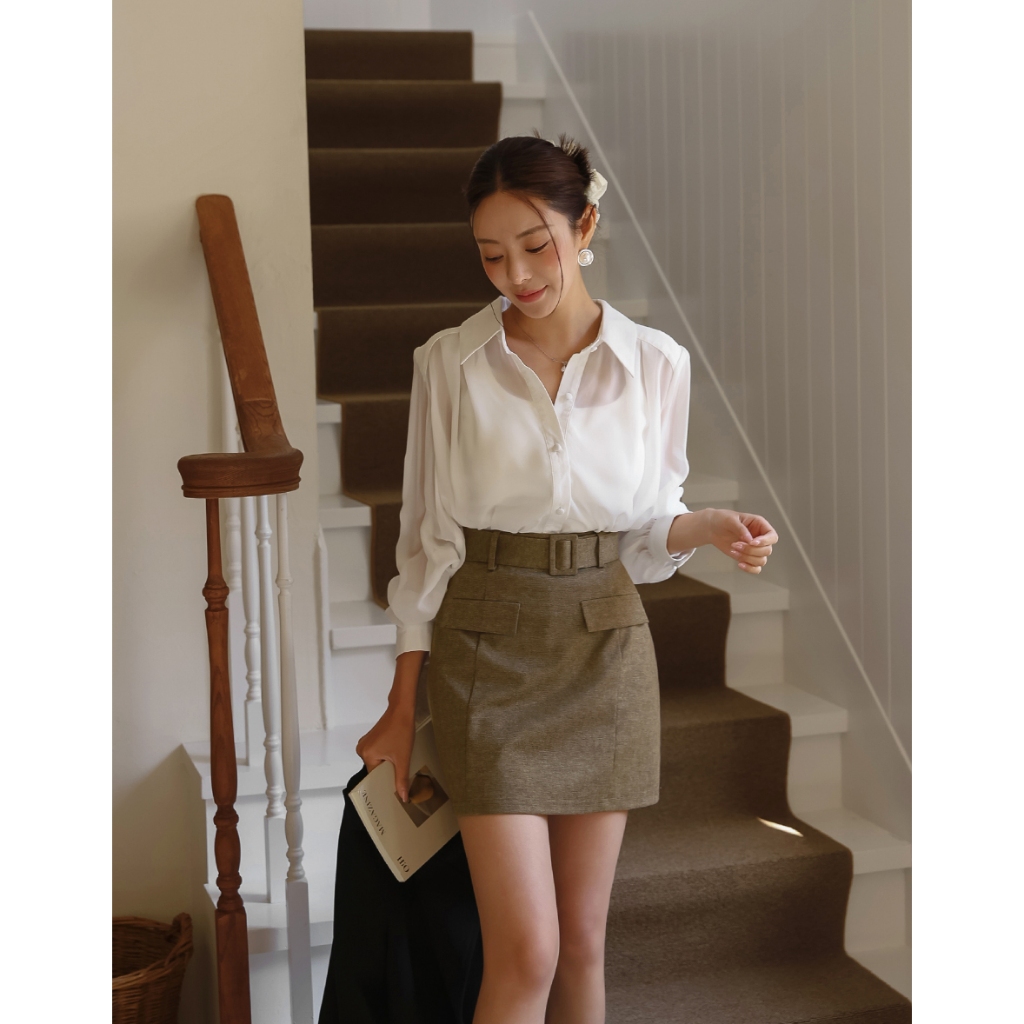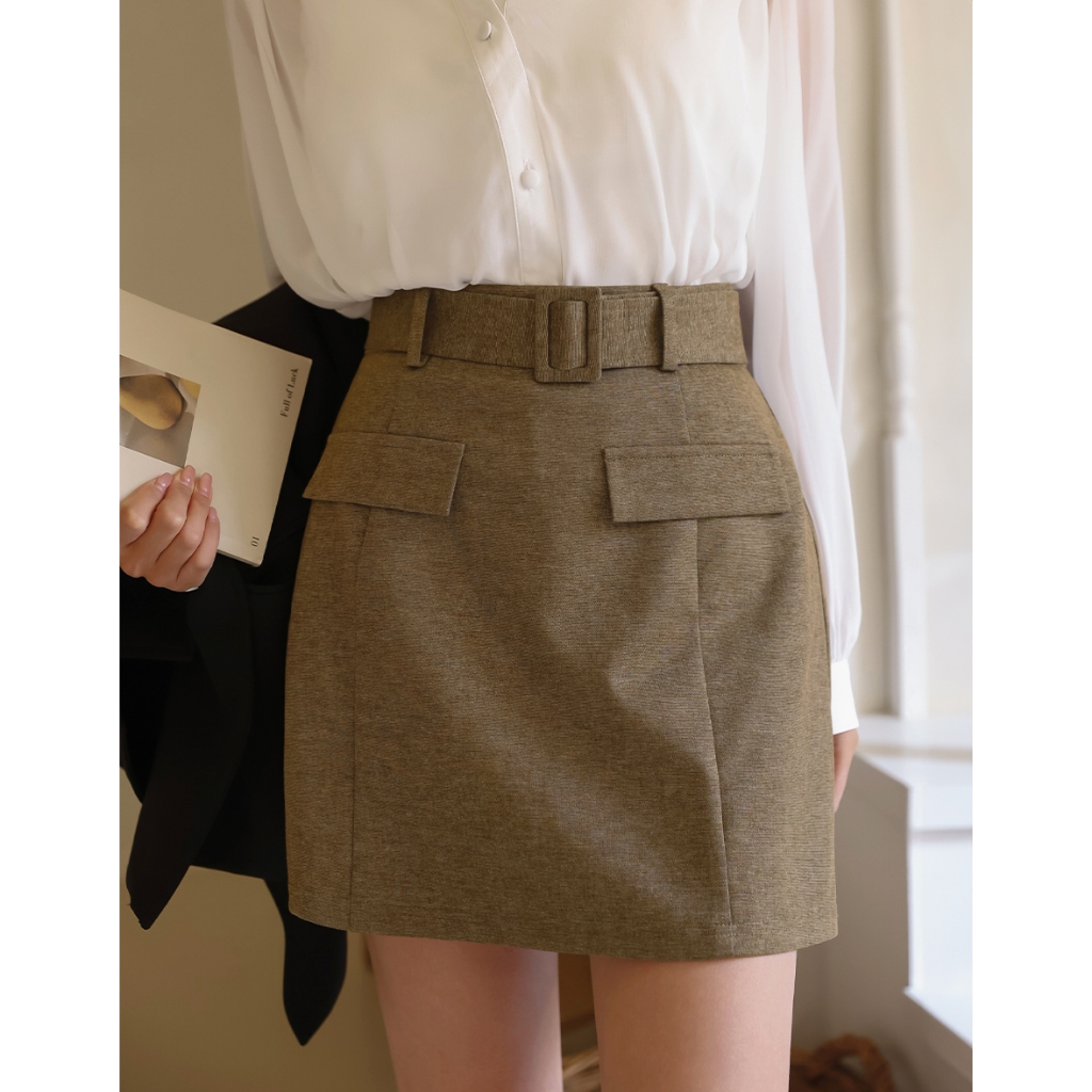 CHIC A SPACE 復古時髦休閒短裙(附腰帶)(黑/卡其) 女裝 現貨黑,S|黑,M|黑,L|卡其,S|卡其,M|卡其,LAIR SPACE