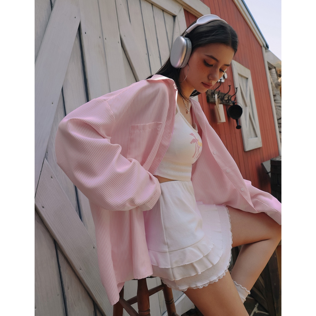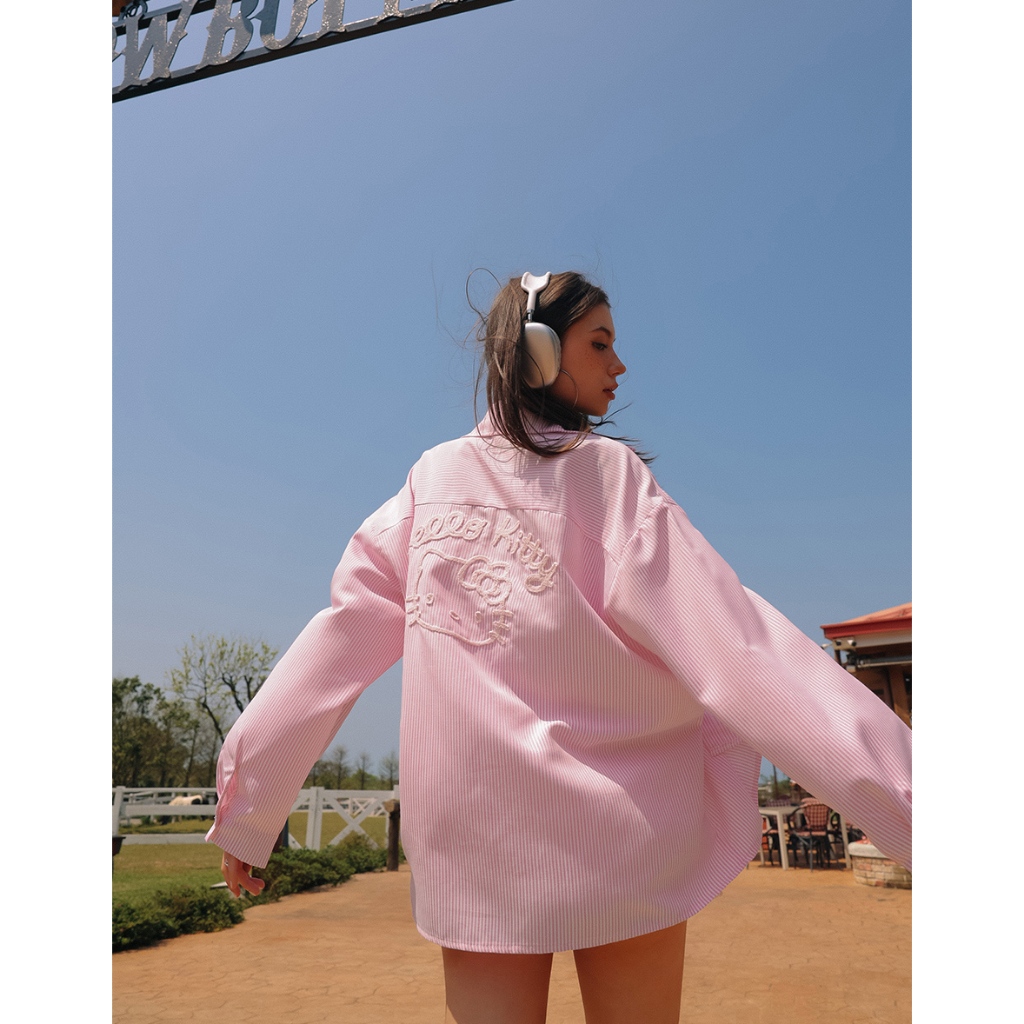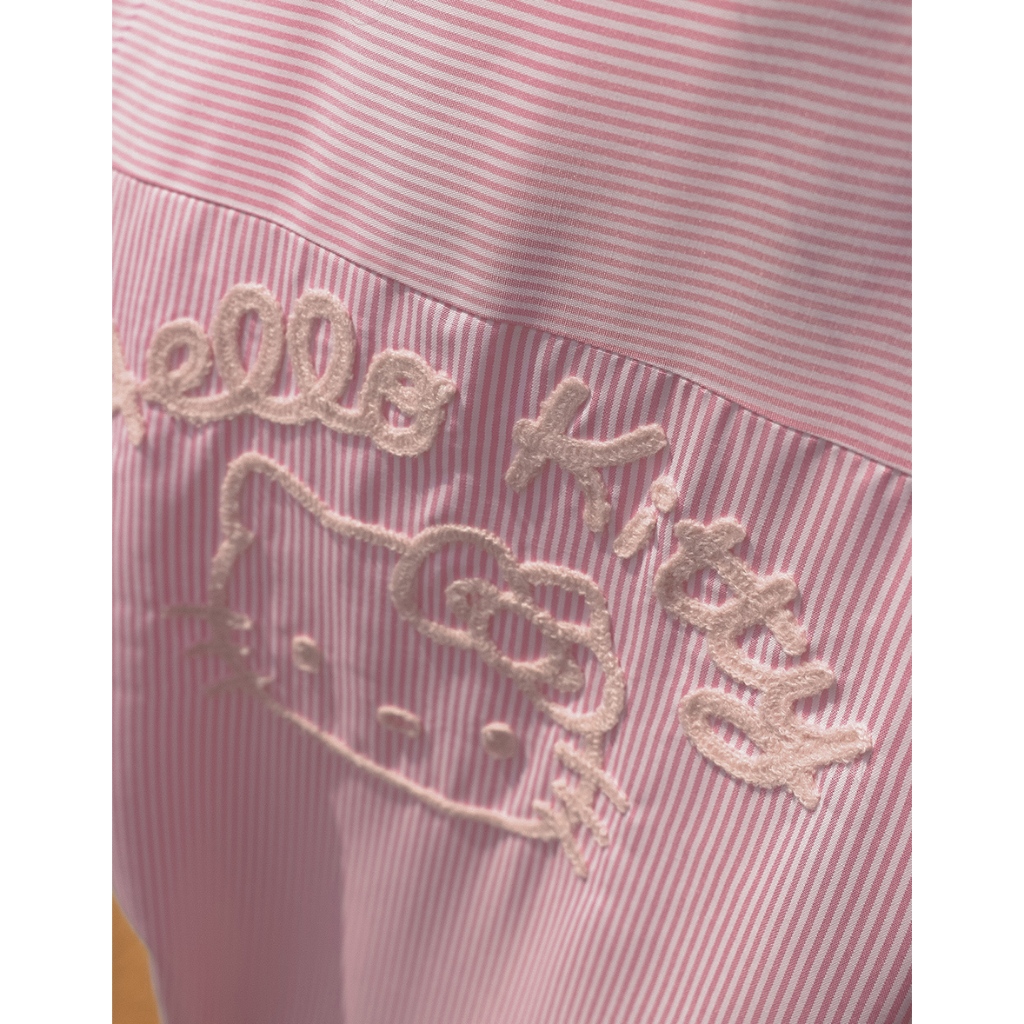 AIR SPACE PLUS 【Hello Kitty聯名】刺繡圖案條紋寬版襯衫(藍/粉紅) 女裝 現貨 大尺碼藍,FF|粉紅,FFShirts & BlousesAIR SPACE