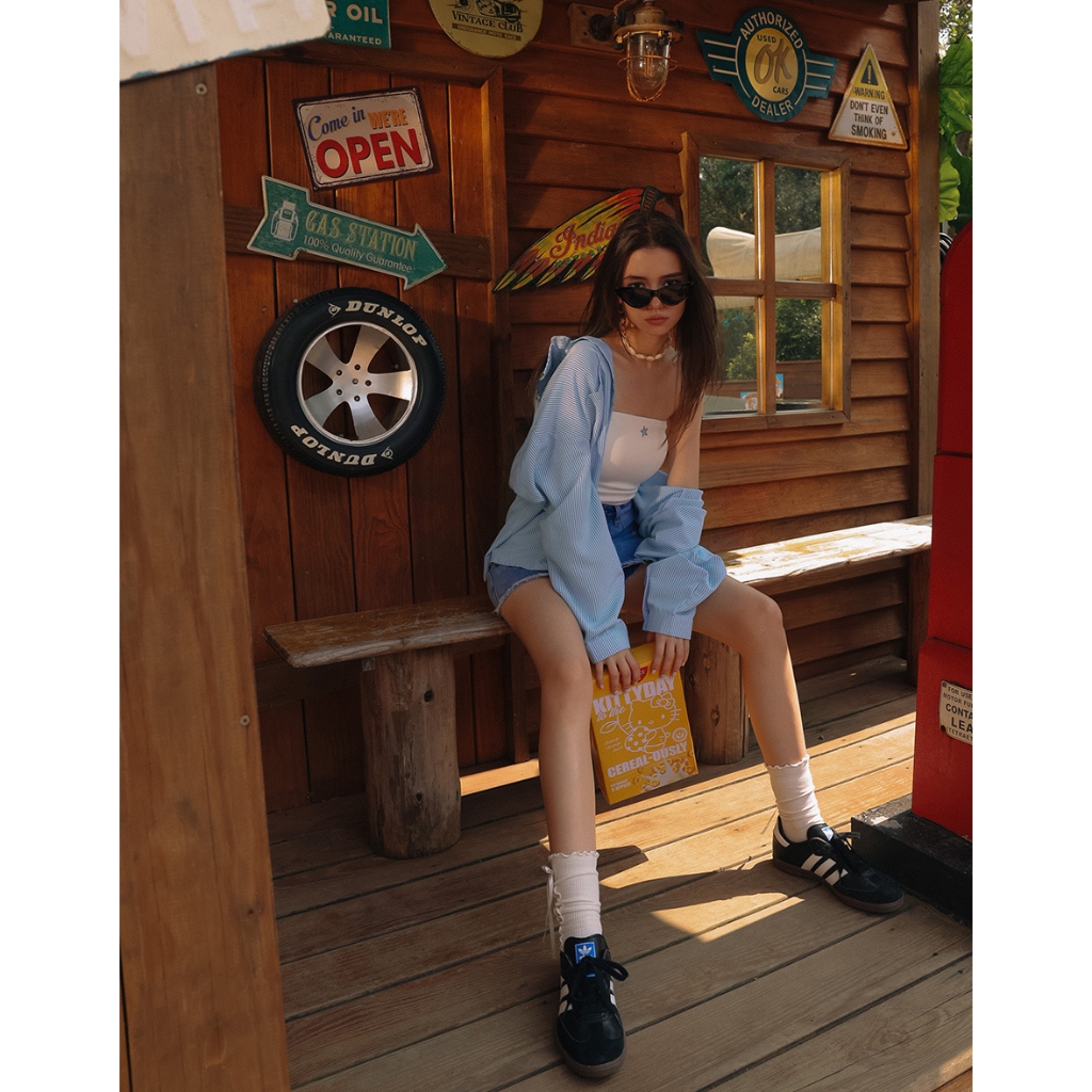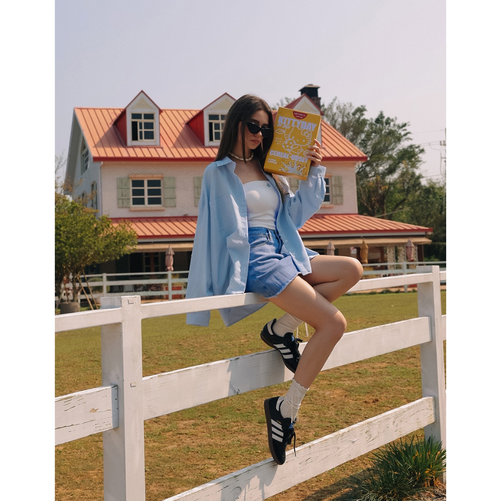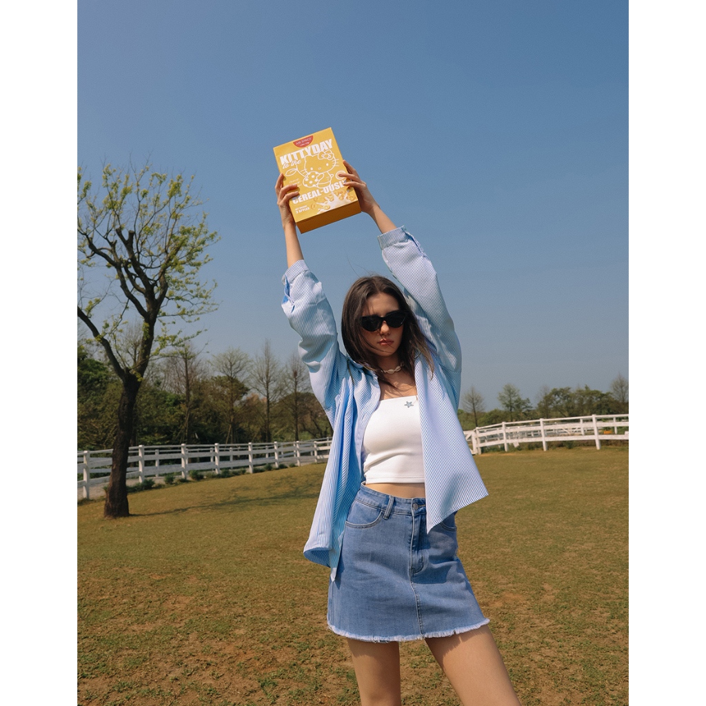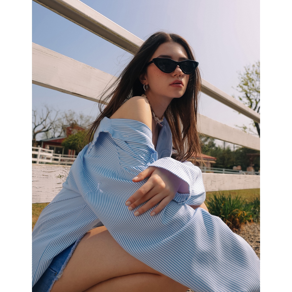 AIR SPACE PLUS 【Hello Kitty聯名】刺繡圖案條紋寬版襯衫(藍/粉紅) 女裝 現貨 大尺碼藍,FF|粉紅,FFShirts & BlousesAIR SPACE