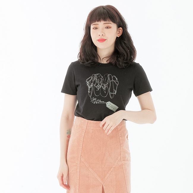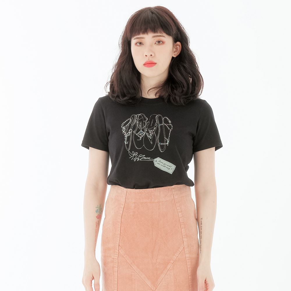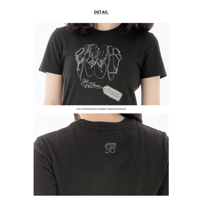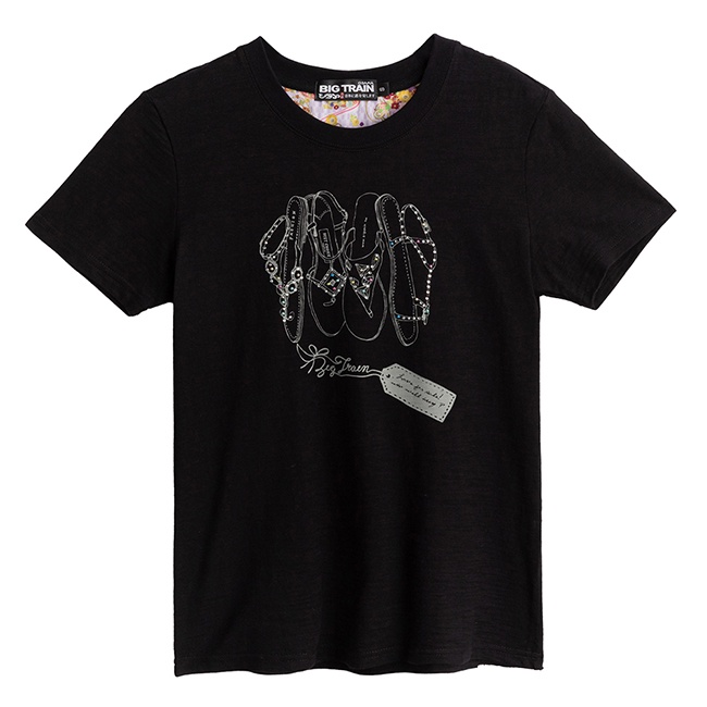 BIG TRAIN 雅鑽涼鞋竹節棉修身女T-黑S|M|LT-shirtsBIG TRAIN 官方旗艦店