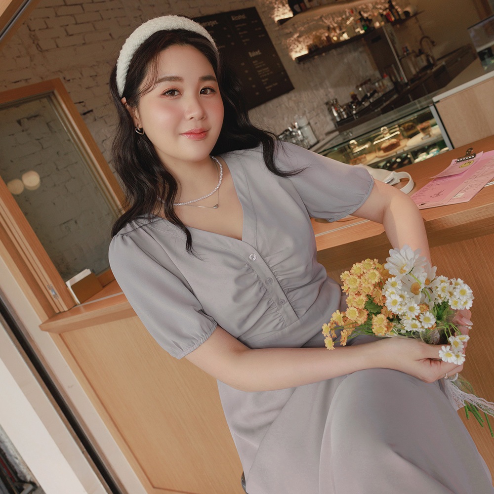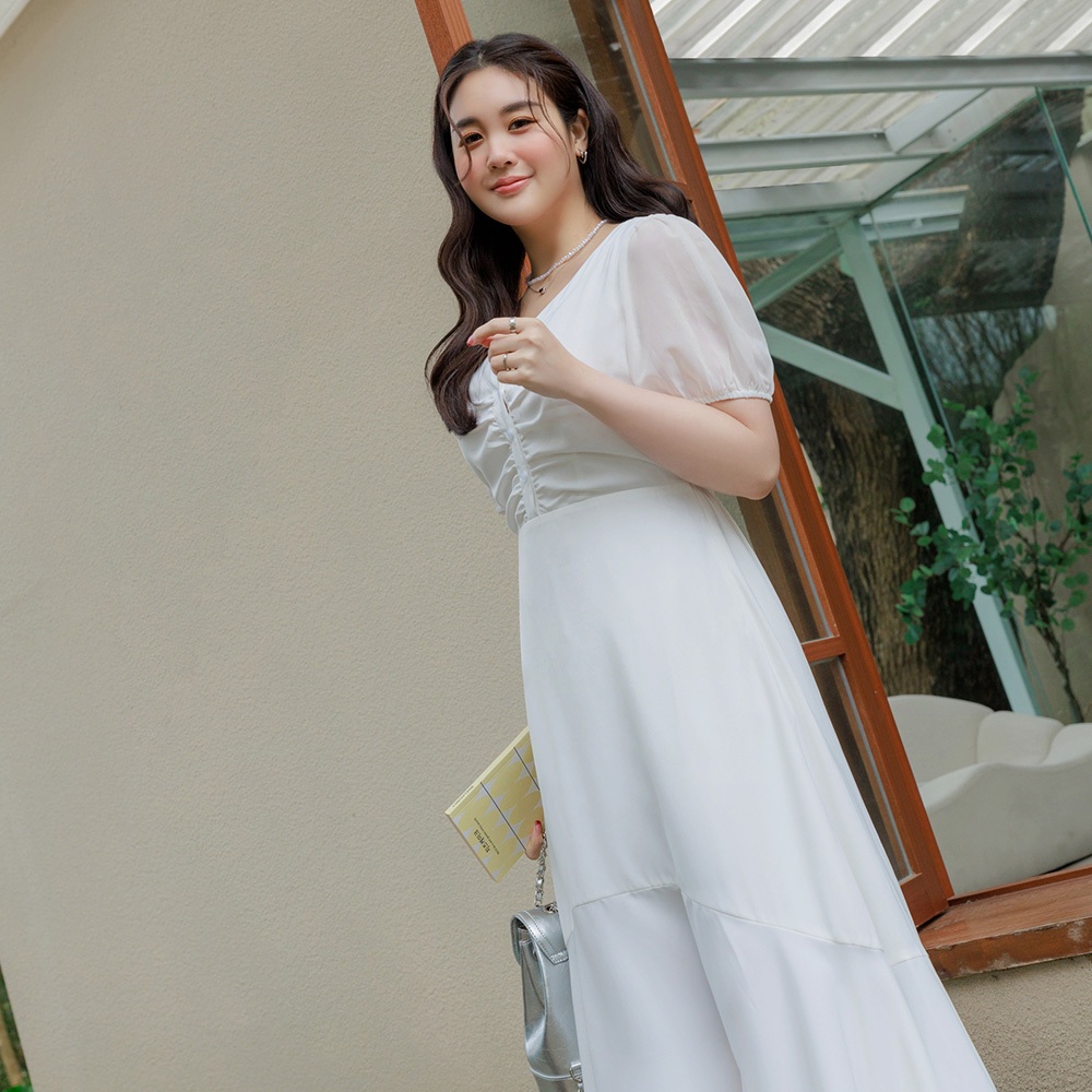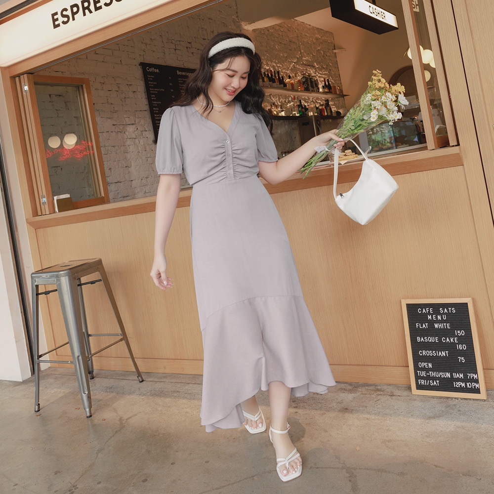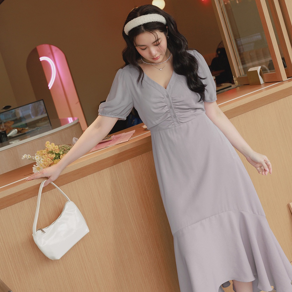 AIR SPACE PLUS 仙女雪紡抓皺魚尾長洋裝(白/灰藍) 女裝 現貨 大尺碼 中大尺碼白,XL|白,2XL|白,3XL|灰藍,XL|灰藍,2XL|灰藍,3XLAIR SPACE
