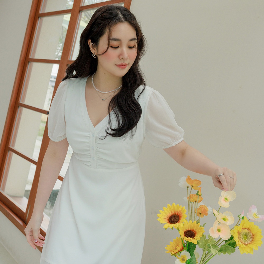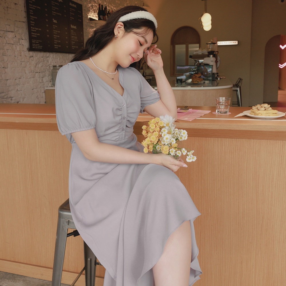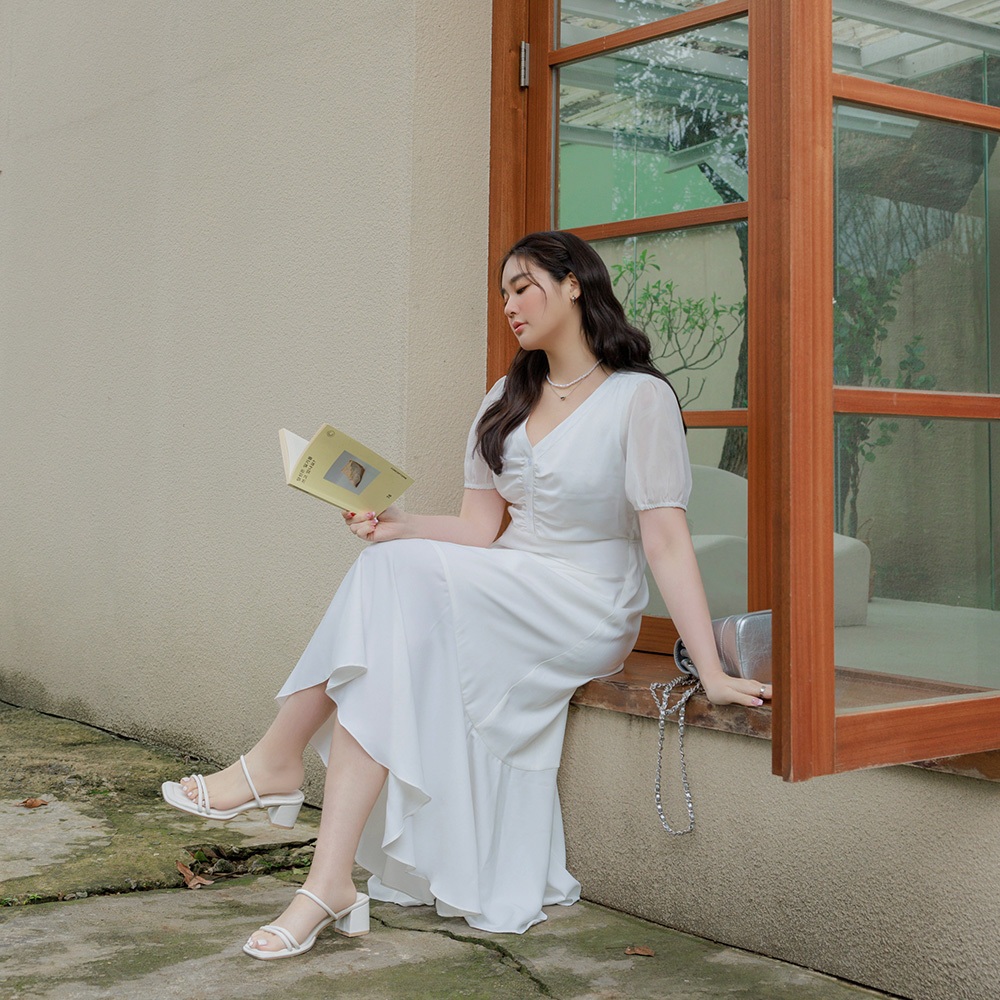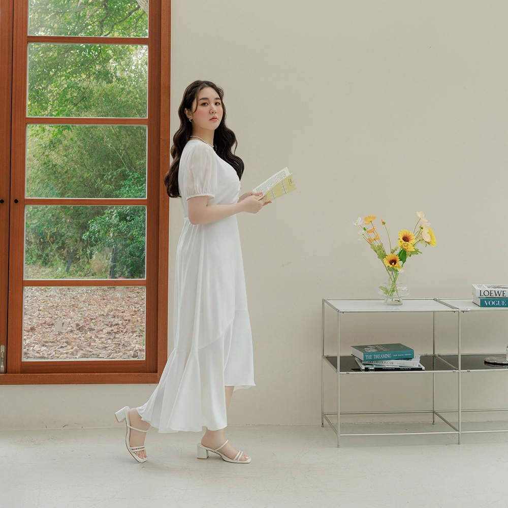 AIR SPACE PLUS 仙女雪紡抓皺魚尾長洋裝(白/灰藍) 女裝 現貨 大尺碼 中大尺碼白,XL|白,2XL|白,3XL|灰藍,XL|灰藍,2XL|灰藍,3XLAIR SPACE