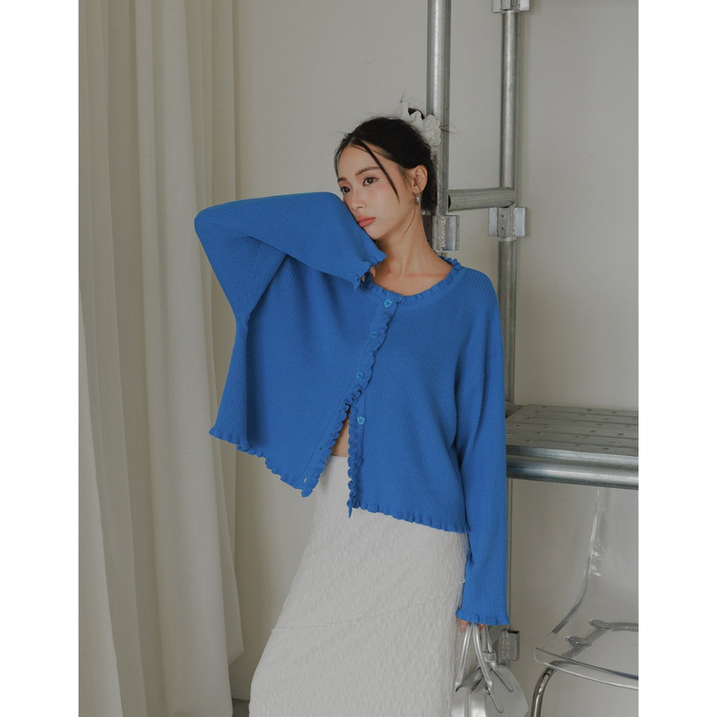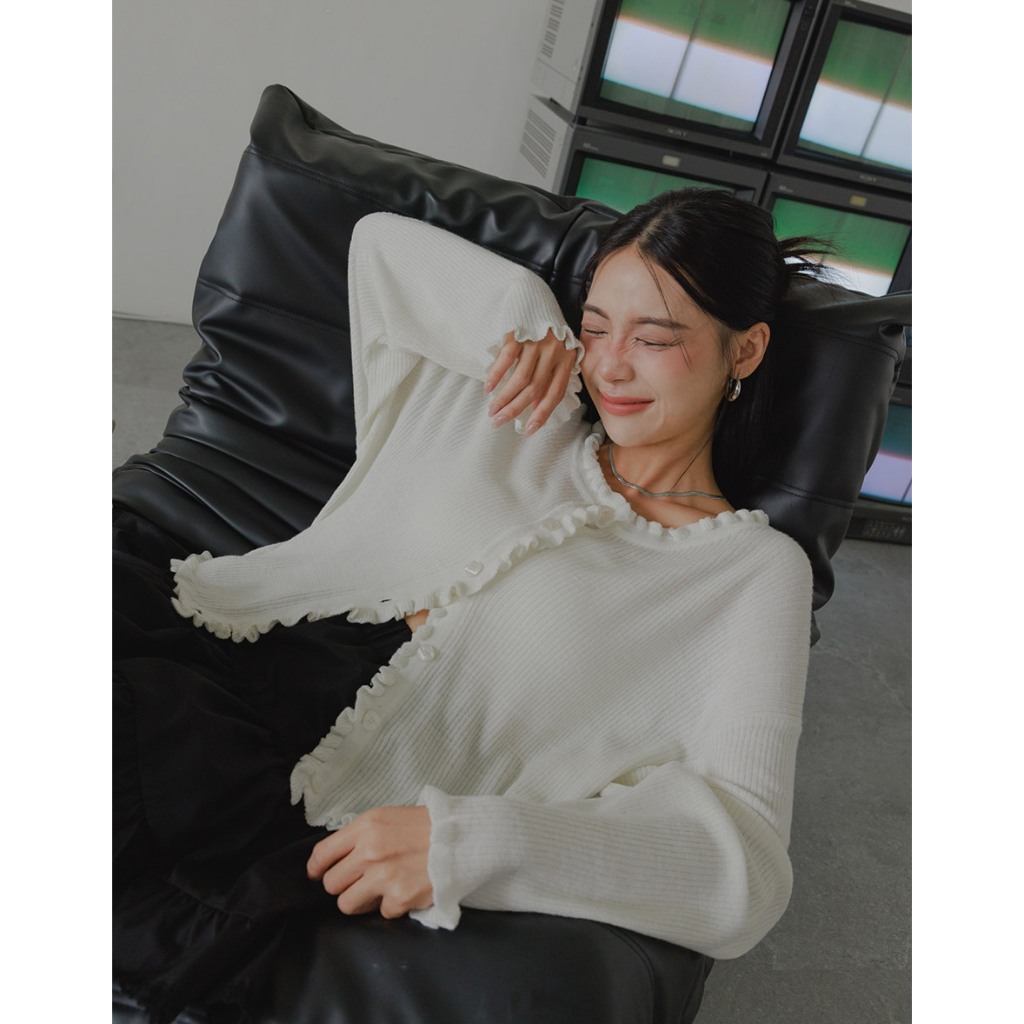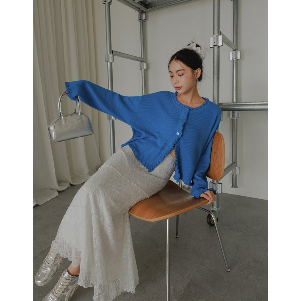 AIR SPACE LADY 俏皮花邊針織上衣(白/藍) 女裝 現貨白,F|藍,FAIR SPACE