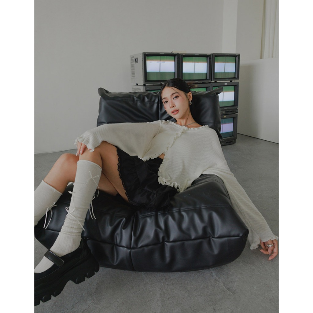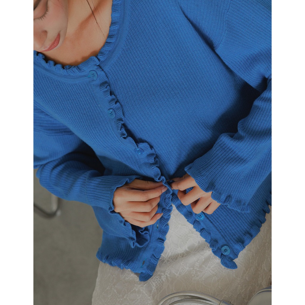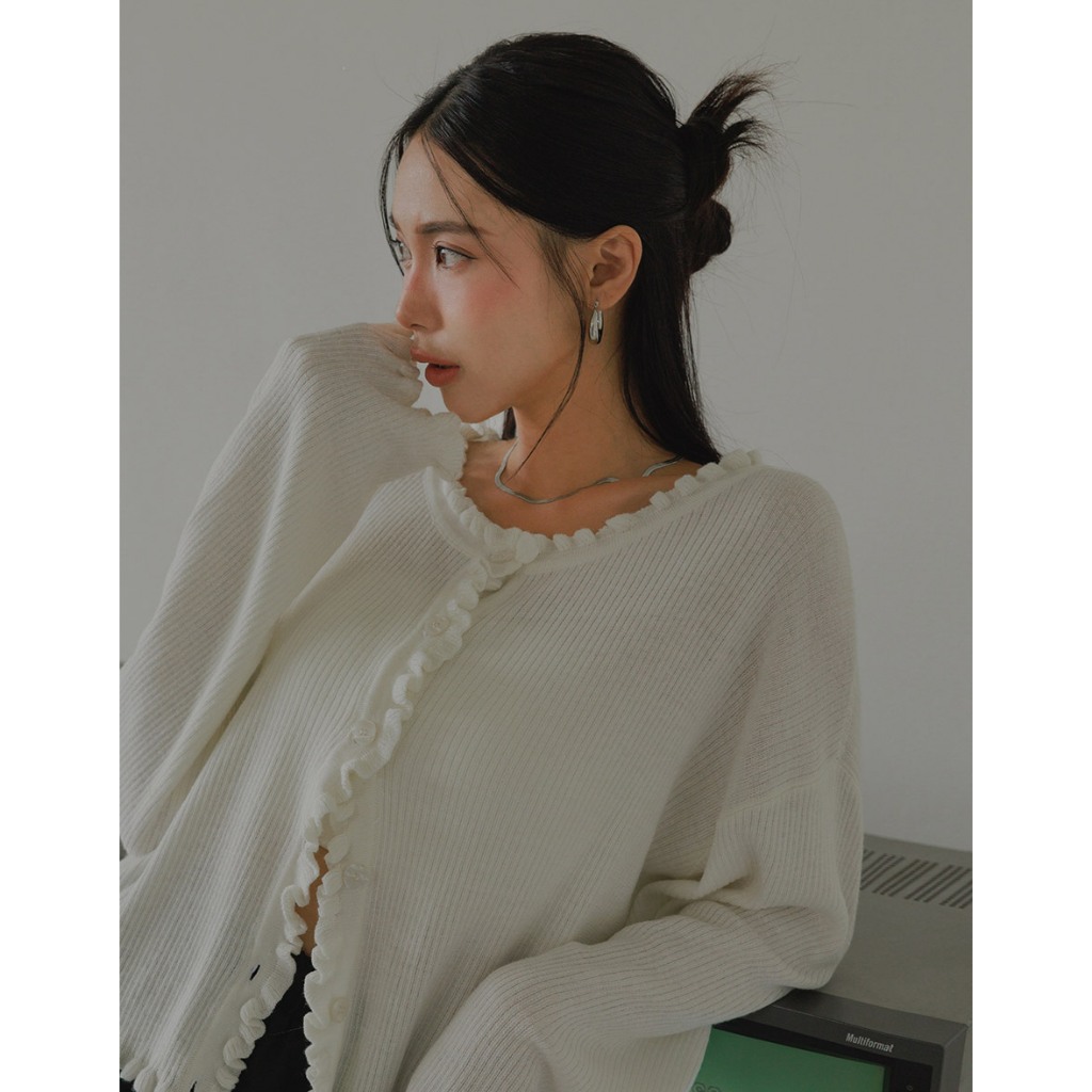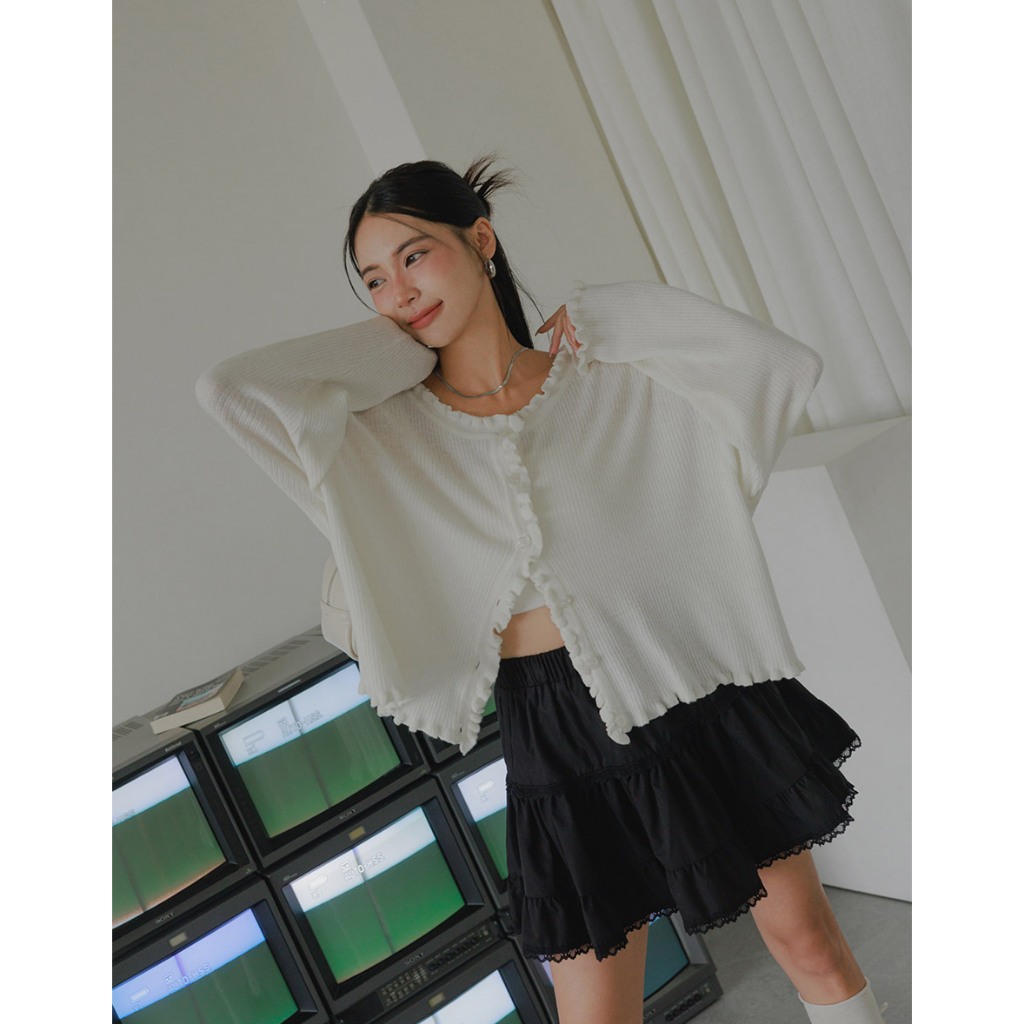 AIR SPACE LADY 俏皮花邊針織上衣(白/藍) 女裝 現貨白,F|藍,FAIR SPACE