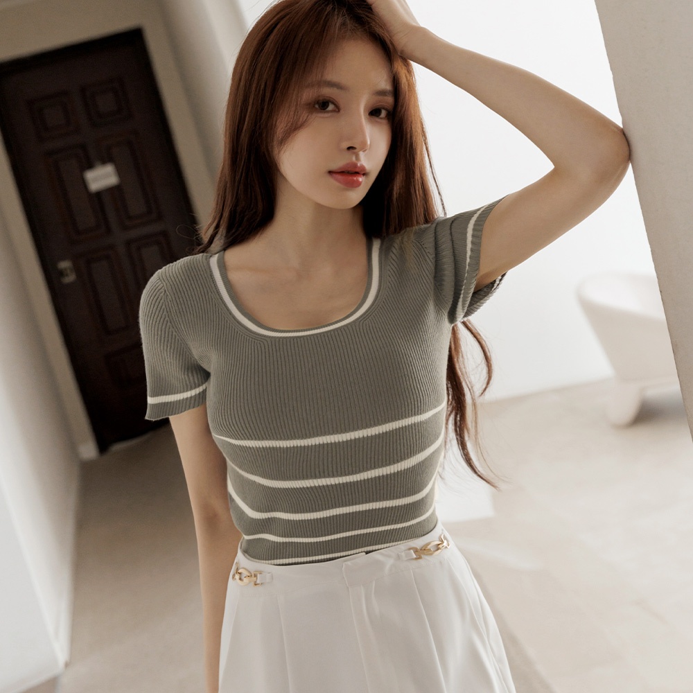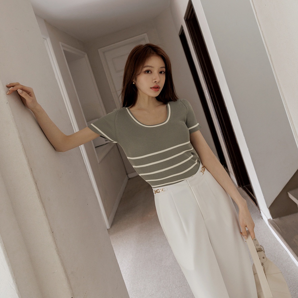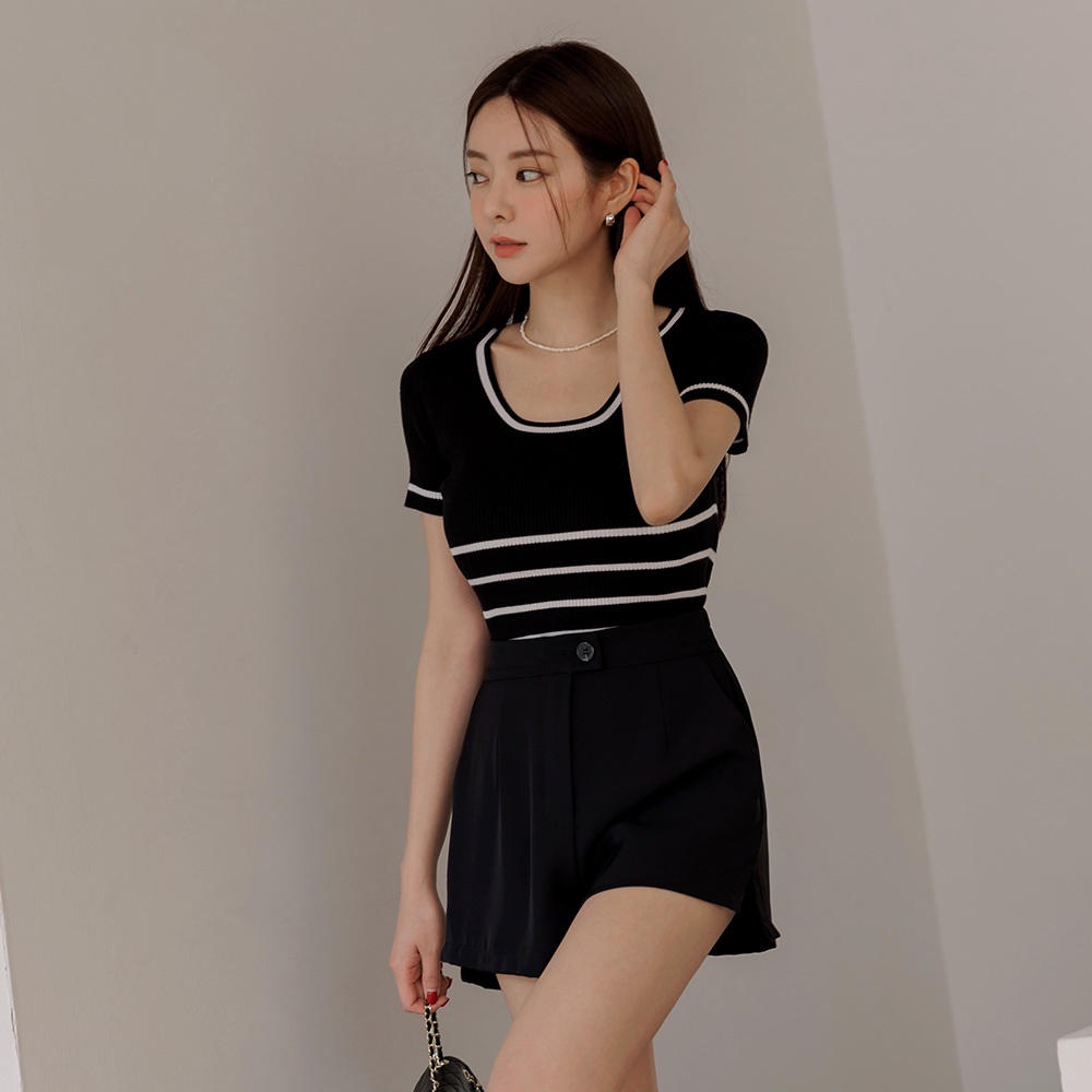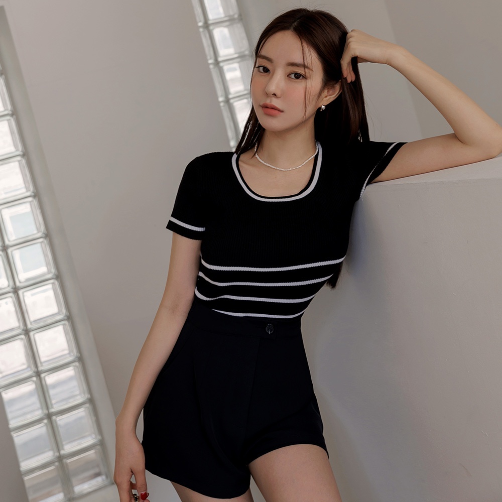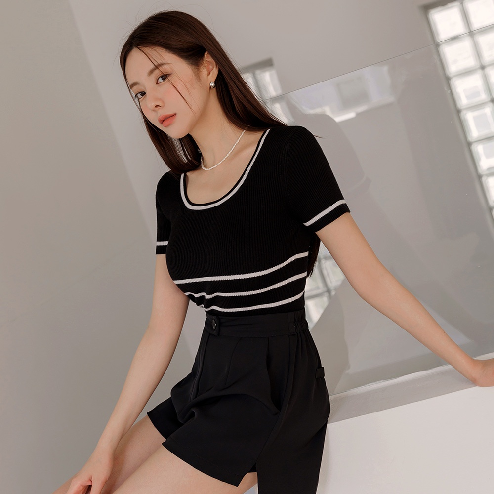 CHIC A SPACE 經典圓領滾邊針織上衣(黑/灰) 女裝 現貨黑,S|黑,M|灰,S|灰,MAIR SPACE
