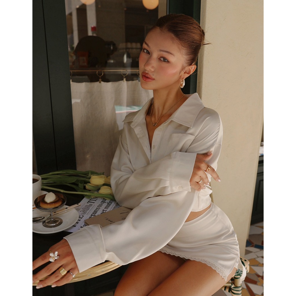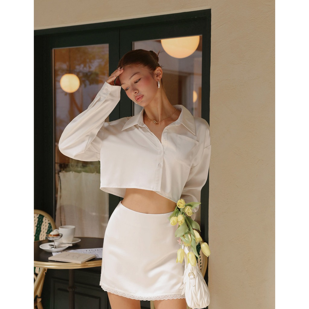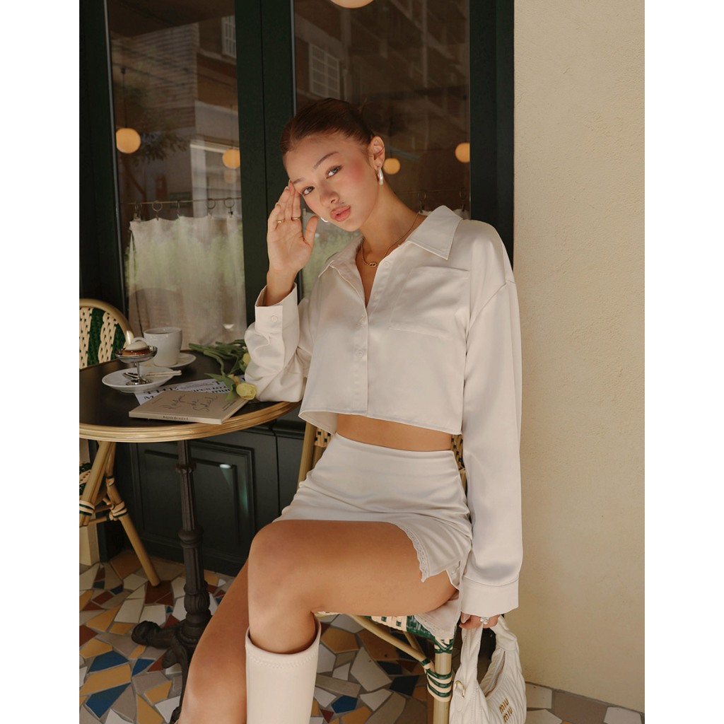 AIR SPACE 華麗緞面短版口袋襯衫 (杏/粉紅)女裝 現貨杏,S|杏,M|杏,L|粉紅,S|粉紅,M|粉紅,LShirts & BlousesAIR SPACE