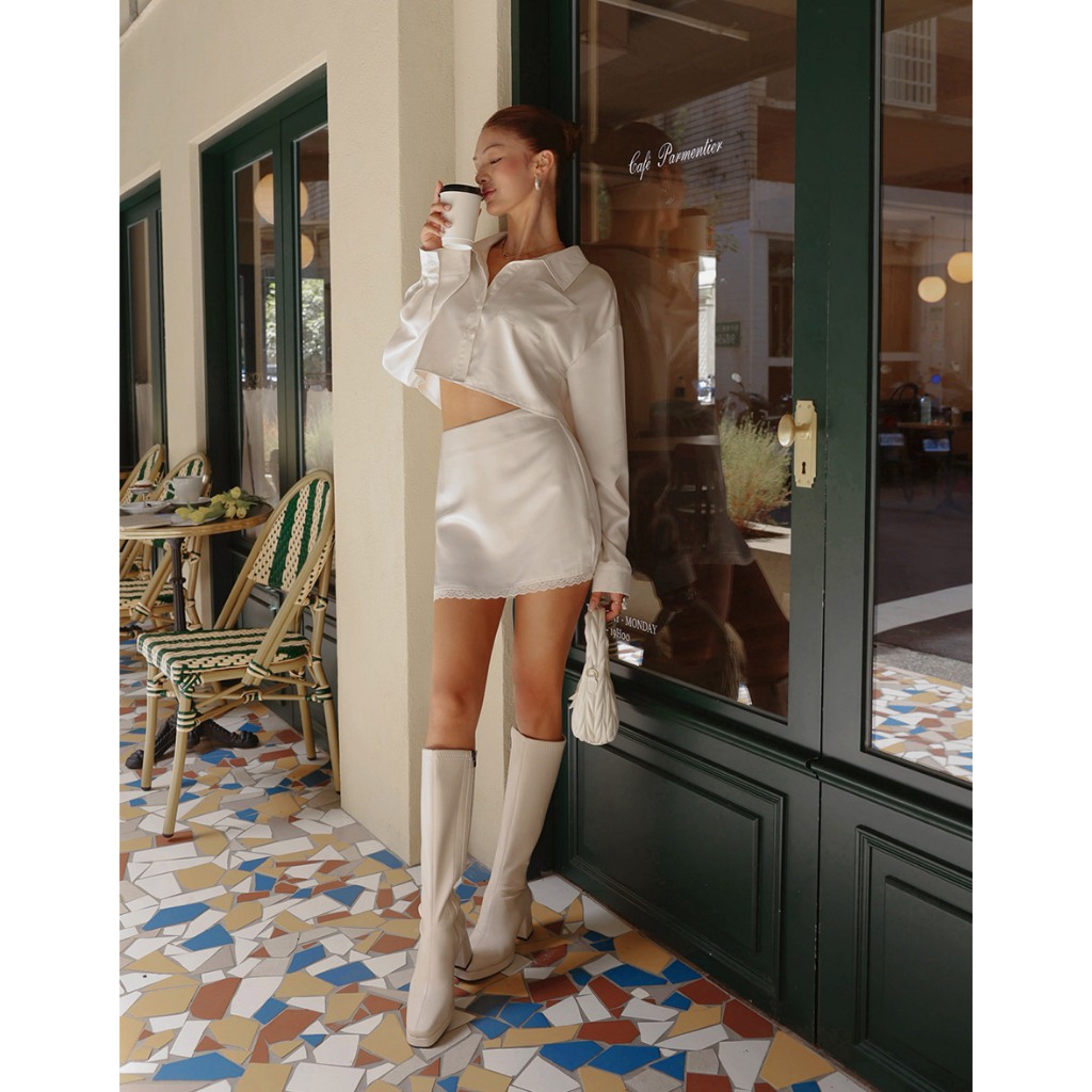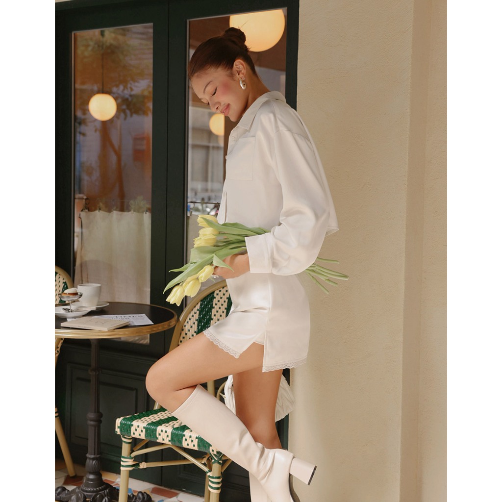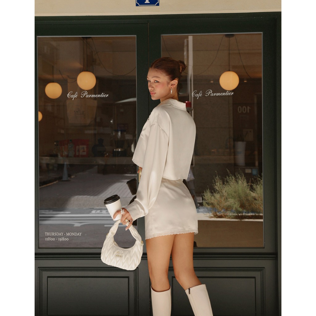 AIR SPACE 華麗緞面短版口袋襯衫 (杏/粉紅)女裝 現貨杏,S|杏,M|杏,L|粉紅,S|粉紅,M|粉紅,LShirts & BlousesAIR SPACE
