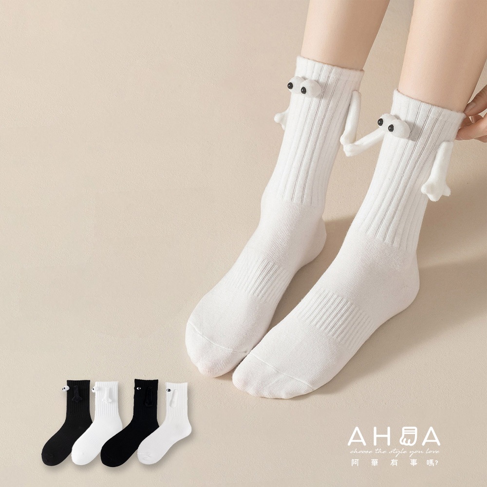 AHUA 小紅書同款 立體眼睛牽手磁吸中筒襪 【3D立體款】S0482 情侶襪 牽手襪 白襪 黑襪 阿華有事嗎黑底【立體眼睛】|白底【立體眼睛】SocksAHUA 韓國襪子品牌旗艦店