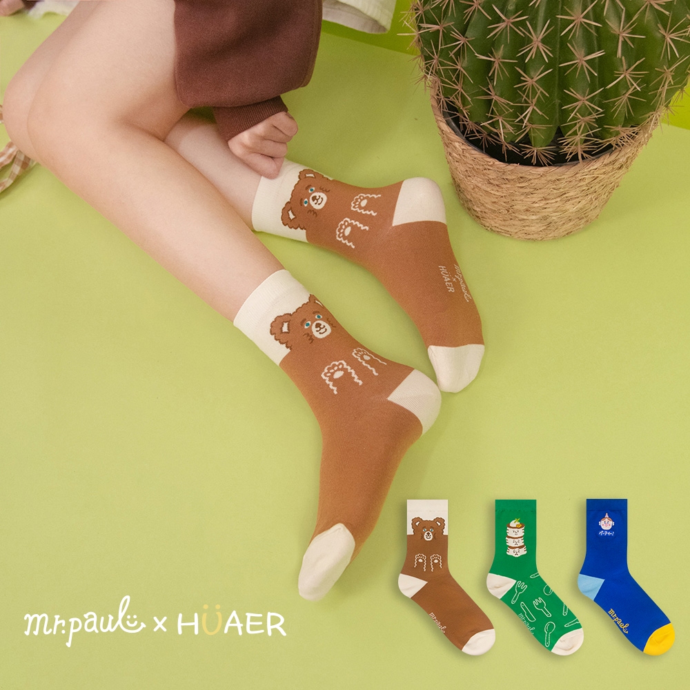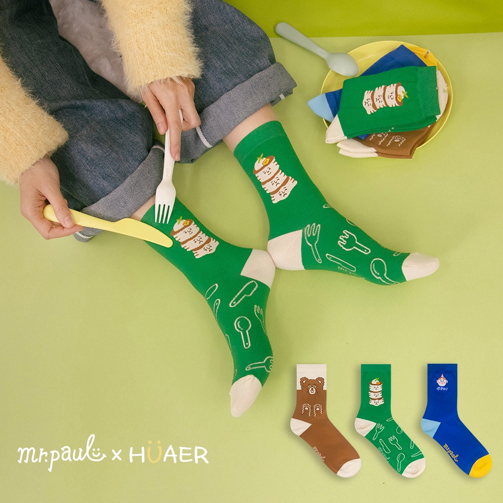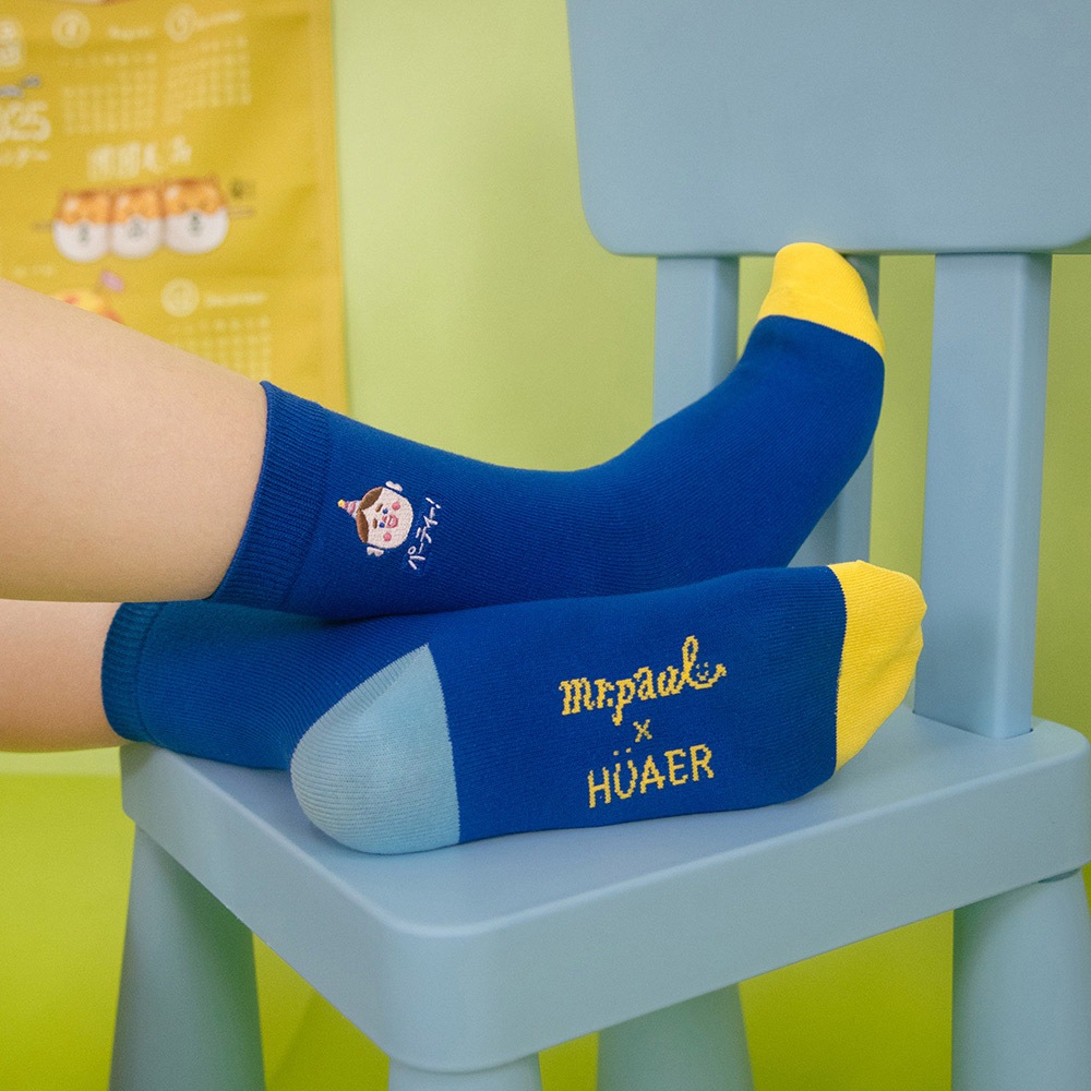 AHUA阿華有事嗎 HUAER x 保羅先生聯名中筒襪 Z0039 EXPO系列 獨家設計 台灣製造 純棉襪藍底派對波胖電繡|米黃底蓬鬆小熊|綠底舒服與不舒服蕾SocksAHUA 韓國襪子品牌旗艦店