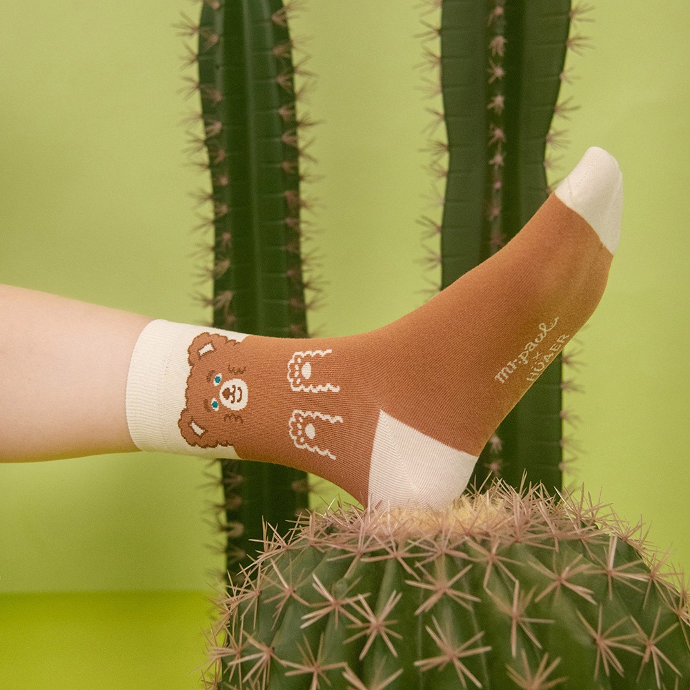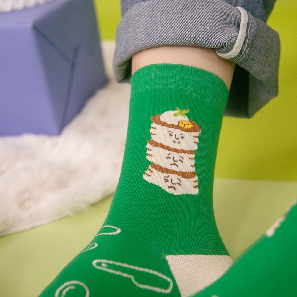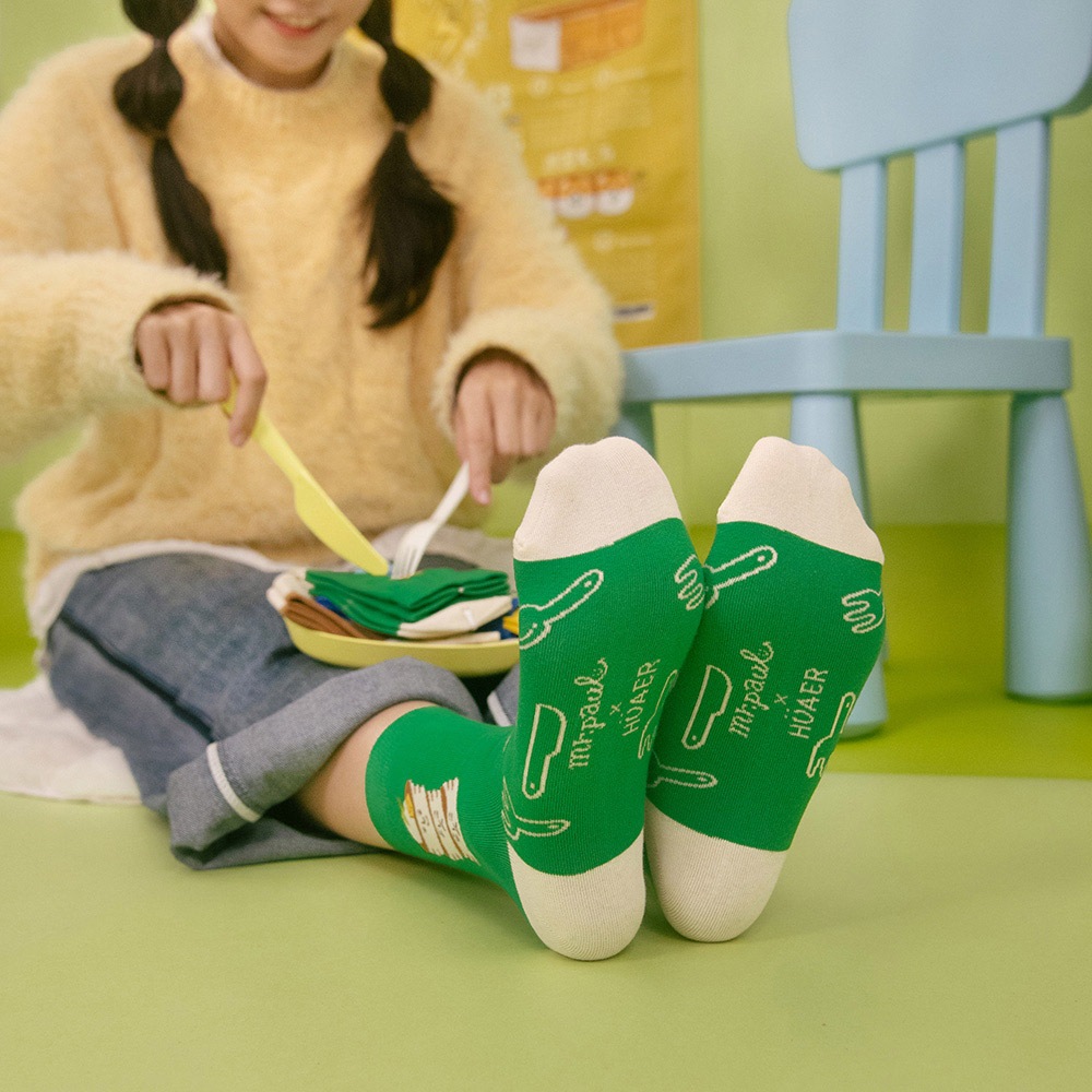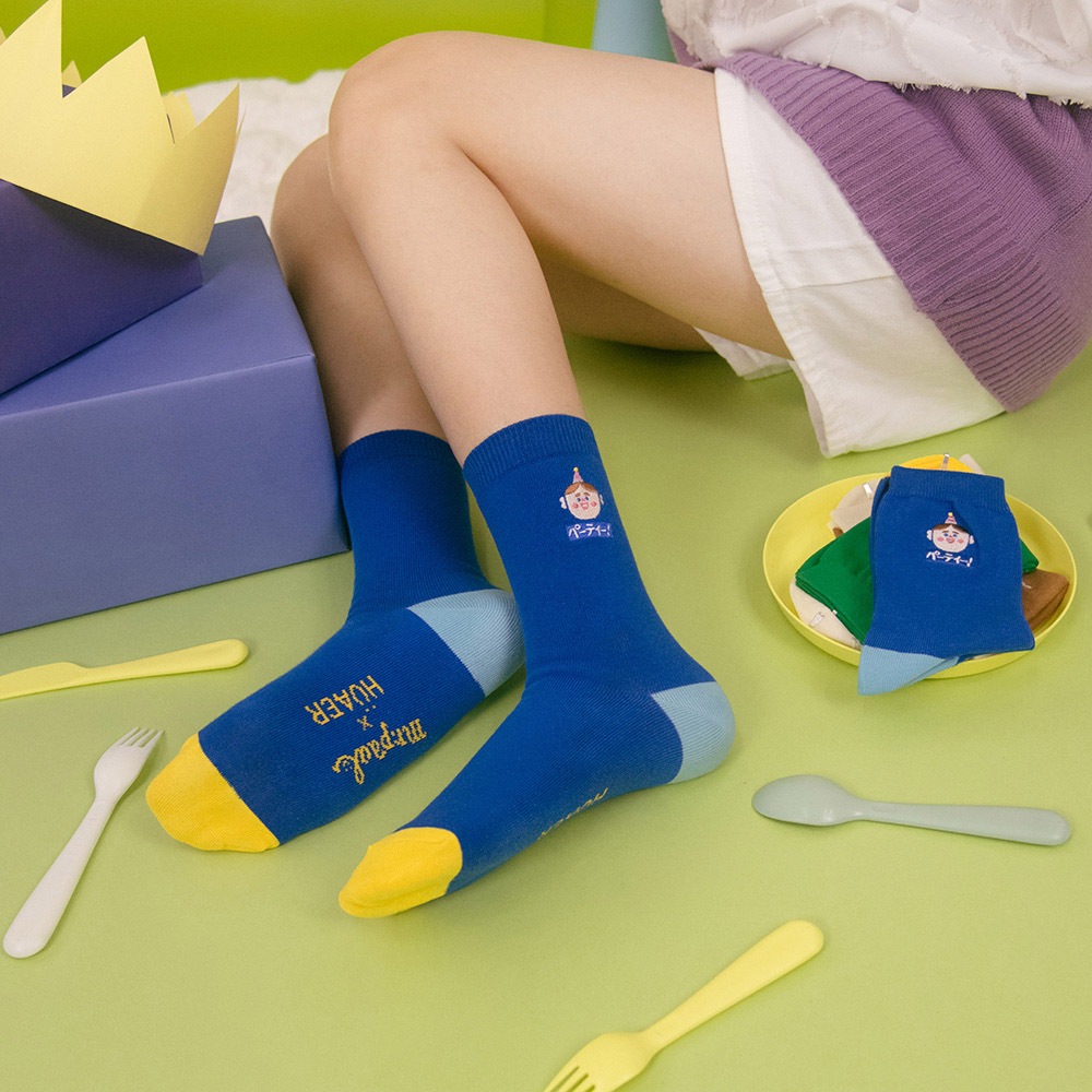 AHUA阿華有事嗎 HUAER x 保羅先生聯名中筒襪 Z0039 EXPO系列 獨家設計 台灣製造 純棉襪藍底派對波胖電繡|米黃底蓬鬆小熊|綠底舒服與不舒服蕾SocksAHUA 韓國襪子品牌旗艦店
