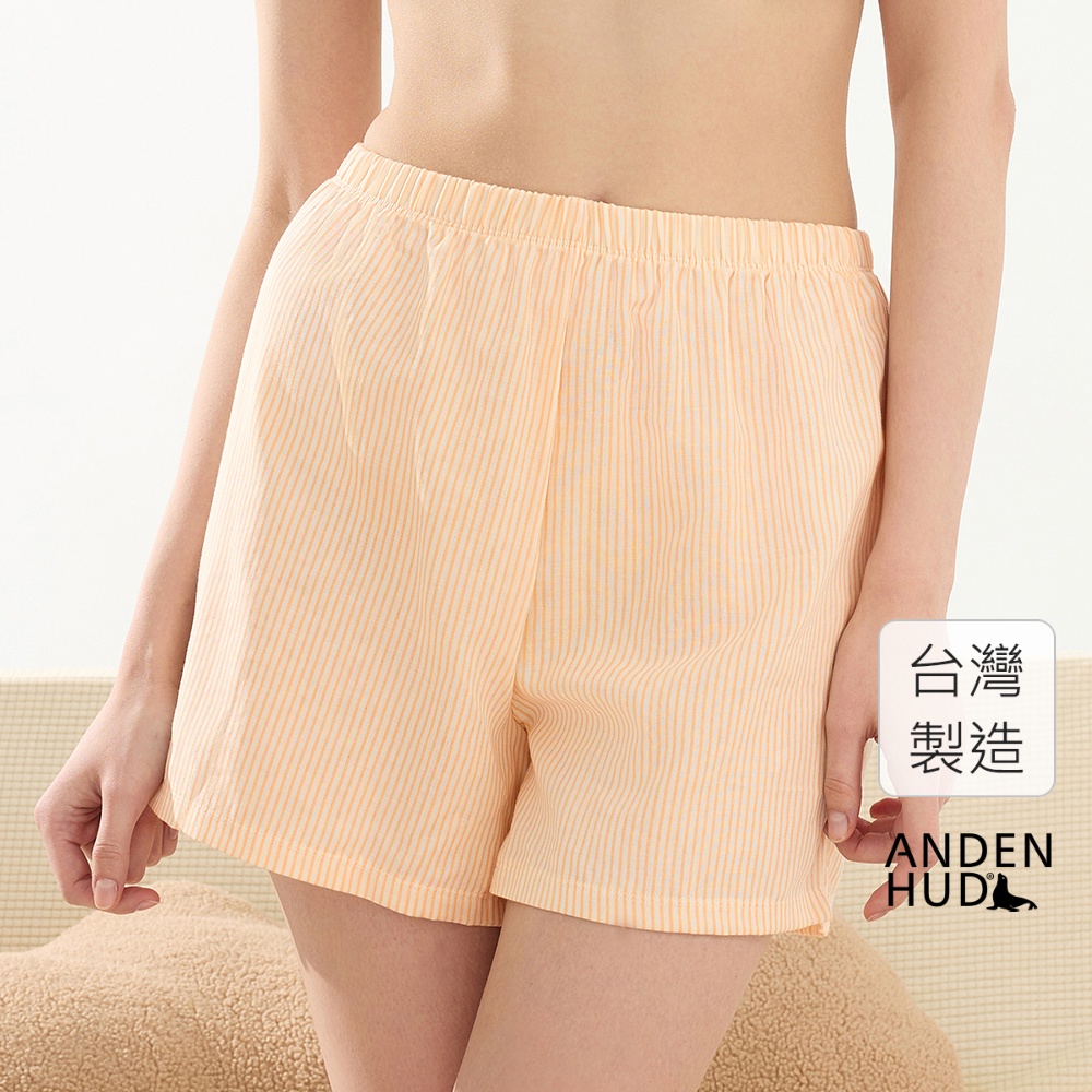 【Anden Hud】下身_陽光微暖.純棉雙層紗腰緊帶居家短褲(和風米-甜橙橘條紋) 純棉台灣製S|M|L|XLPajamasAnden Hud 台灣製內著 官方旗艦店