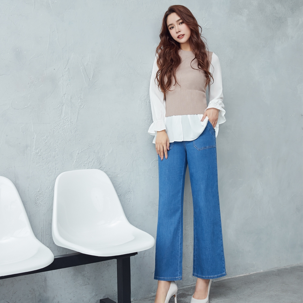 BLUE WAY ET BOiTE 箱子 – 女款 泡芙高腰中線丹寧錐形褲S|M|LBLUE WAY官方旗艦店