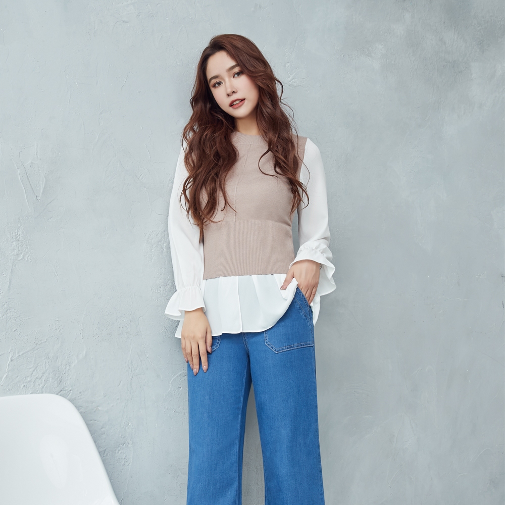 VICTORIA假兩件雪紡T恤 V25285-71奶茶色,S|奶茶色,M|奶茶色,LOthersBIG TRAIN 官方旗艦店