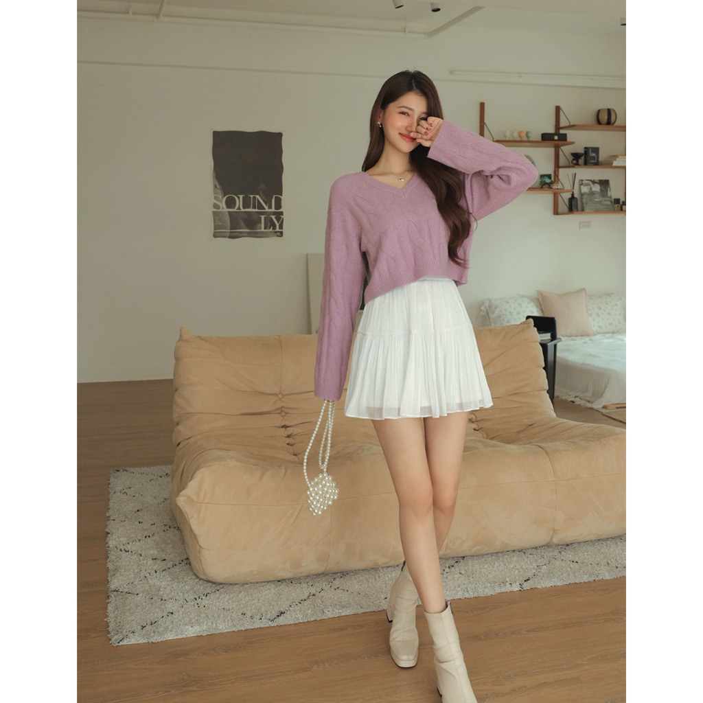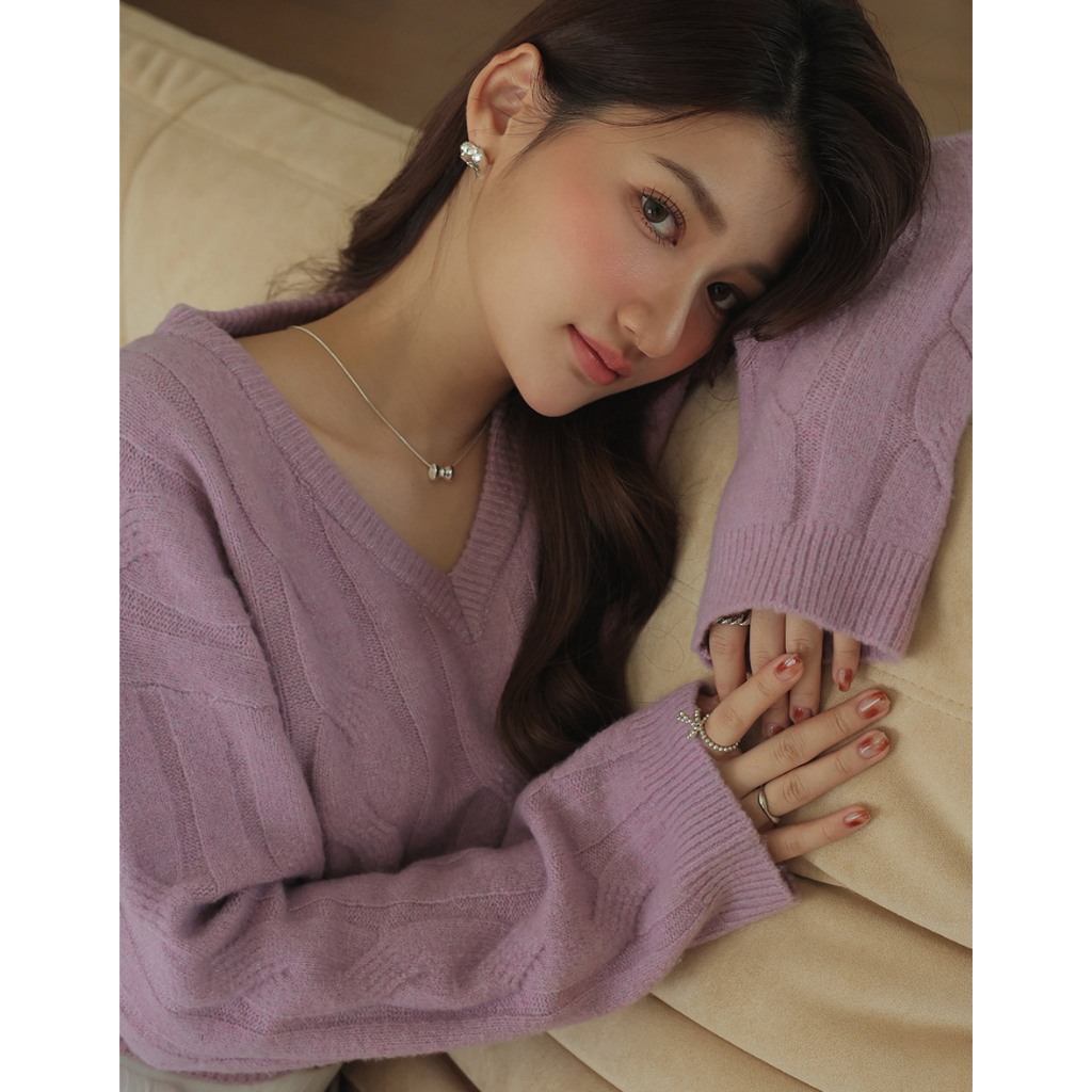AIR SPACE 經典V領麻花毛衣(紫/淺灰) 女裝 現貨紫,S|紫,M|淺灰,S|淺灰,MAIR SPACE