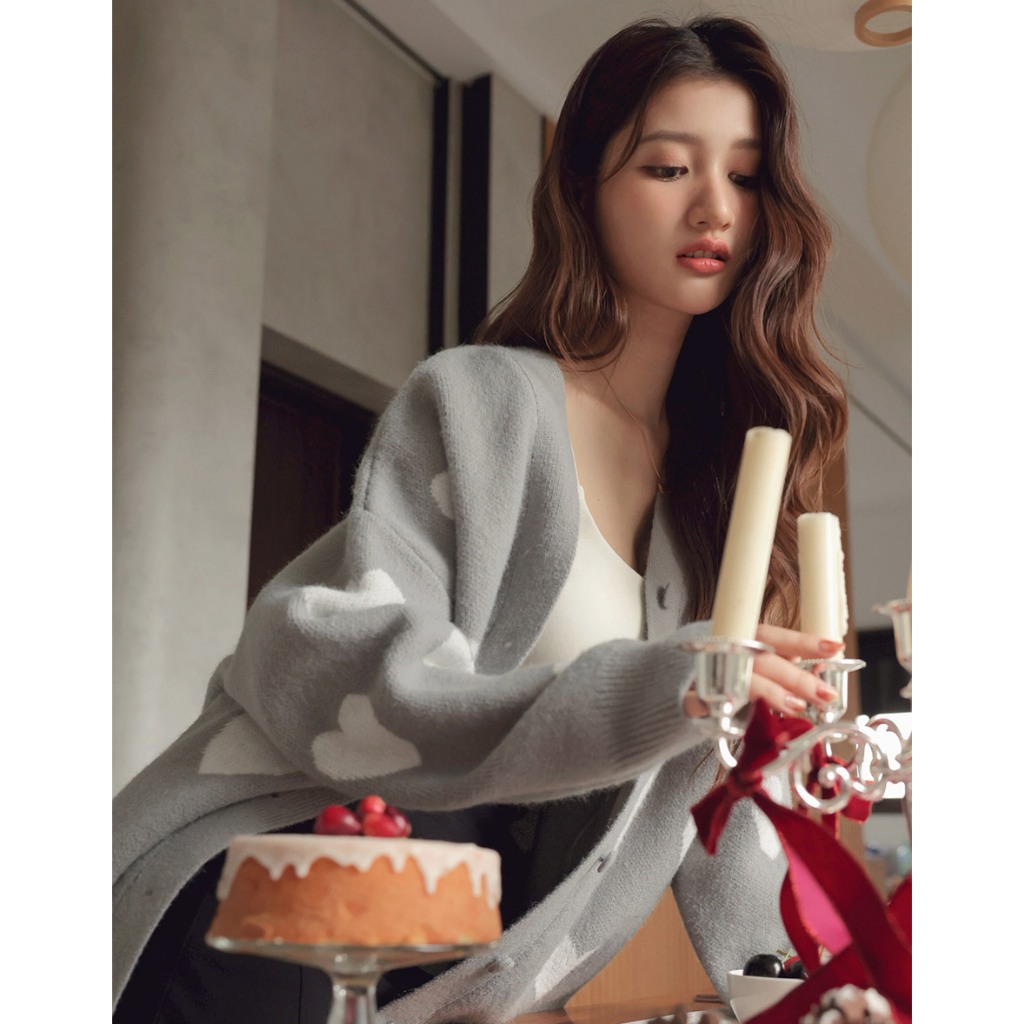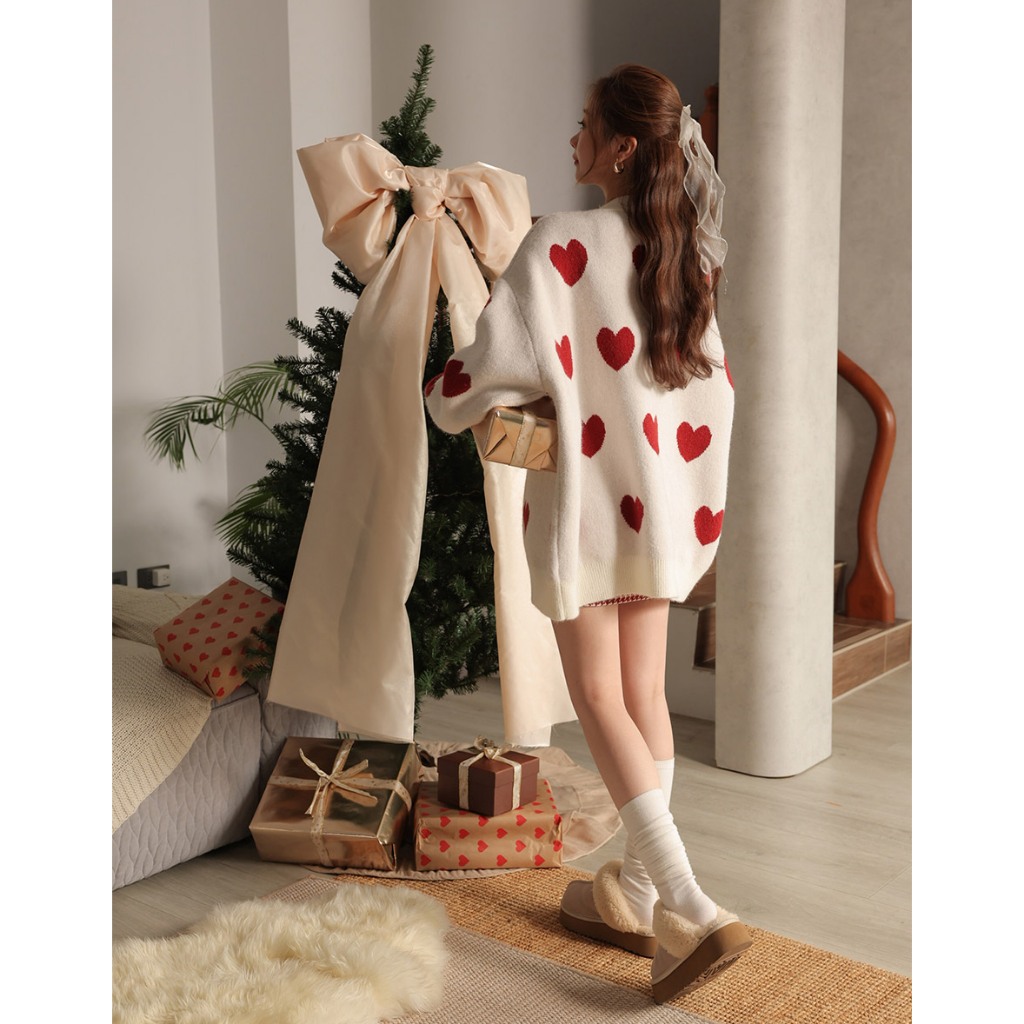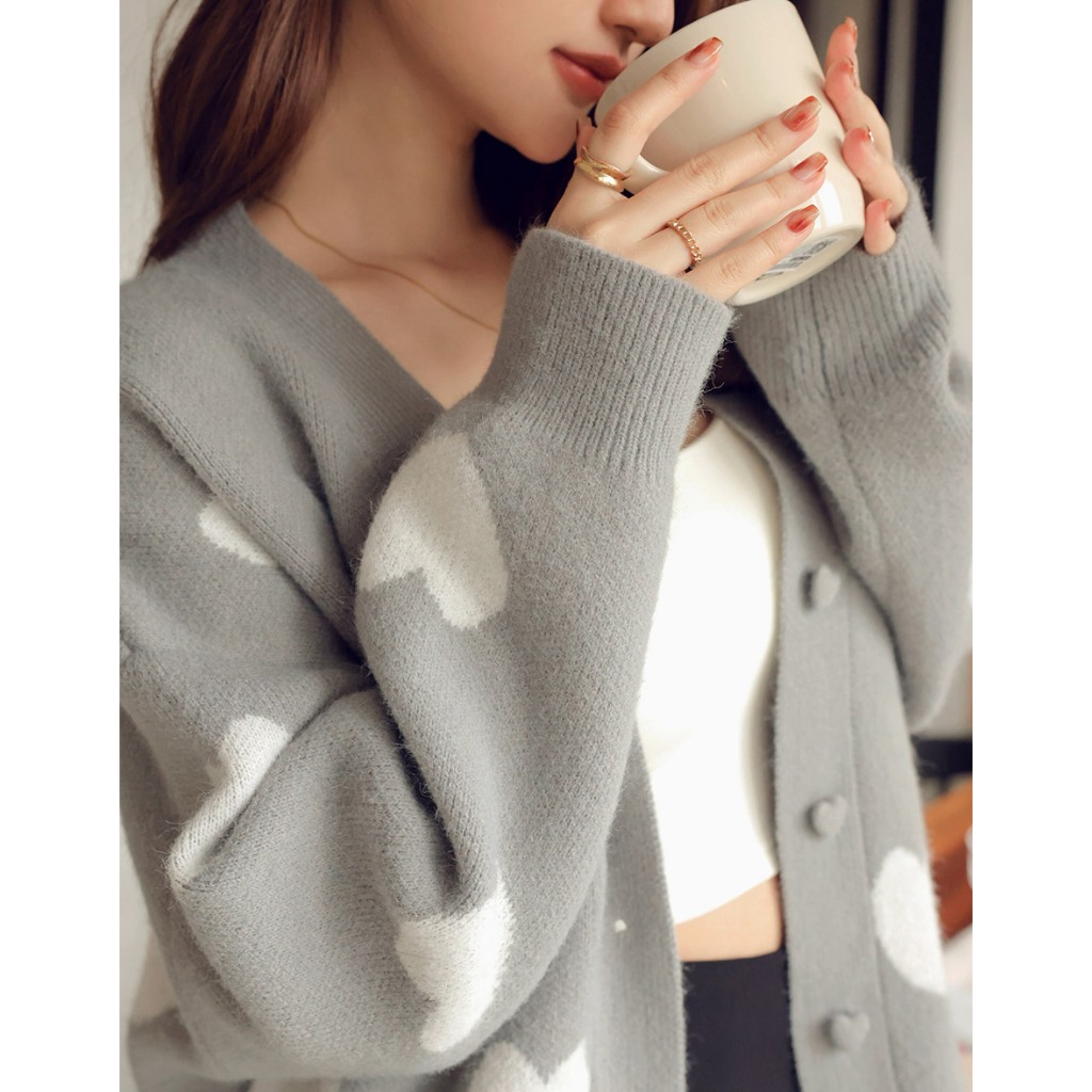 AIR SPACE 【HEYMAN聯名】愛心開襟針織外套(白/灰) 女裝 現貨白,F|灰,FAIR SPACE