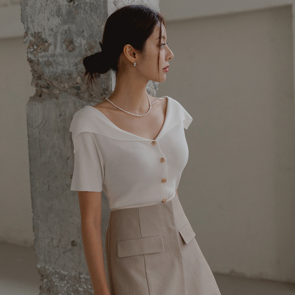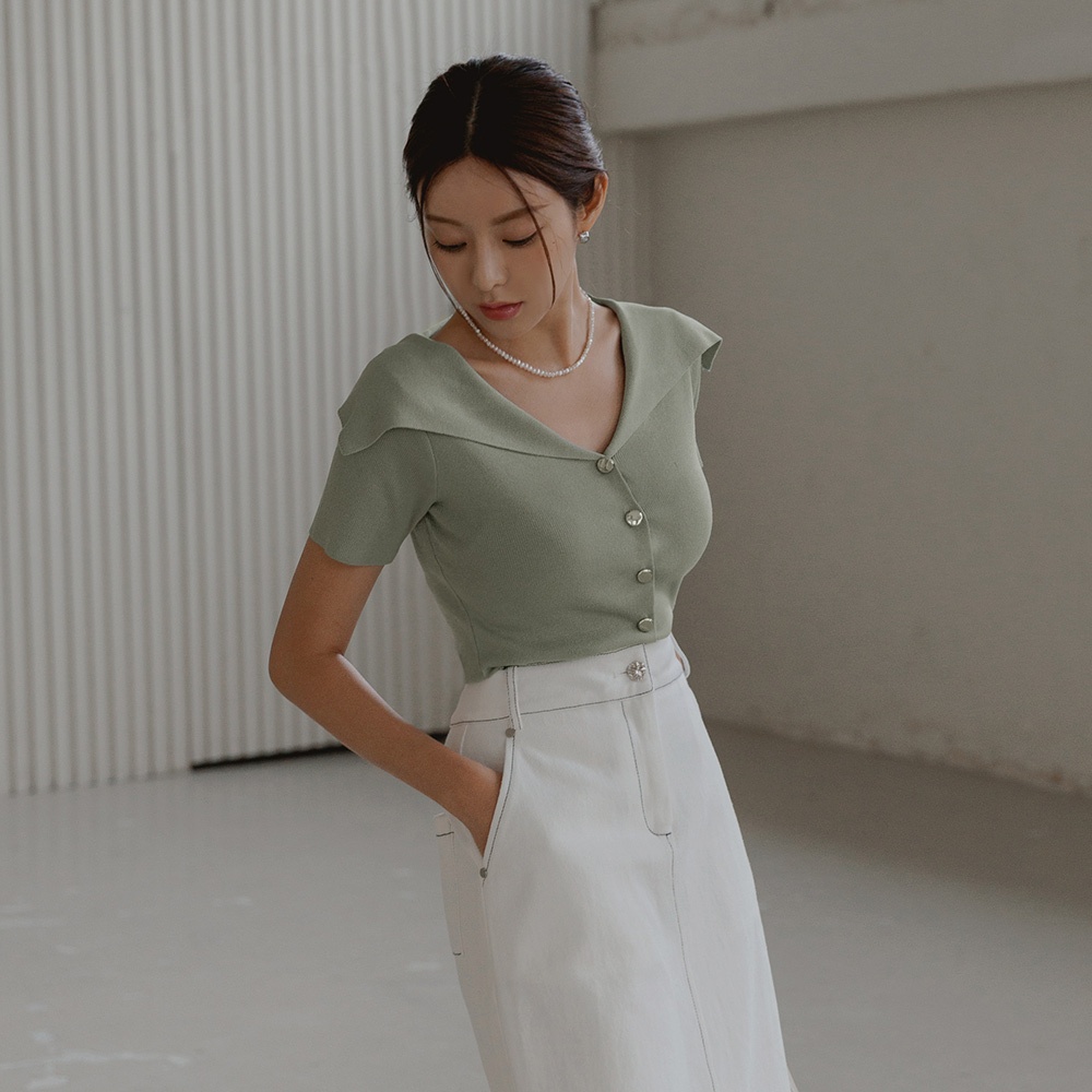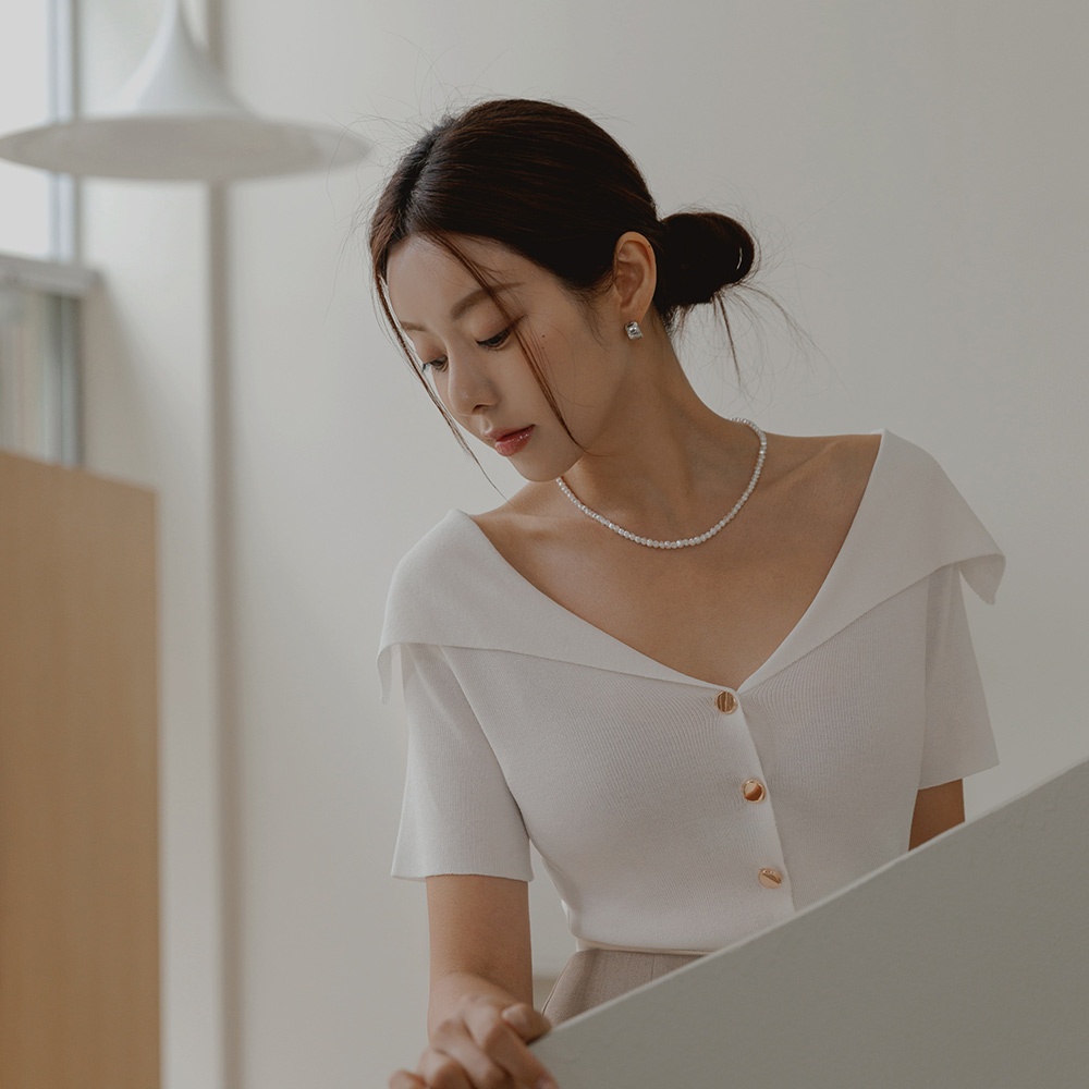 CHIC A SPACE 優雅後領片針織上衣(白/灰綠) 女裝 現貨白,S|白,M|灰綠,S|灰綠,MAIR SPACE