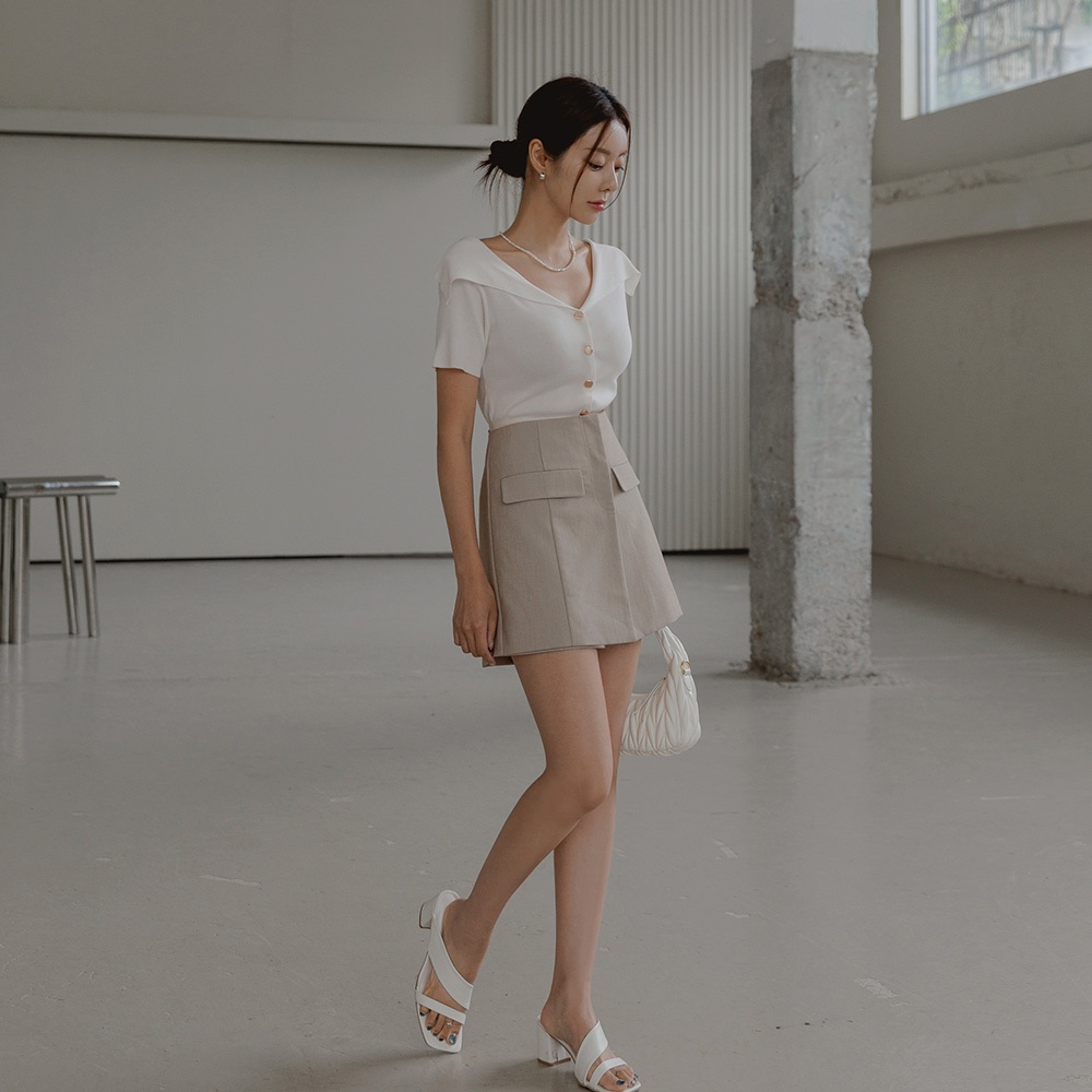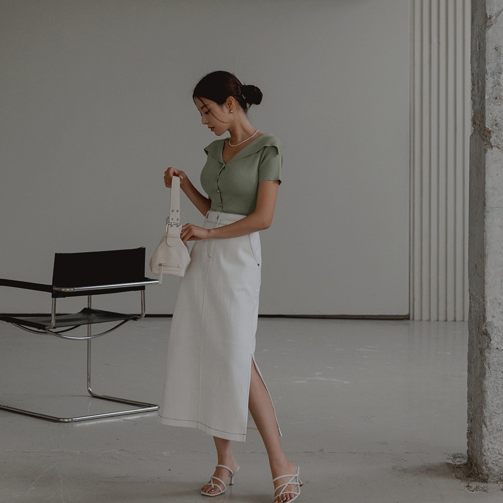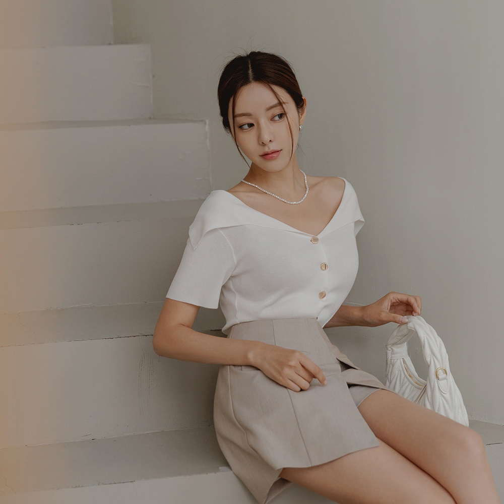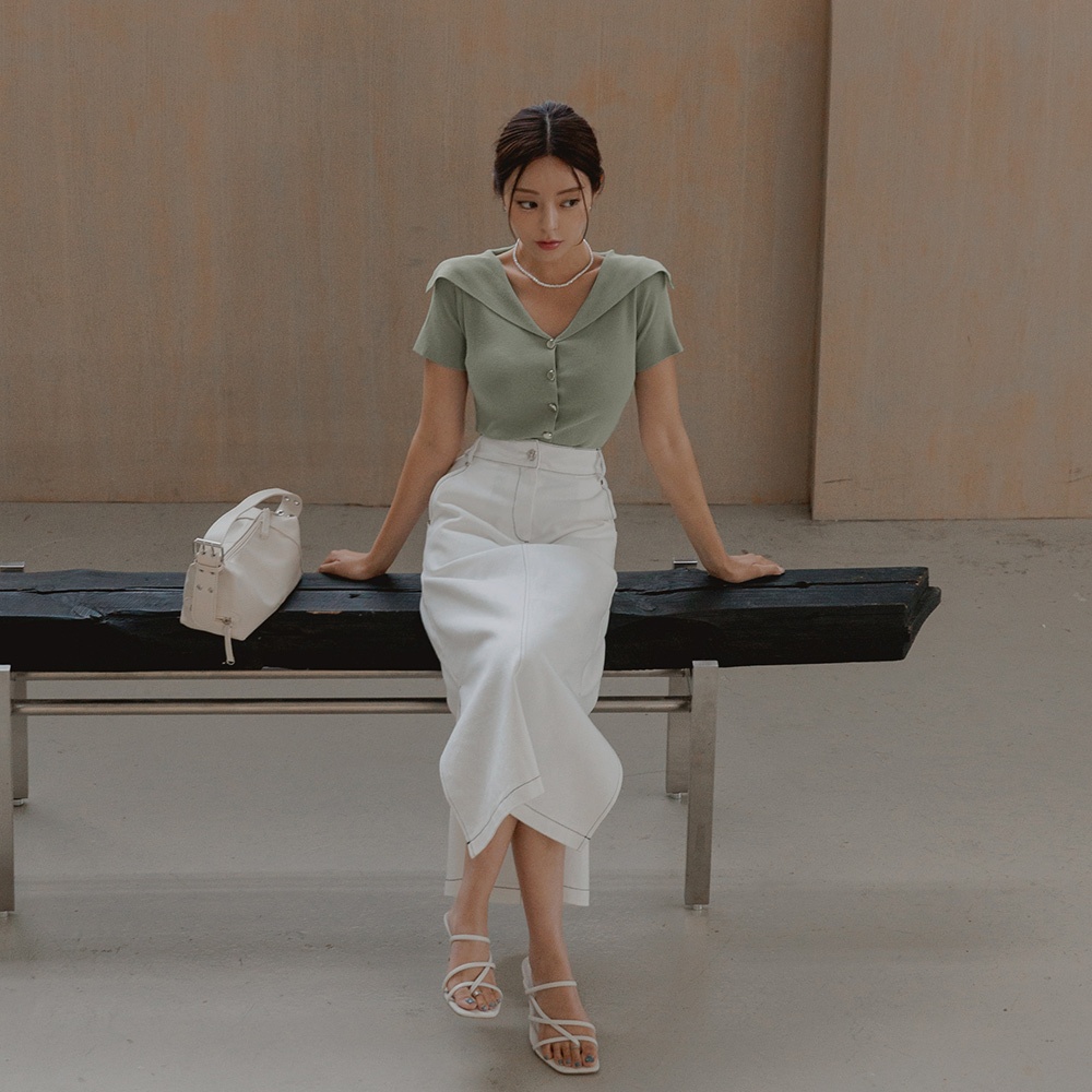 CHIC A SPACE 優雅後領片針織上衣(白/灰綠) 女裝 現貨白,S|白,M|灰綠,S|灰綠,MAIR SPACE