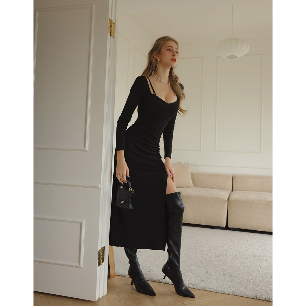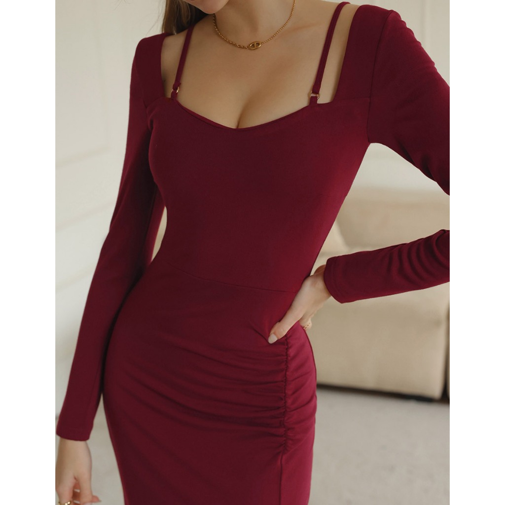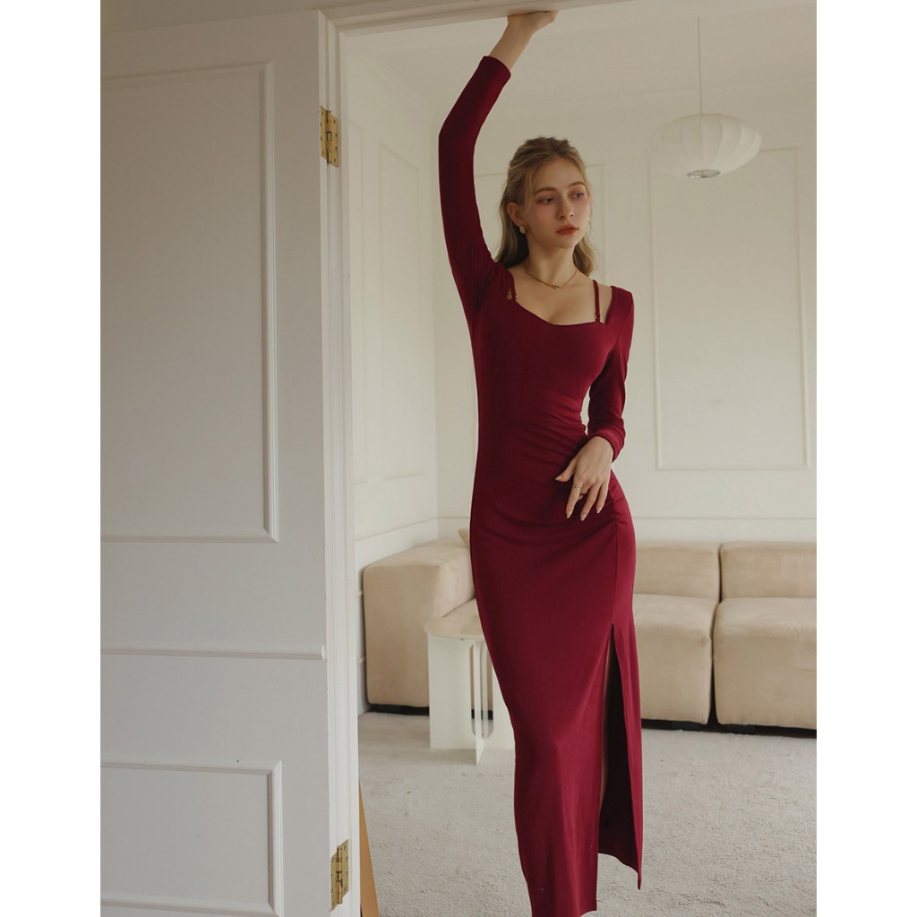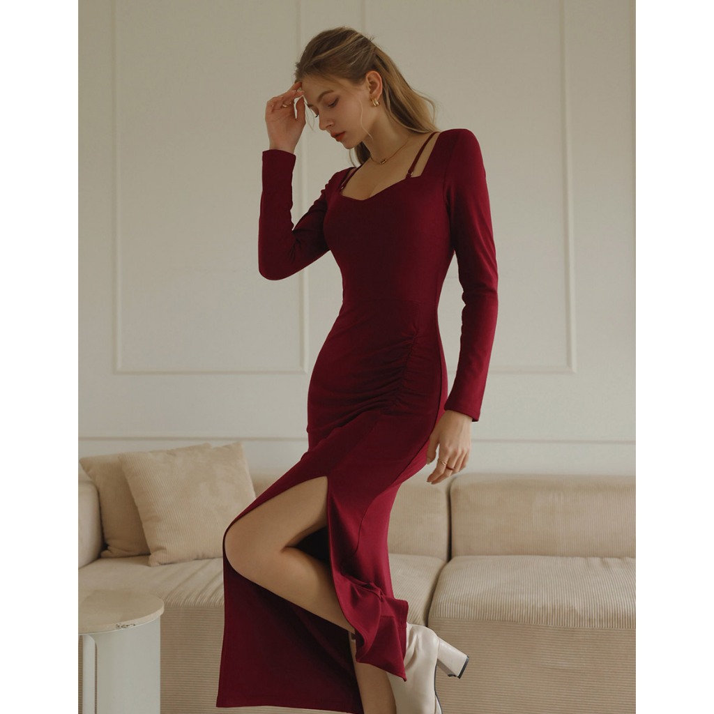 AIR SPACE PLUS 鏤空開衩包臀長洋裝(附胸墊)(黑/酒紅) 女裝 現貨 大尺碼 中大尺碼黑,XL|黑,2XL|黑,3XL|酒紅,XL|酒紅,2XL|酒紅,3XLAIR SPACE