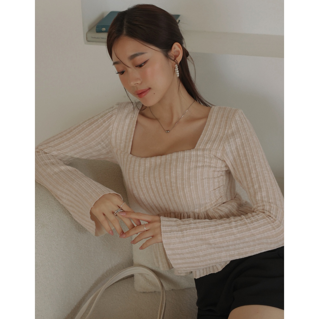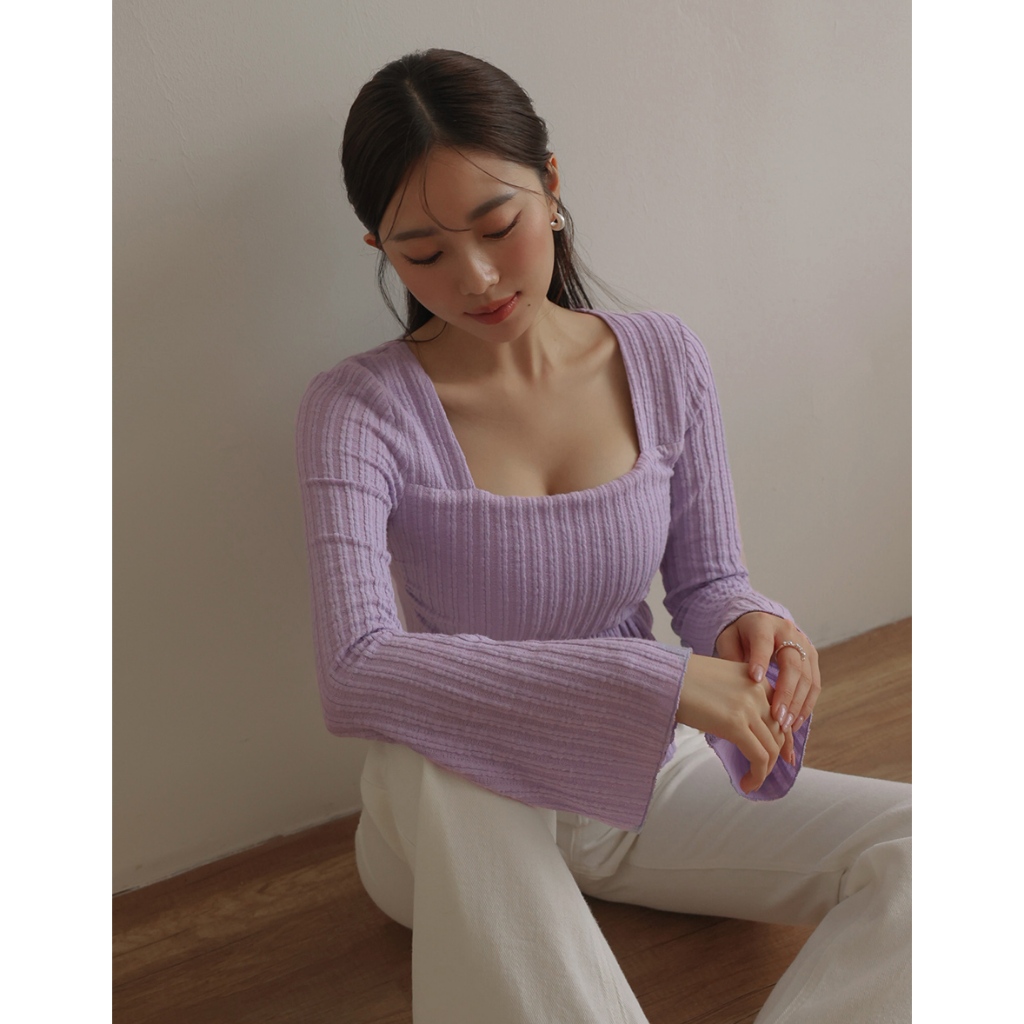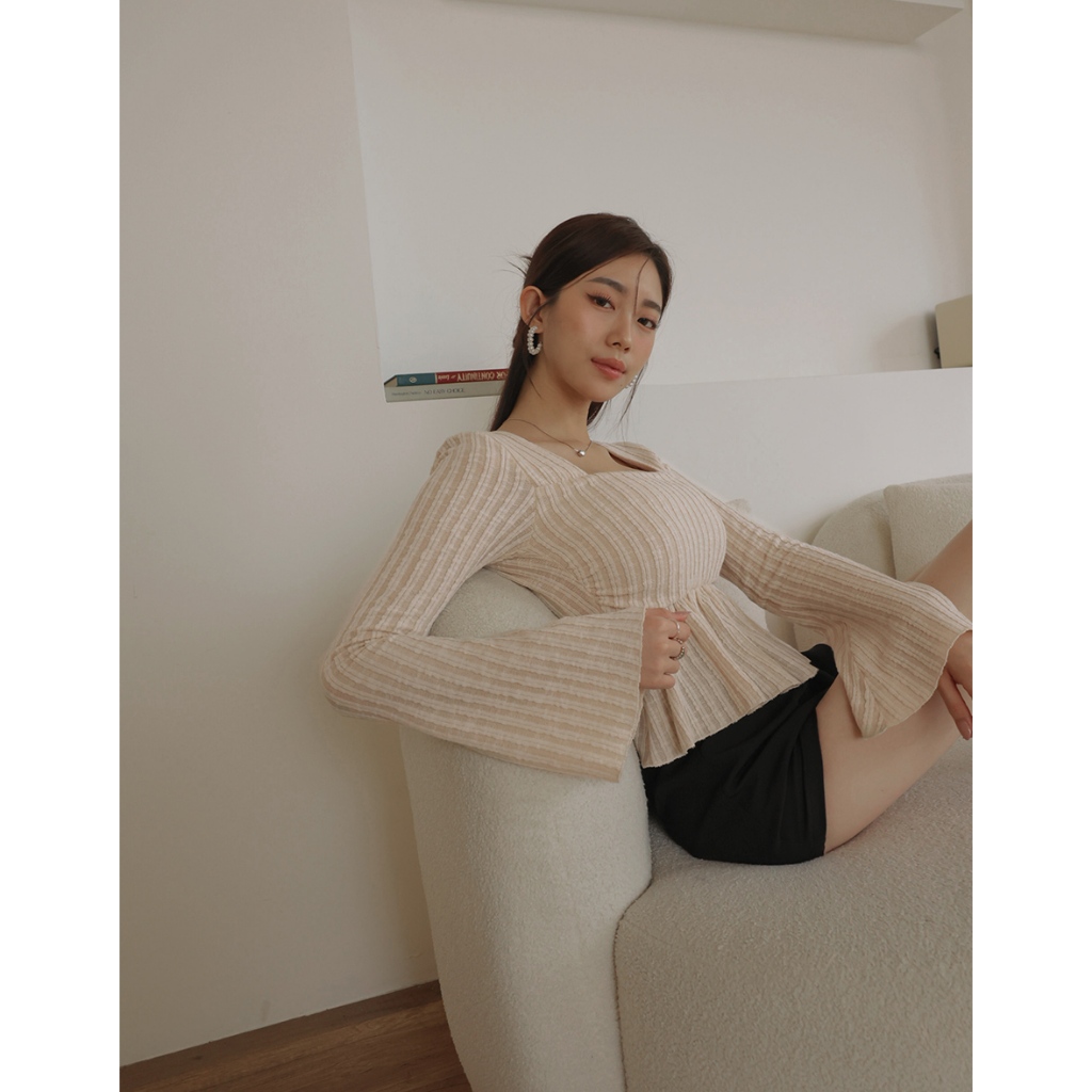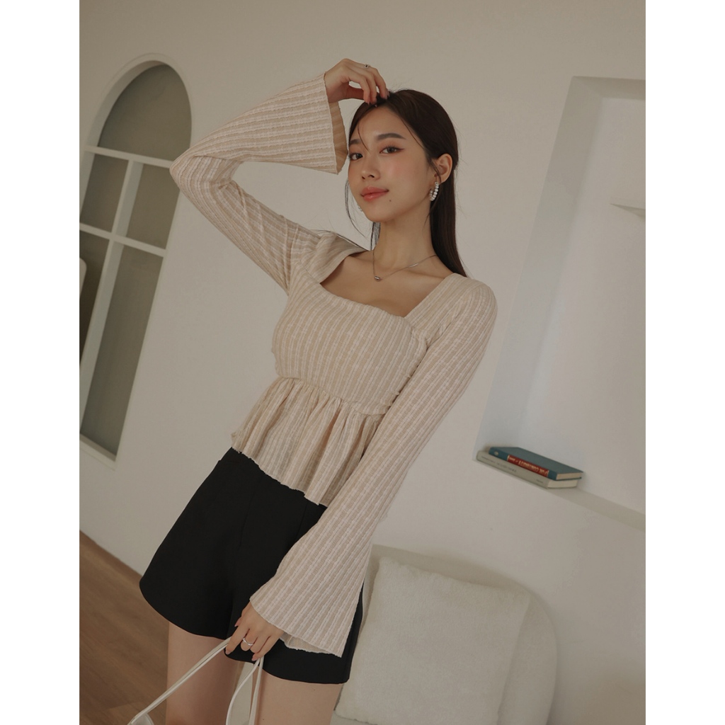 AIR SPACE LADY 方領荷葉傘擺針織上衣(杏/紫) 女裝 現貨杏,S|杏,M|杏,L|紫,S|紫,M|紫,LAIR SPACE