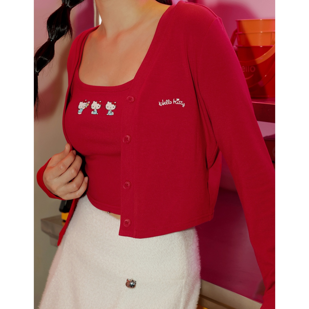 AIR SPACE LADY 【Hello Kitty聯名】內刷毛薄暖長袖套裝(杏/紅) 女裝 現貨杏,S|杏,M|杏,L|紅,S|紅,M|紅,LIndividual SetsAIR SPACE