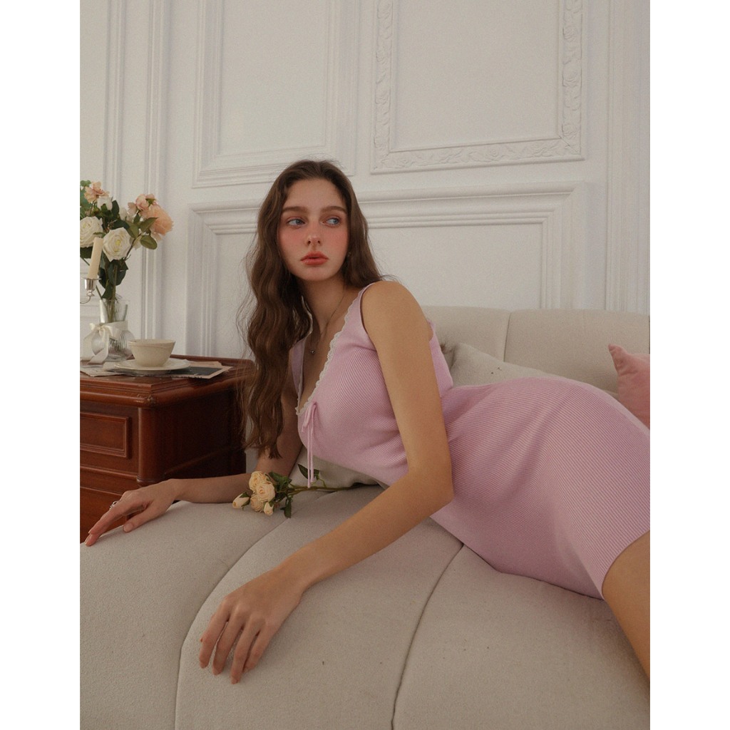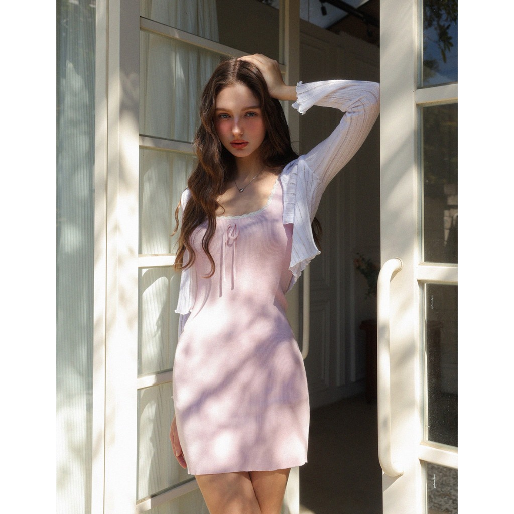 AIR SPACE 蕾絲滾邊針織短洋裝(黑/粉紅) 女裝 現貨黑,S|黑,M|粉紅,S|粉紅,MAIR SPACE