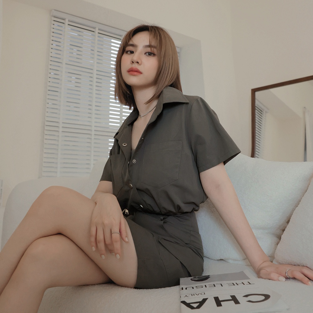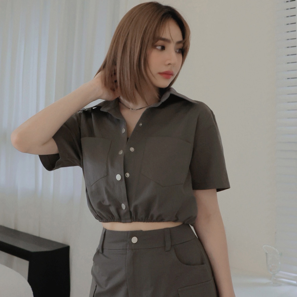 AIR SPACE LADY 輕磅牛仔壓釦上衣(白/深灰) 女裝 現貨白,S|白,M|白,L|深灰,S|深灰,M|深灰,LT-shirtsAIR SPACE